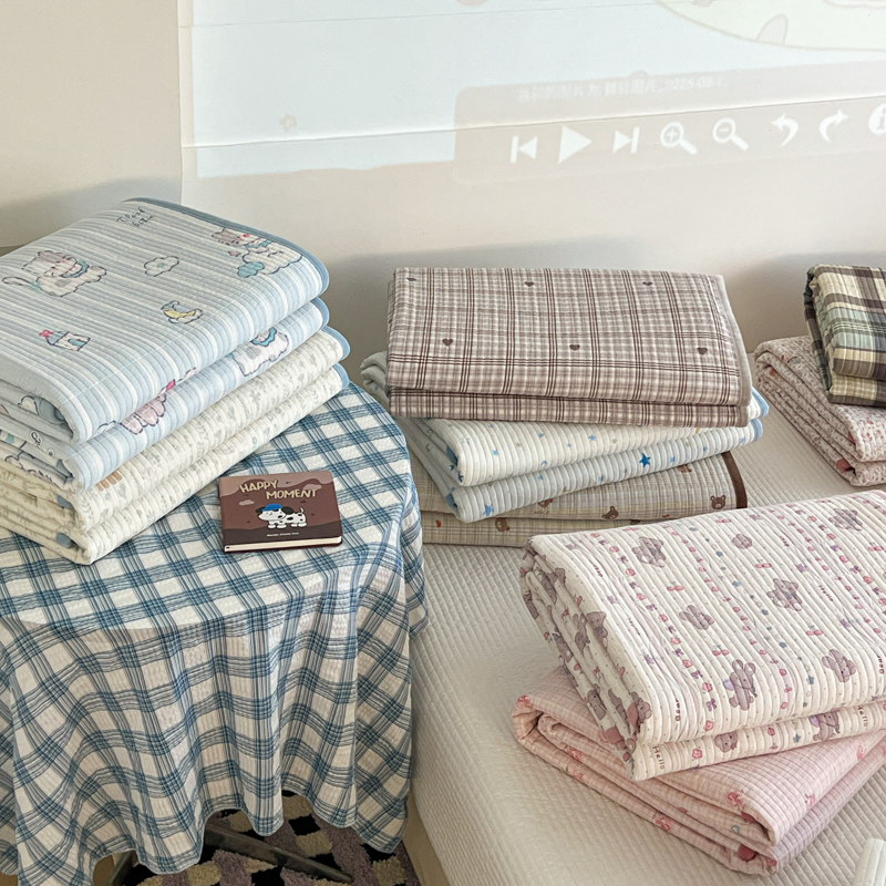 茉夕家纺 2025新款跑量款暖绒纯棉印花水洗床盖 床盖单件 可可蓝格