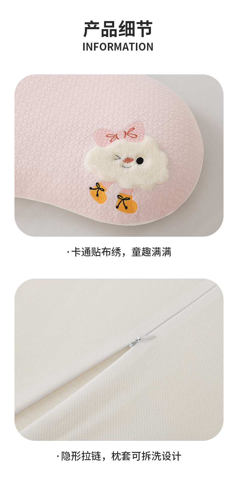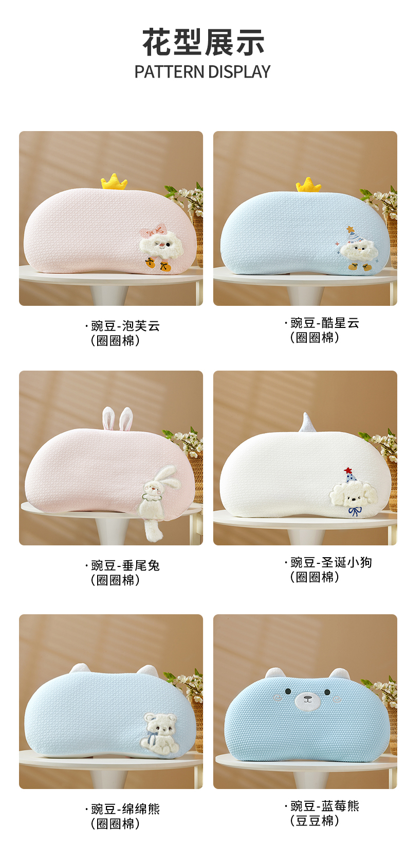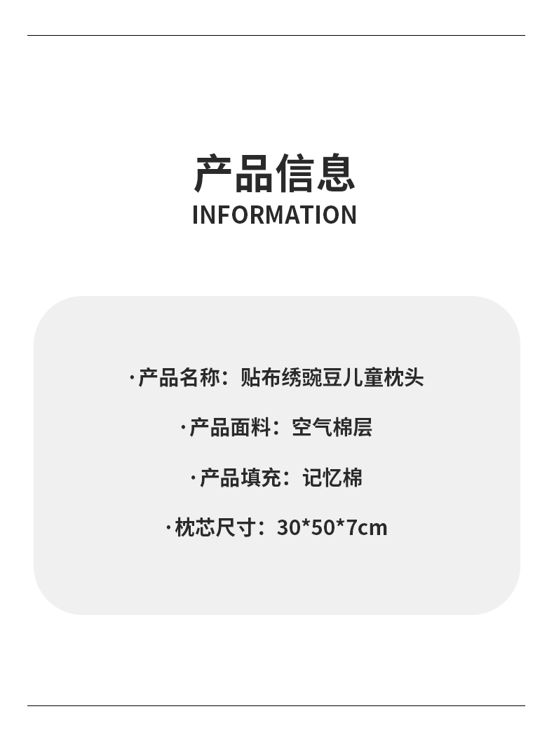 商品名称:小猫派 2025新款贴布绣豌豆儿童枕枕头枕芯 豌豆-绵绵熊