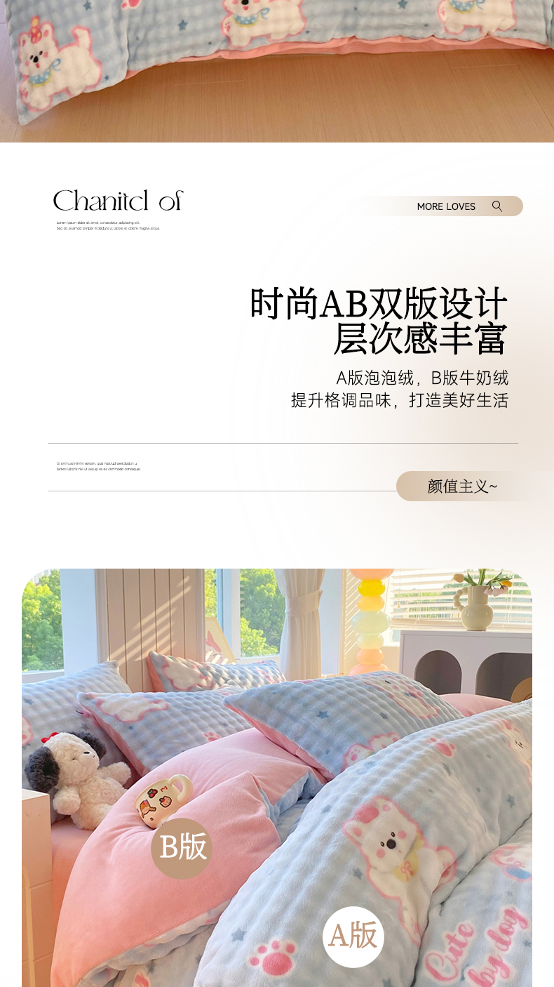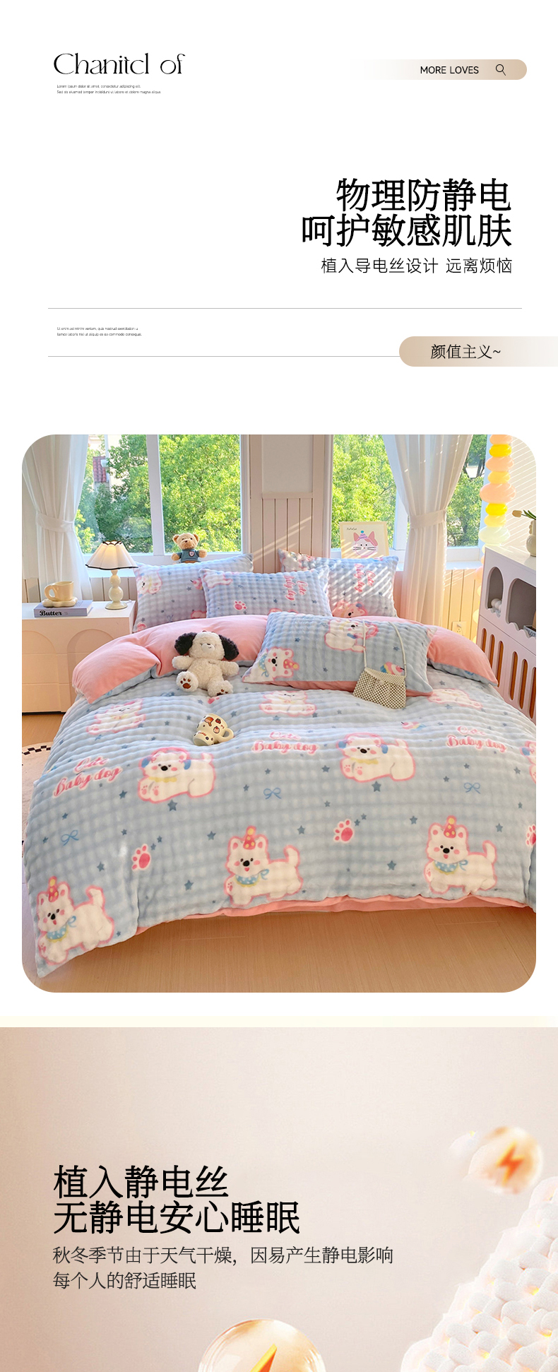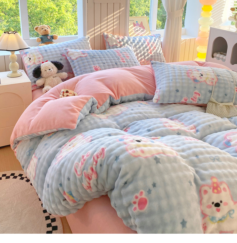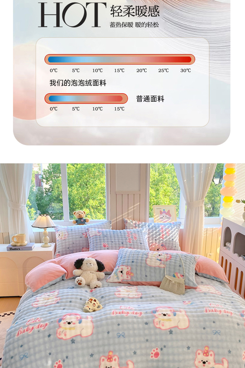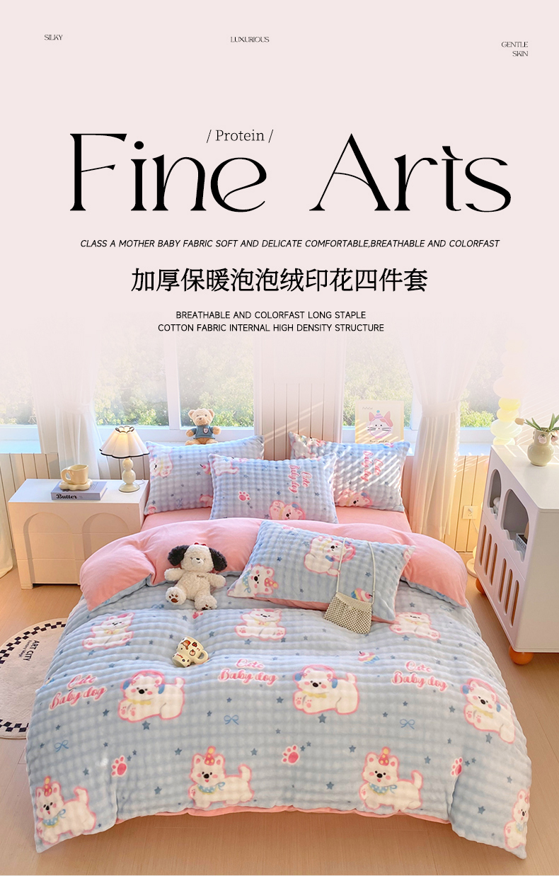 (总)艾橙 2025新款泡泡牛奶绒加厚保暖印花四件套