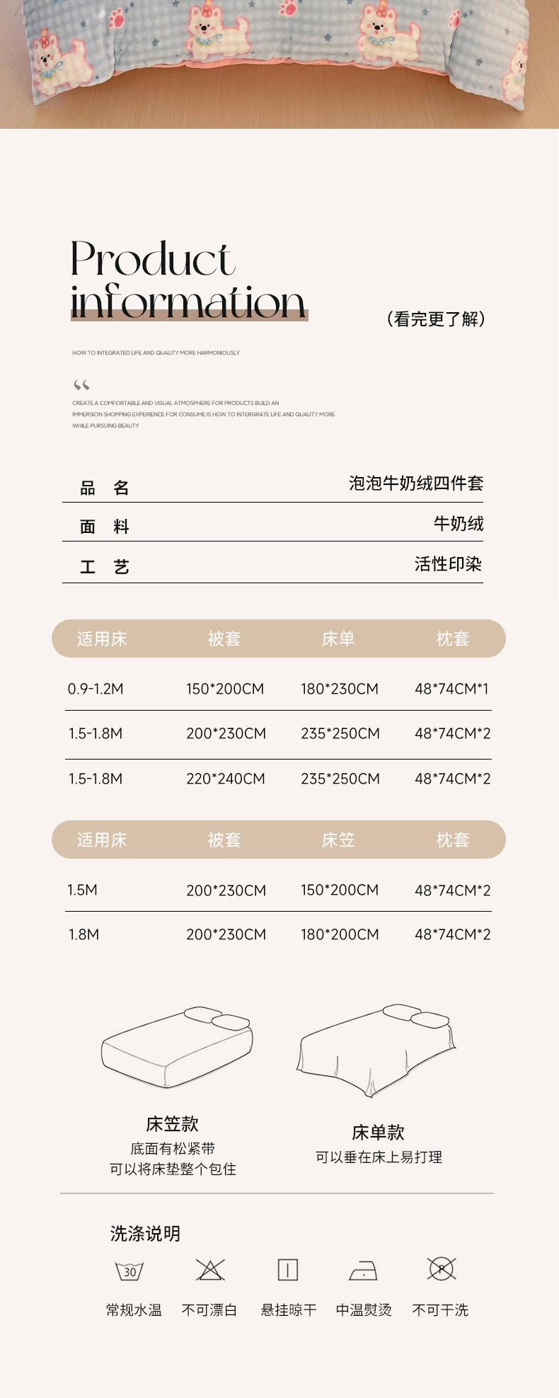 商品名称:(总)艾橙 2025新款泡泡牛奶绒加厚保暖印花四件套