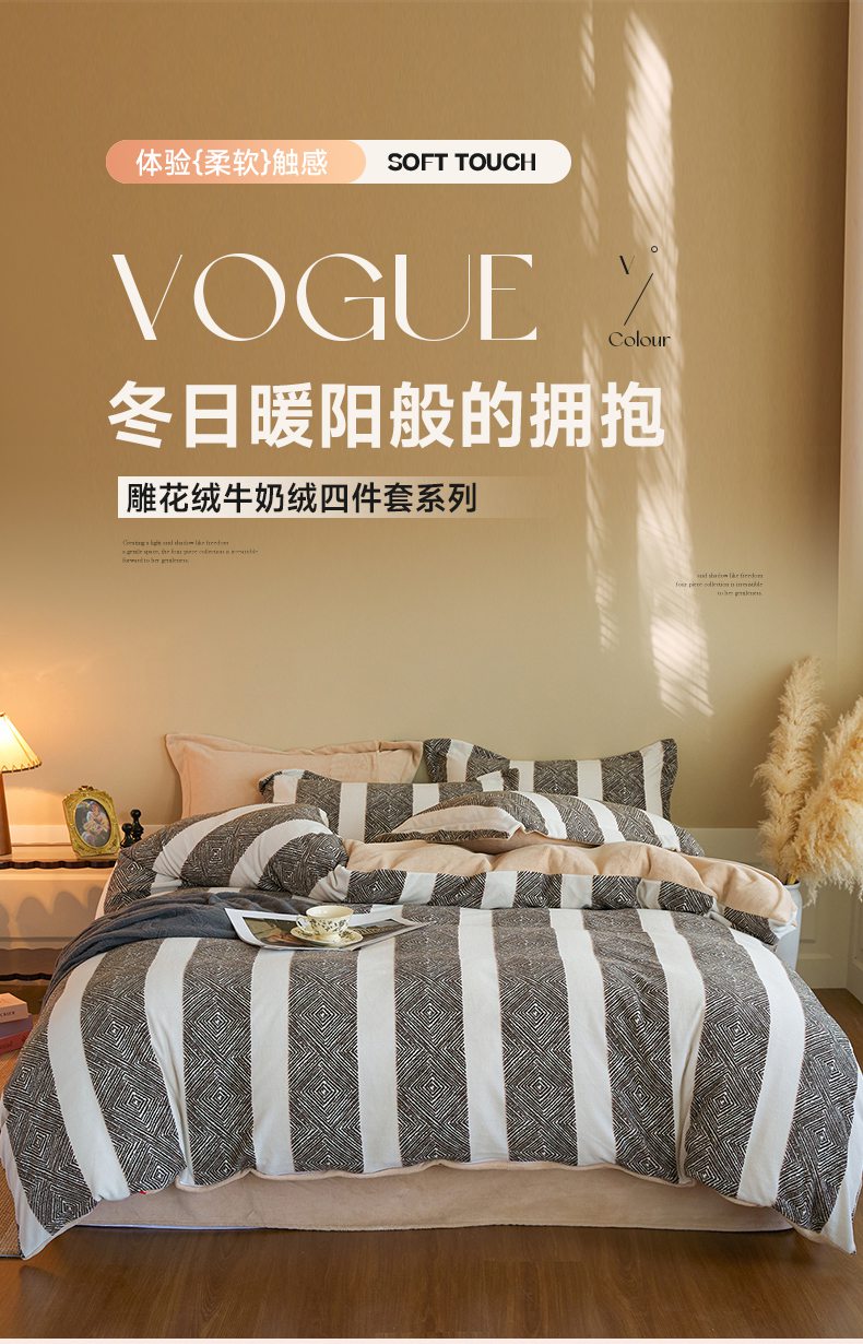 当前位置: 91家纺网 > 商品网购 > 床品套件 > 四件套 > 牛奶绒四件套 > 菡宝 【主推第三批 带质检报告】A类全消光230g雕花绒牛奶绒四件套支持定制定做尺寸 畅想未来