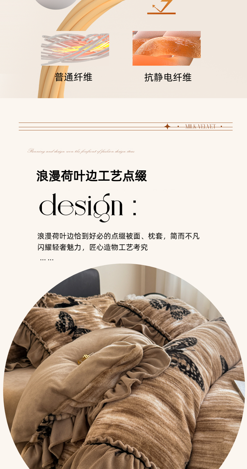 (总)米莱家纺 2025新款兔毛绒花边牛奶绒四件套,彩色圆点,繁花,粉黛,蝴蝶结,咖圆点,可爱兔,可爱熊,蔷薇