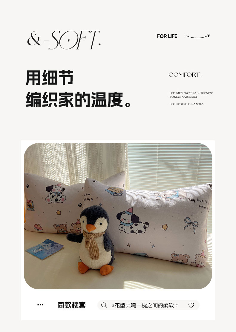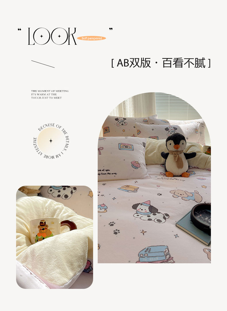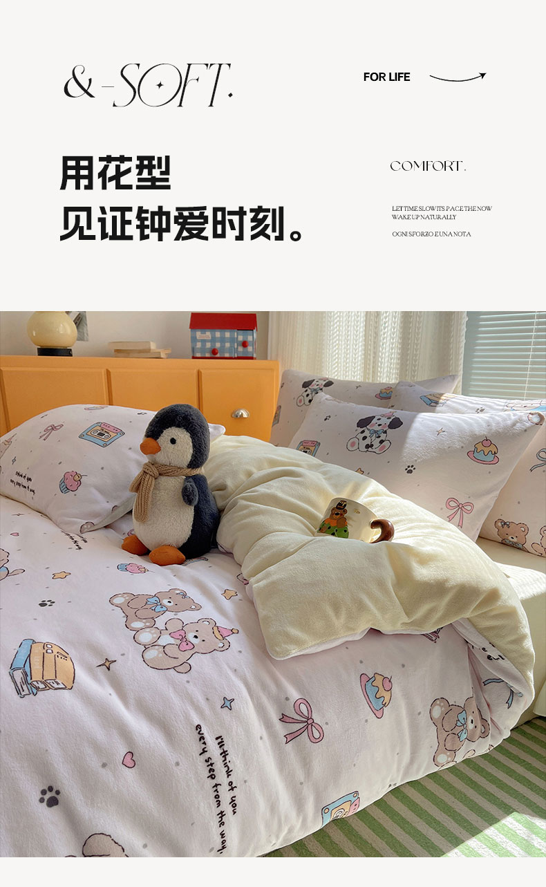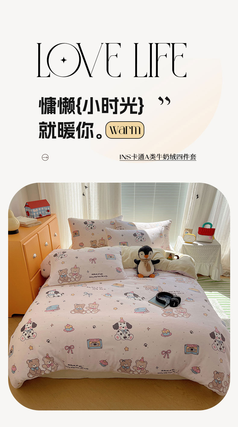 六巷胡同 2025新款INS卡通A类200克牛奶绒基础款四件套(第一系) 基础款-磁带熊仔粉