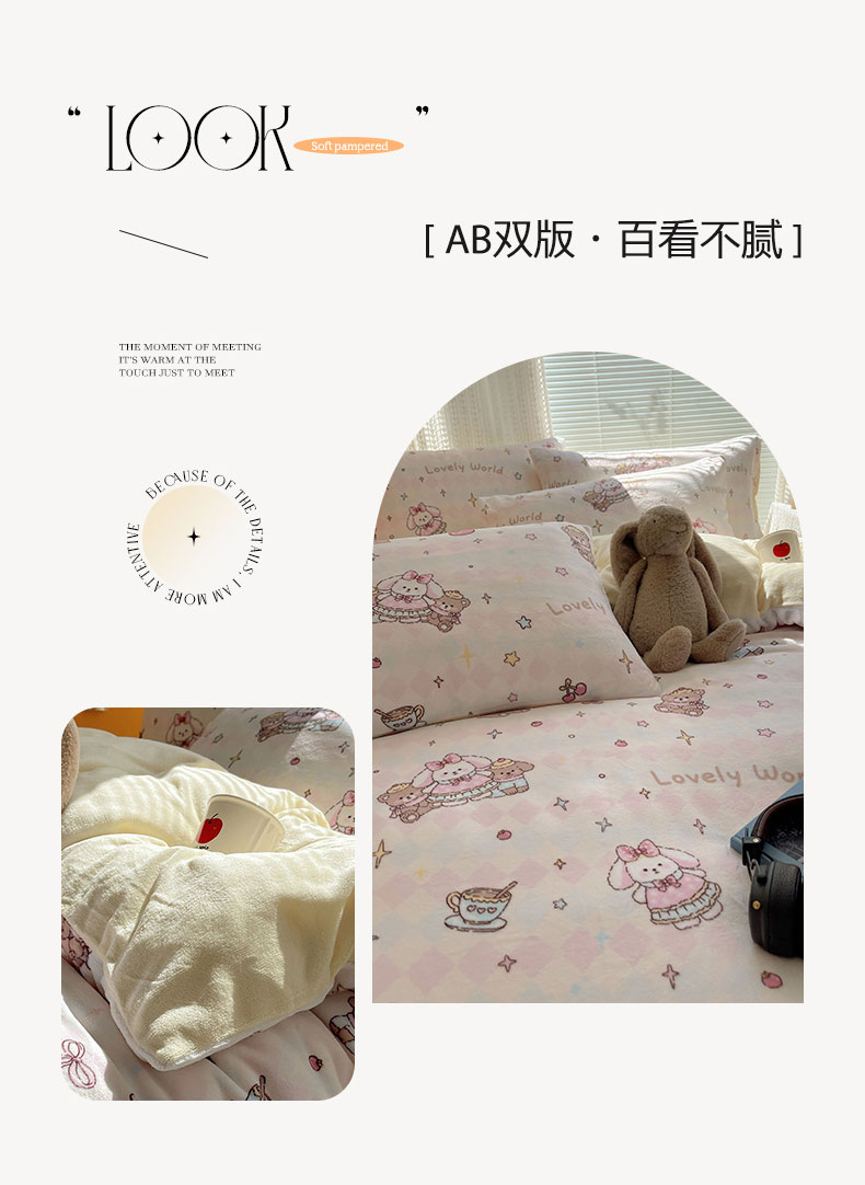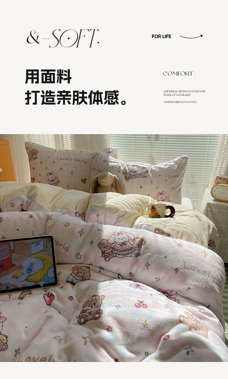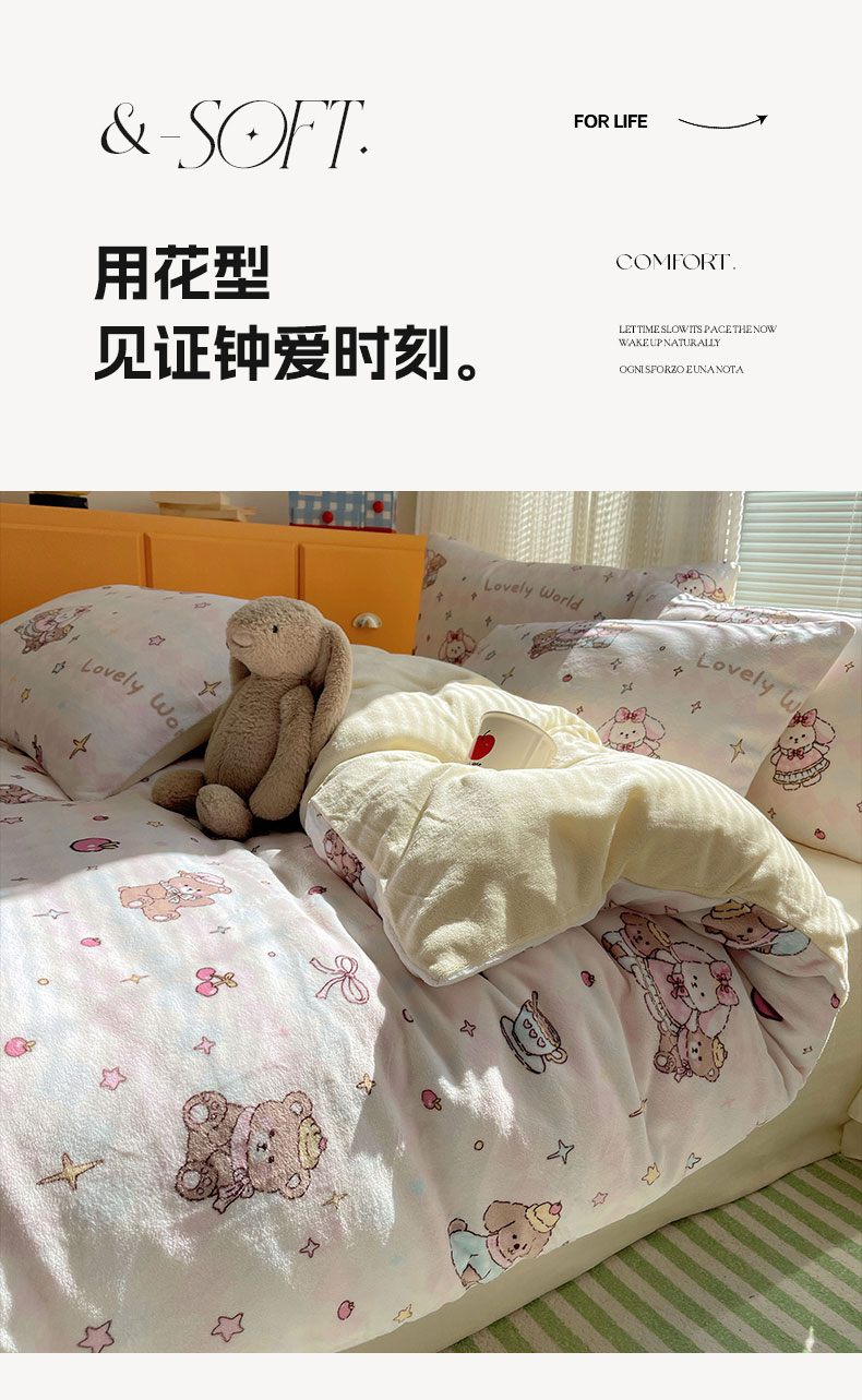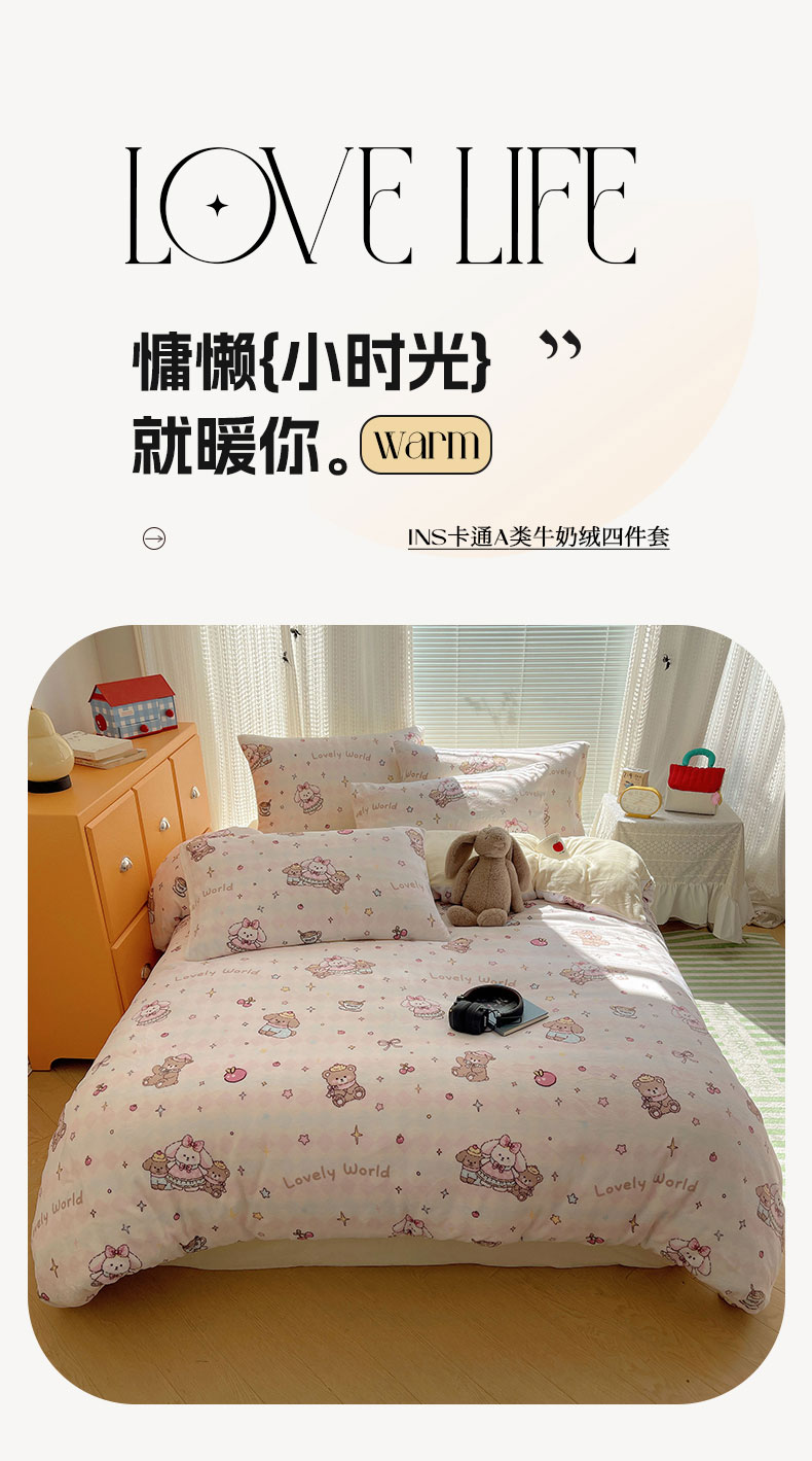 六巷胡同 2025新款INS卡通A类200克牛奶绒基础款四件套(第一系) 基础款-星星宠物集