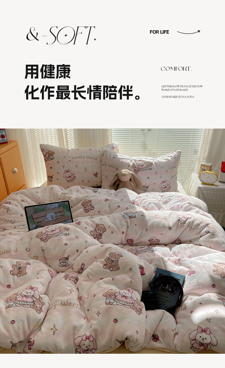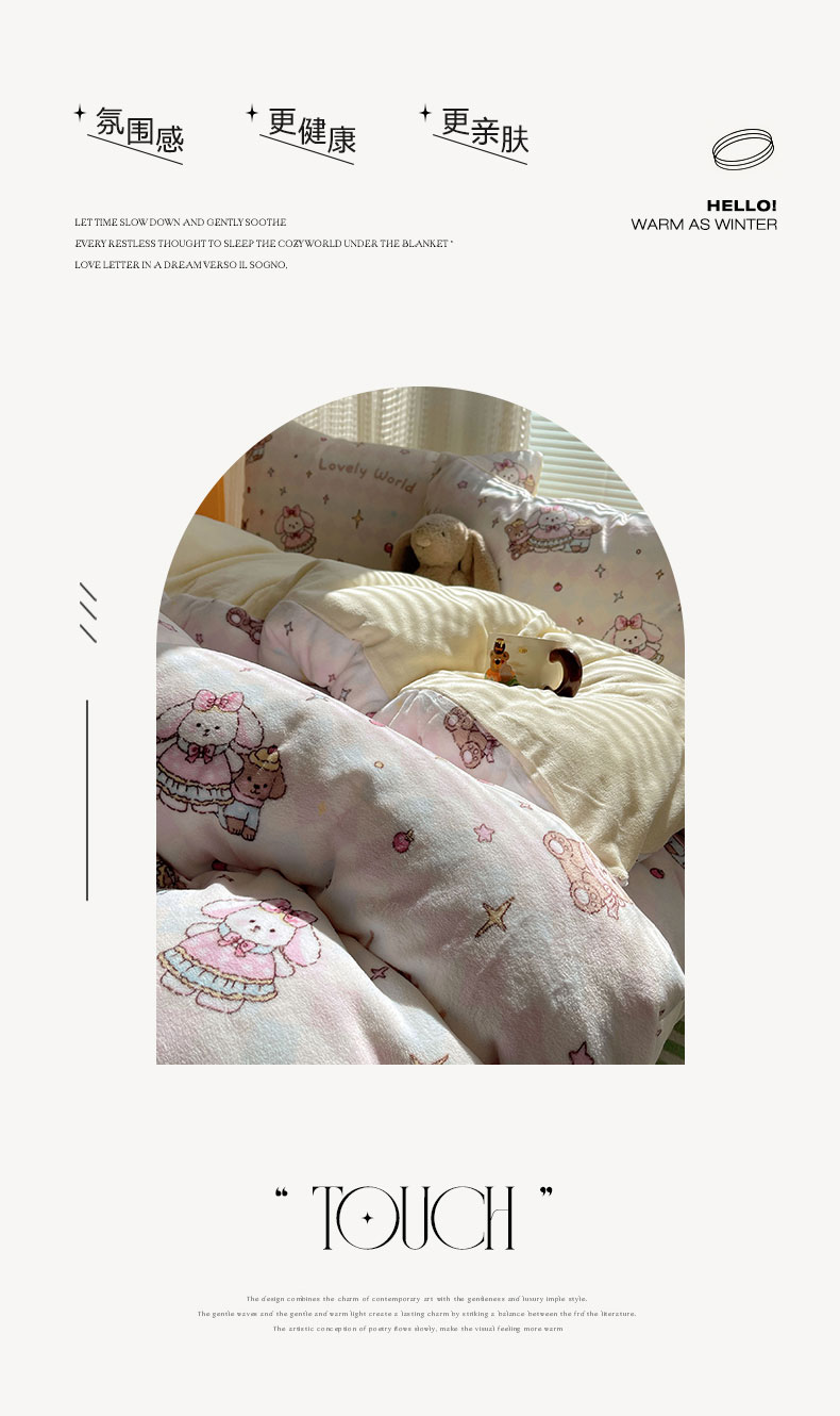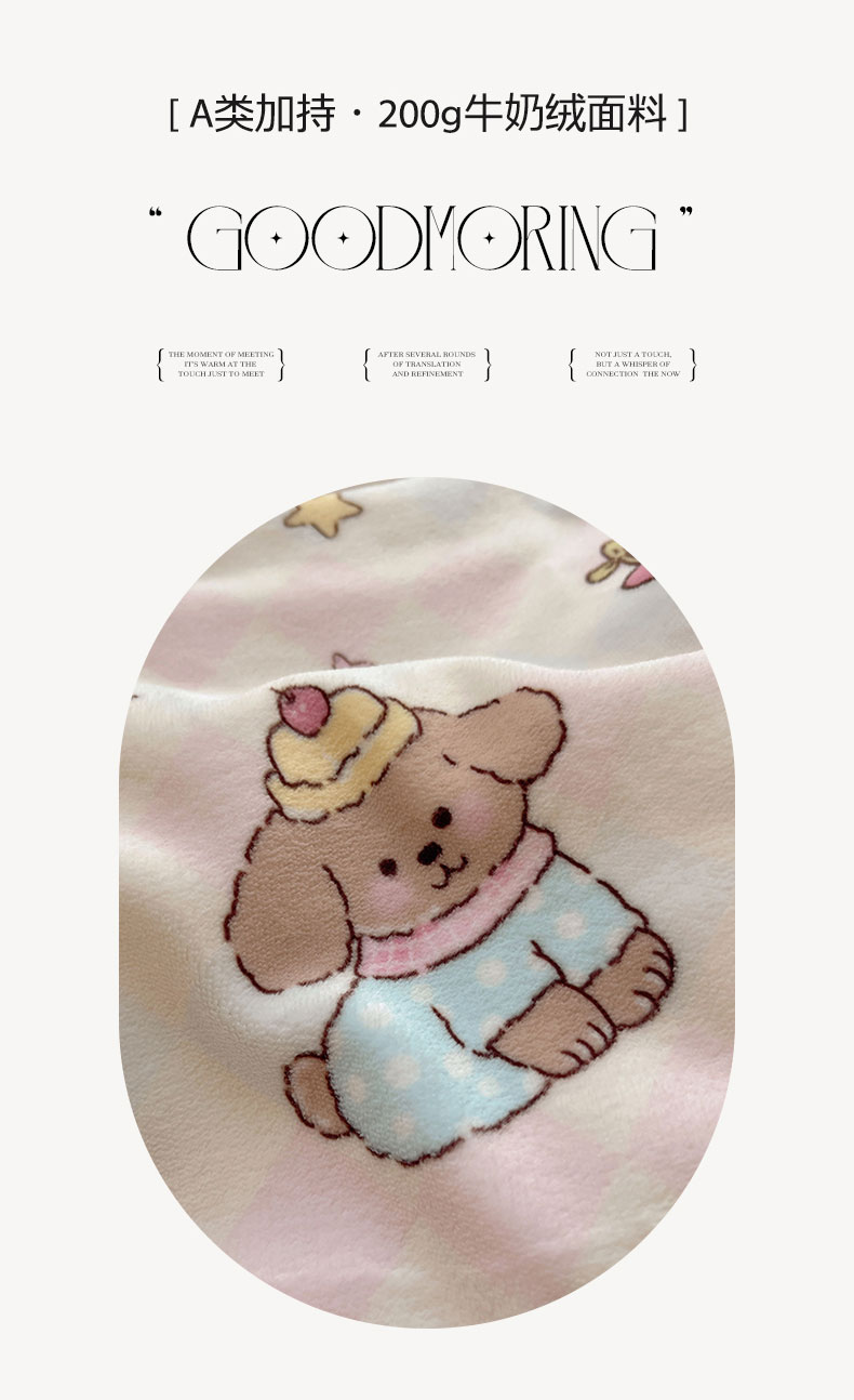 商品名称:六巷胡同 2025新款INS卡通A类200克牛奶绒基础款四件套(第一系) 基础款-星星宠物集