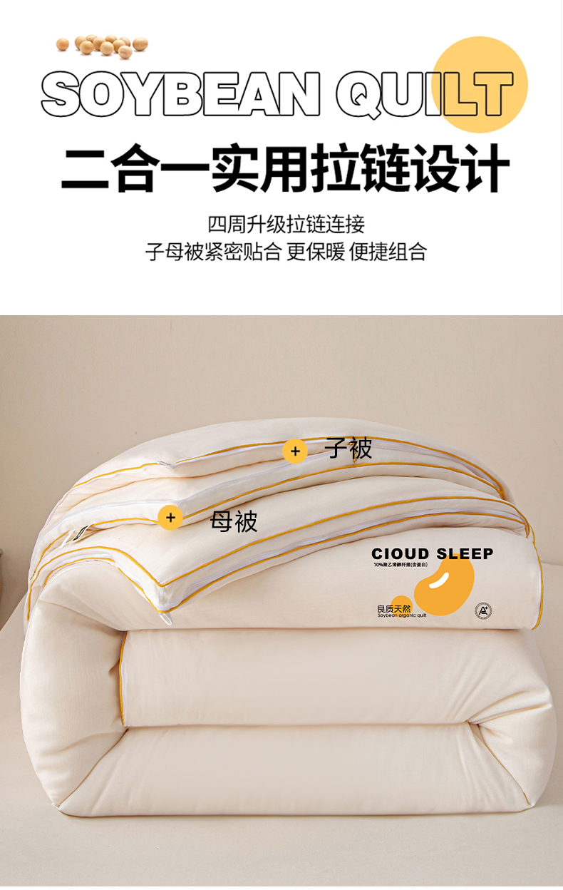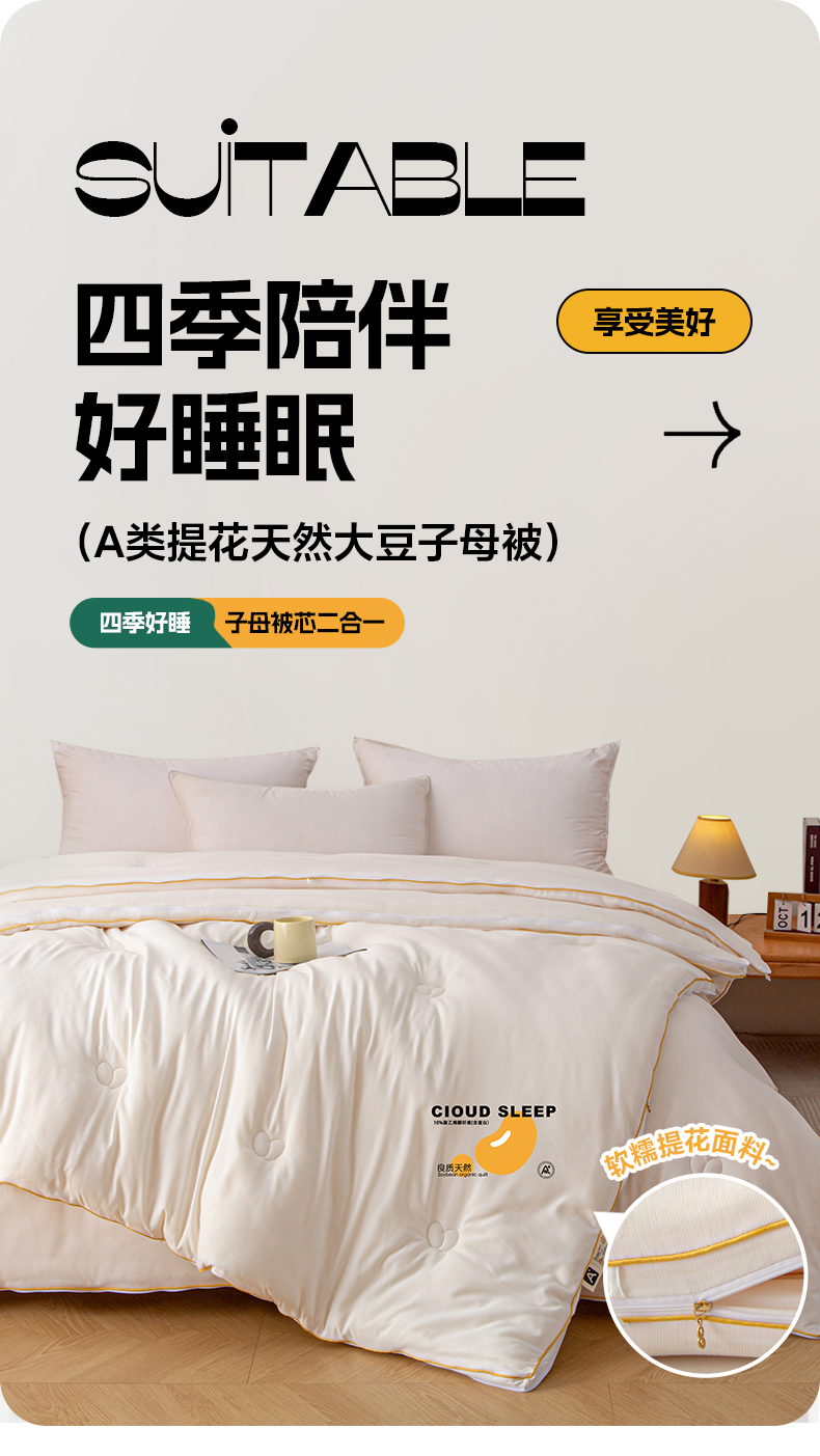 商品名称:维洋家纺 2025新款A类提花良质天然大豆子母被子被芯 良质白
