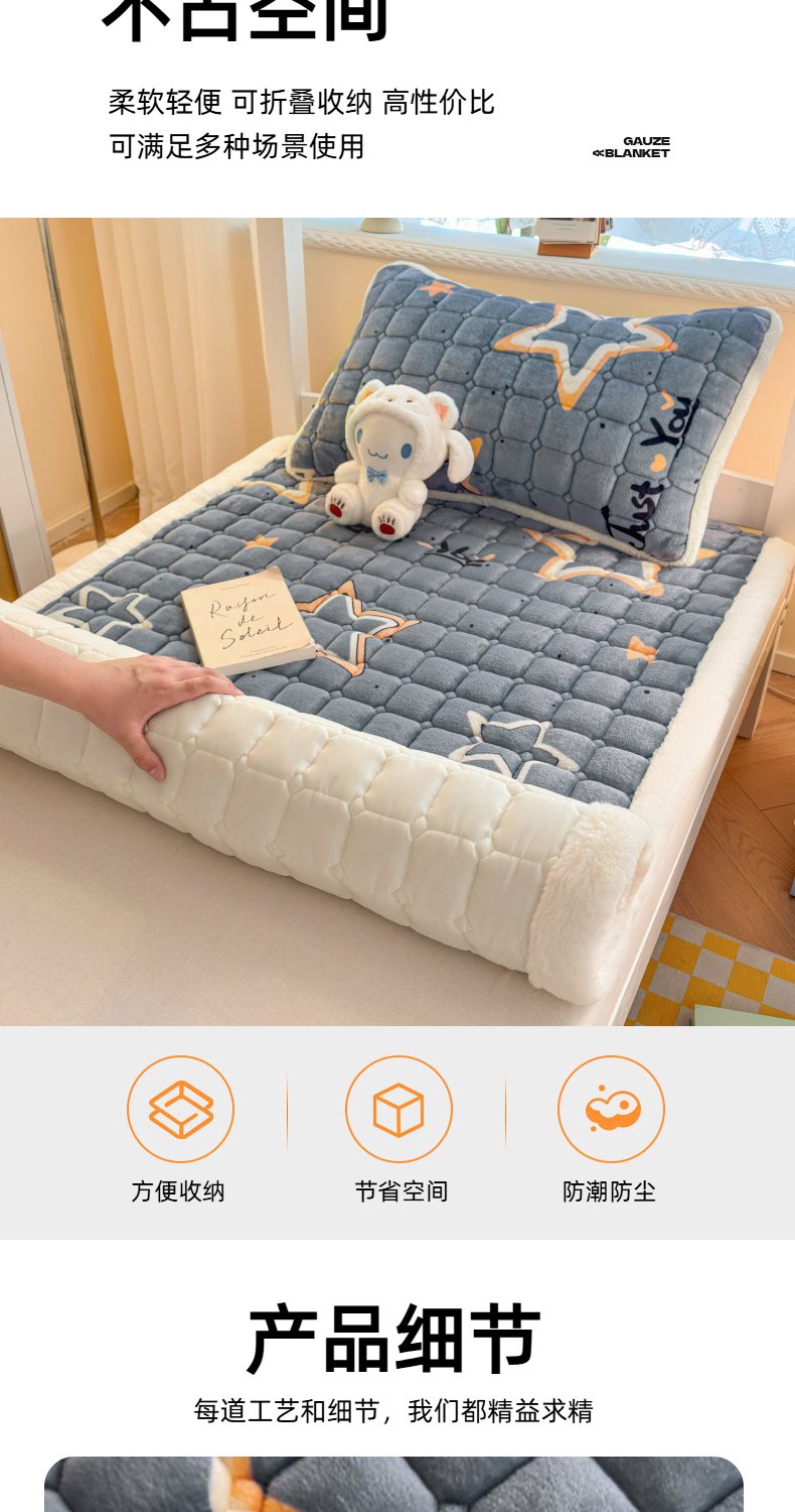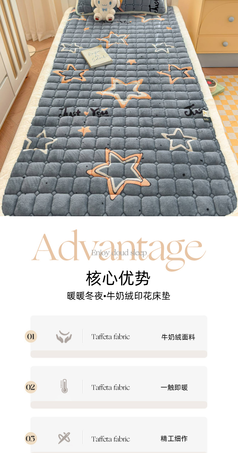 当前位置: 91家纺网 > 商品网购 > 床垫/床褥 > 普通床垫 > 爱屋及屋 2025新款牛奶绒印花床垫-宿舍床 星星灰