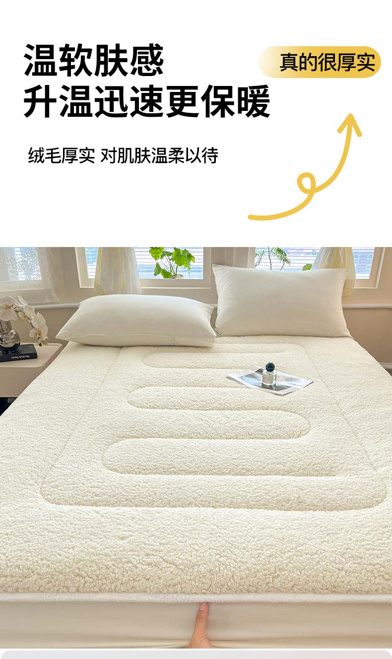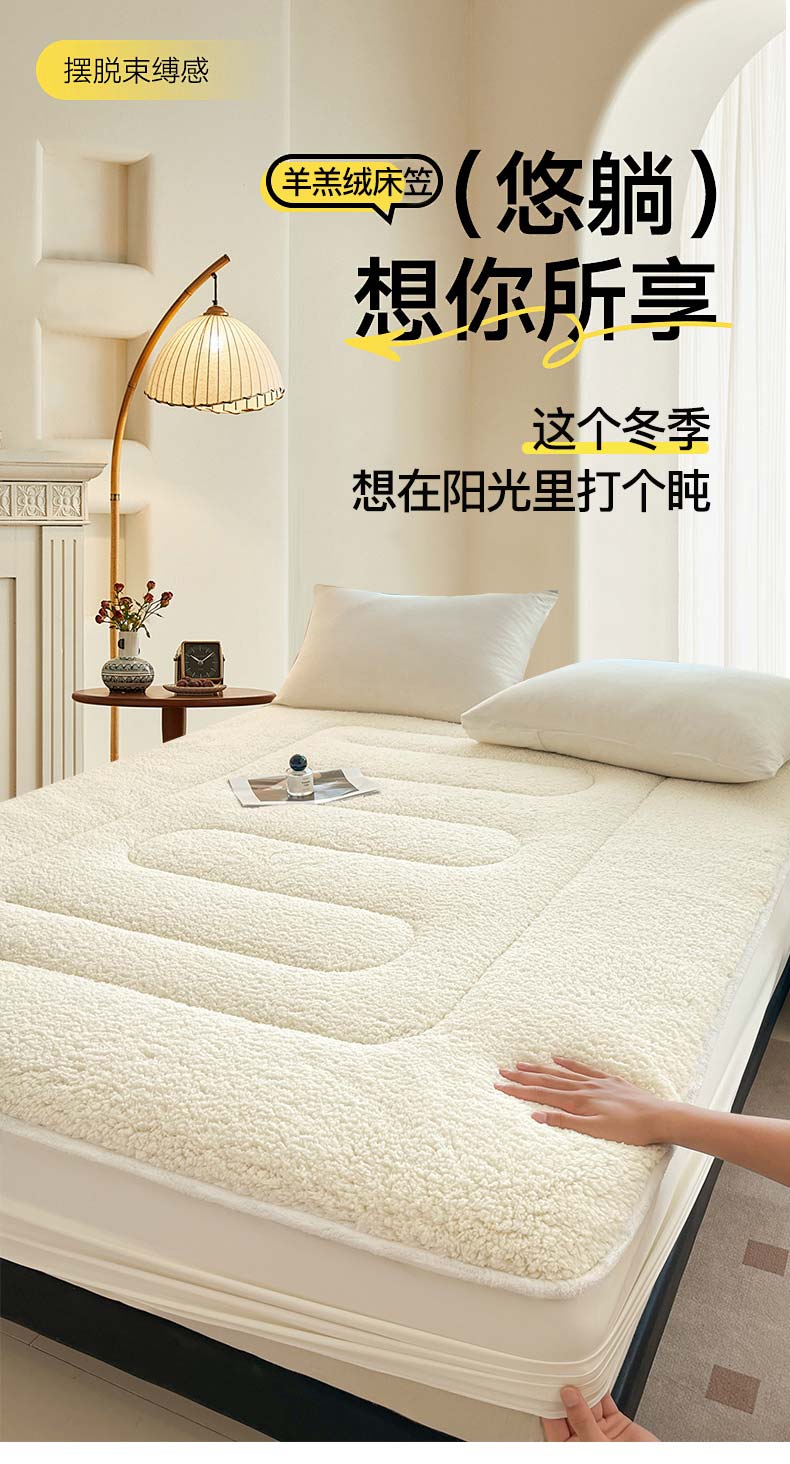商品名称:悠米悠家 2025新款A类羊羔绒夹棉大豆床笠床垫 白色