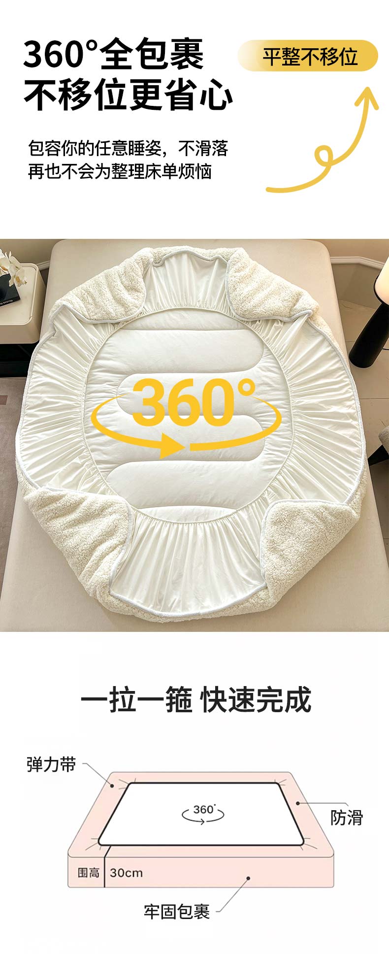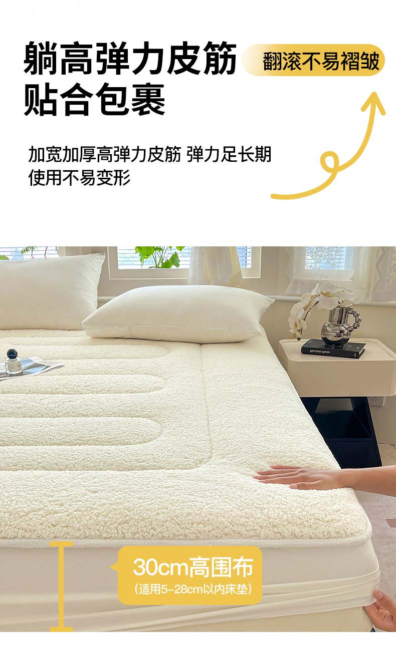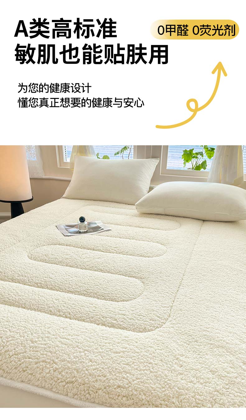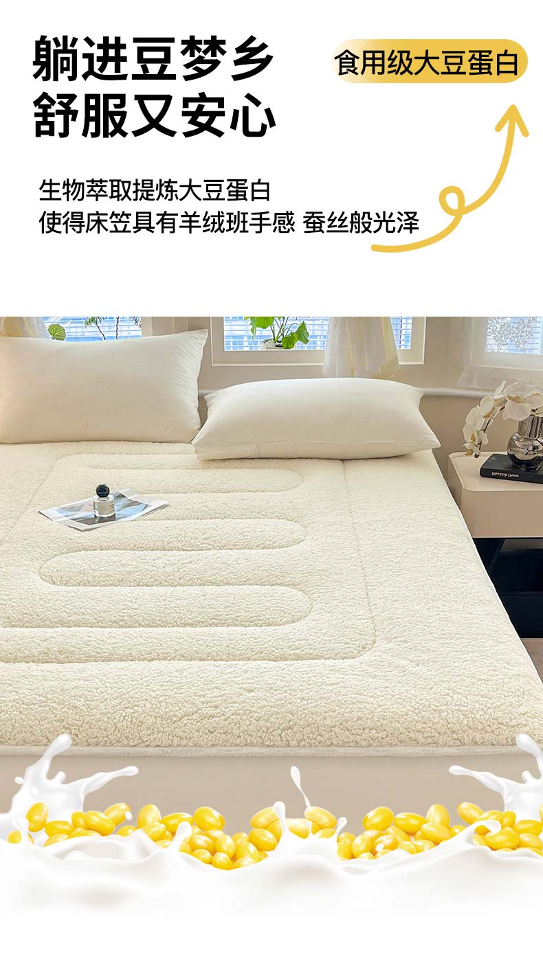 (总)悠米悠家 2025新款A类羊羔绒夹棉大豆床笠床垫,白色,粉色,灰色,橘色,咖色