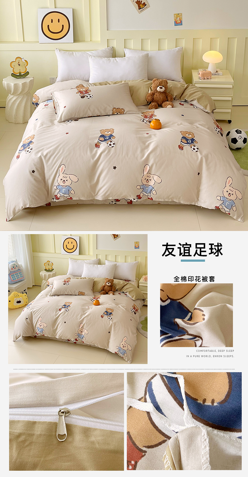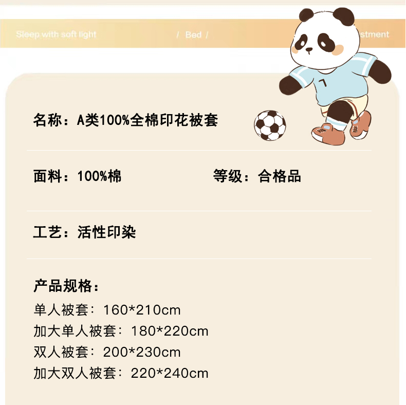 商品名称:金鑫汇家纺 2025新款A类全棉纯棉印花大床图单被套 被套单件 足球争霸赛-灰