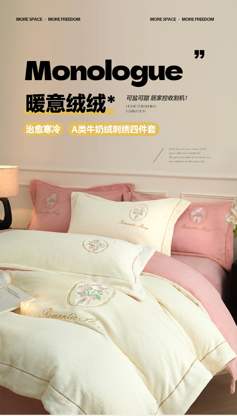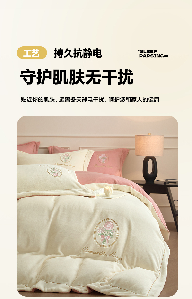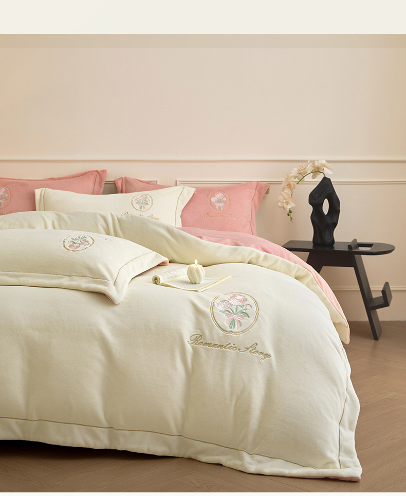 当前位置: 91家纺网 > 商品网购 > 床品套件 > 四件套 > 牛奶绒四件套 > 梦幻之城 2025新款牛奶绒系列四件套-沁雅 沁雅-奶白+橙意粉
