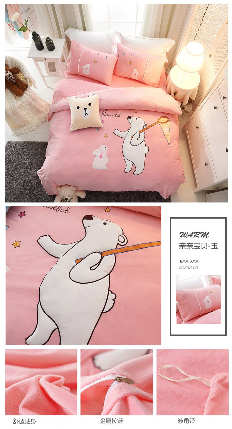 商品名称:梵克保罗 2025新款婴儿绒原创绣花卡通学生三件套四件套 亲亲宝贝-黄