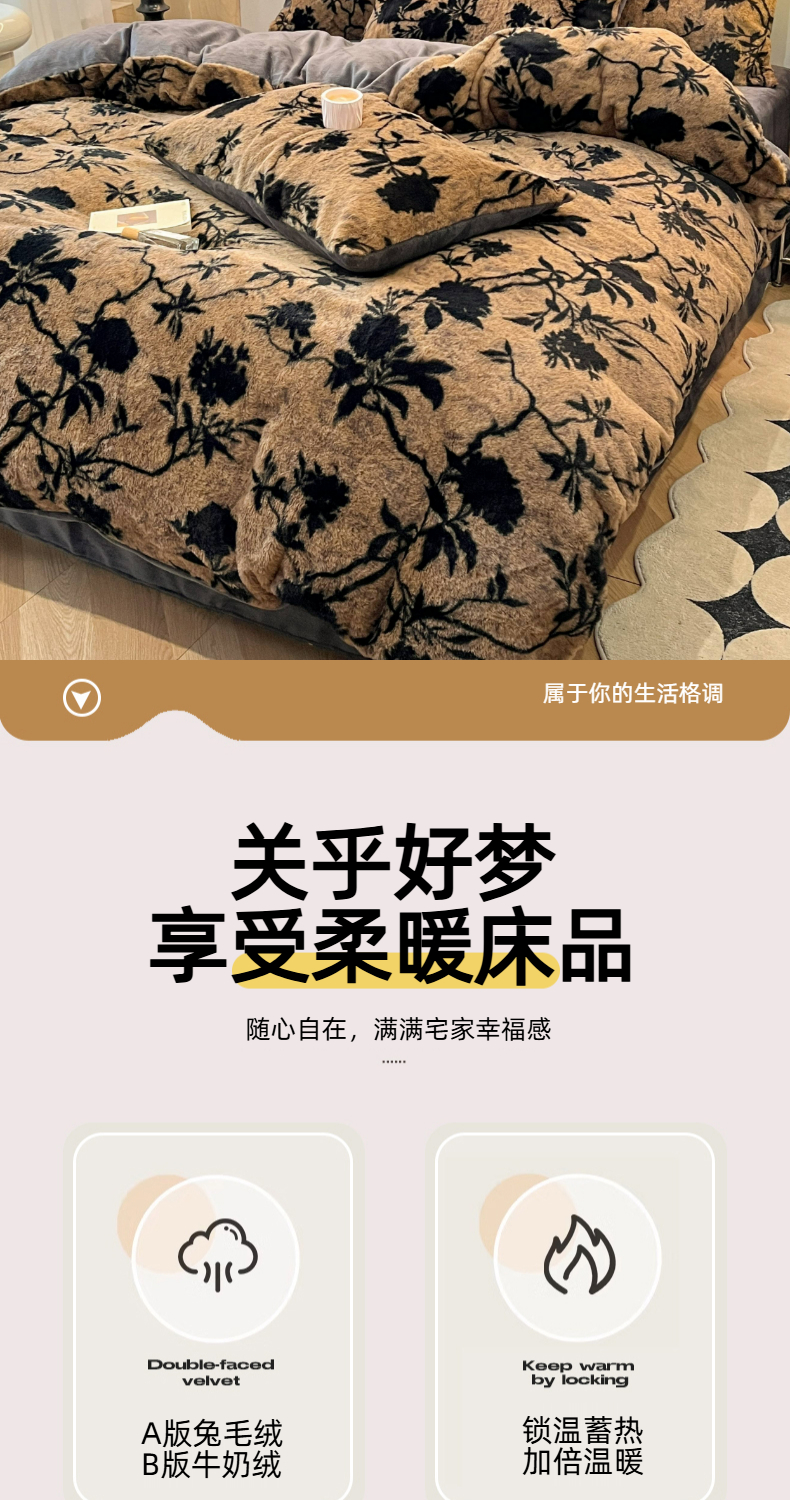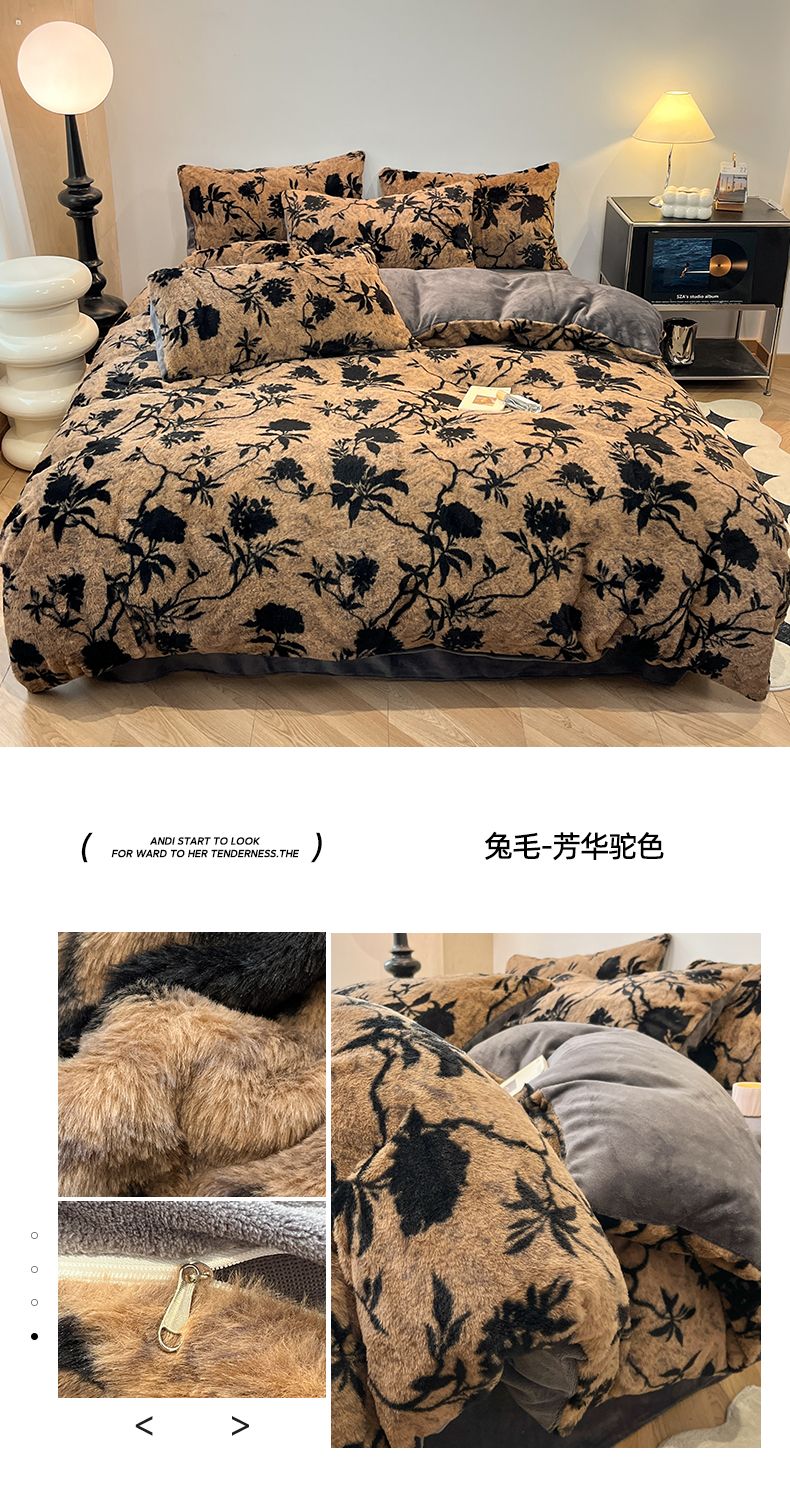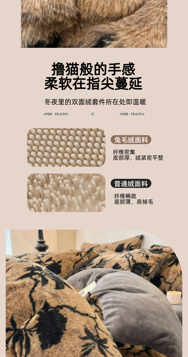 商品名称:金爱家 2025新款全消光牛奶绒A类赫本风纯色獭兔毛绒立体牛奶绒四件套 兔毛-芳华驼色