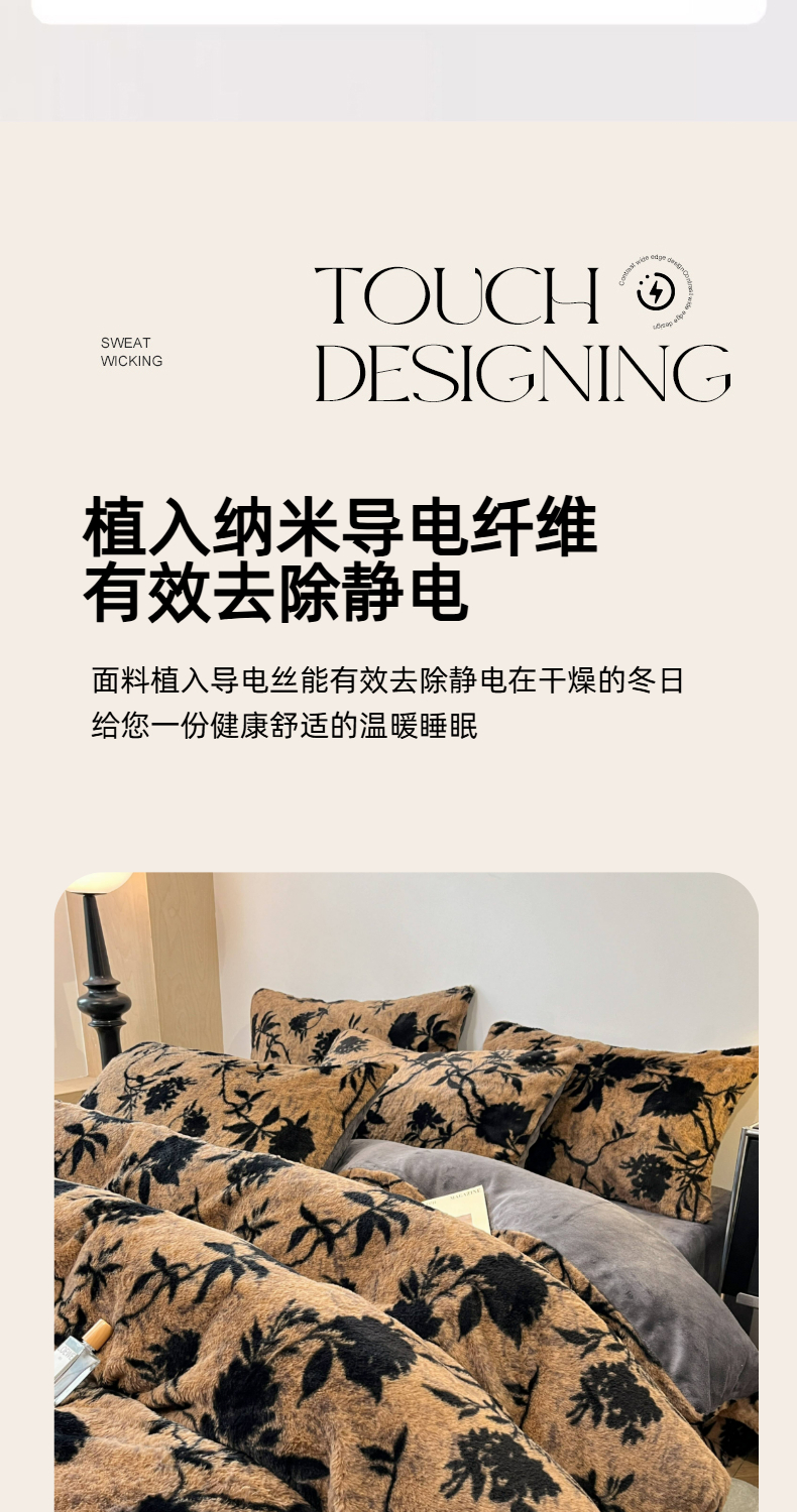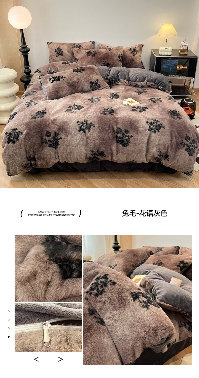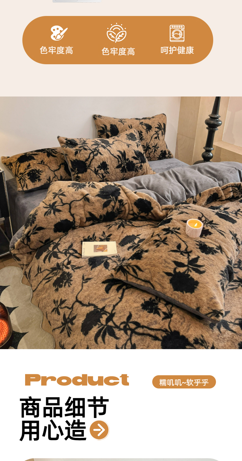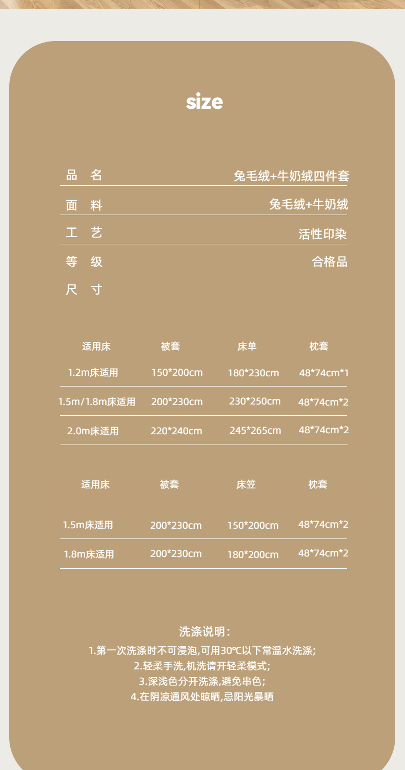 商品名称:金爱家 2025新款全消光牛奶绒A类赫本风纯色獭兔毛绒立体牛奶绒四件套 兔毛-芳华驼色