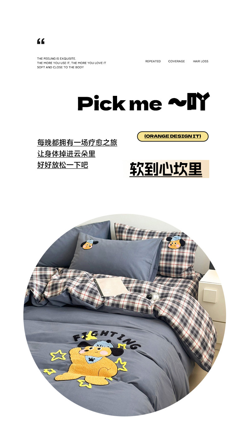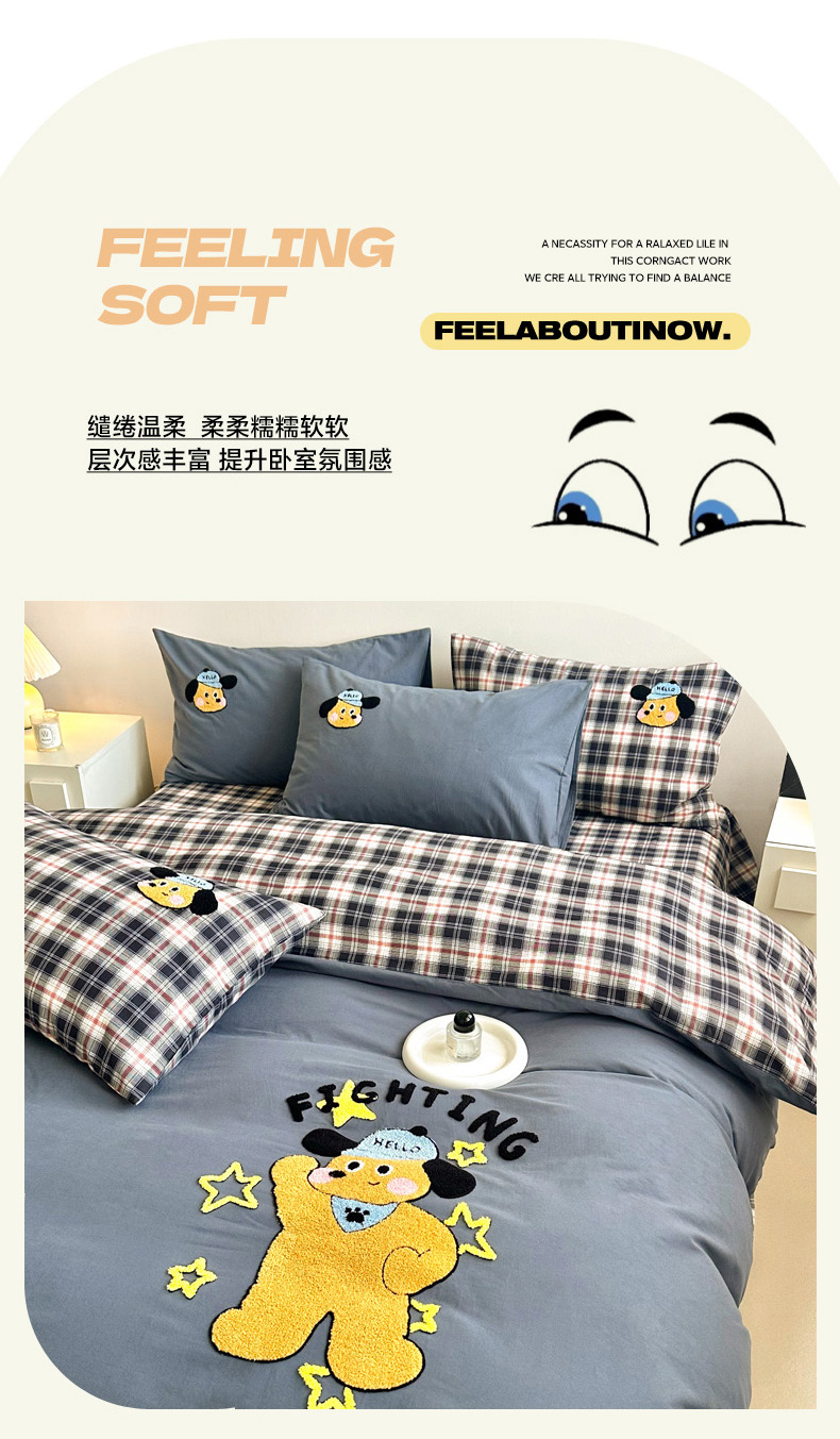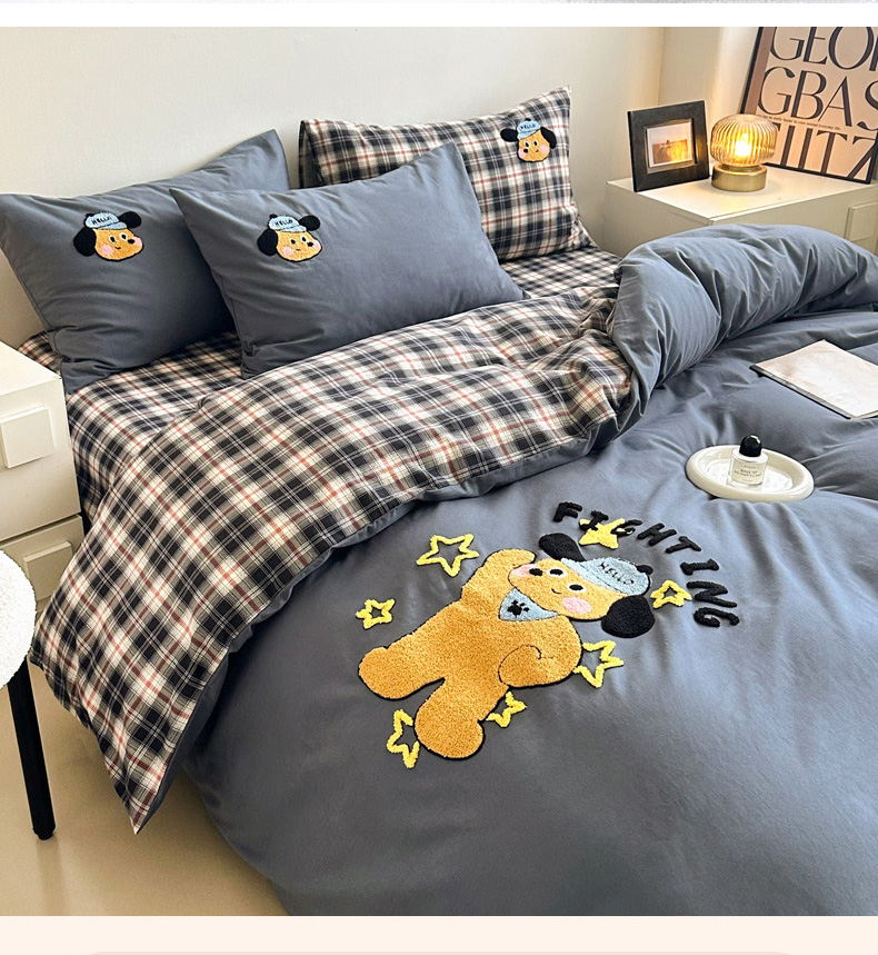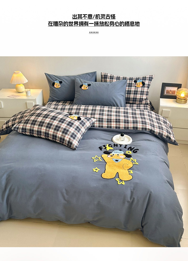 当前位置: 91家纺网 > 商品网购 > 床品套件 > 四件套 > 全棉普通四件套 > 如意朵 2025新款全棉纯棉磨毛绣花四件套-风格一 加油小狗