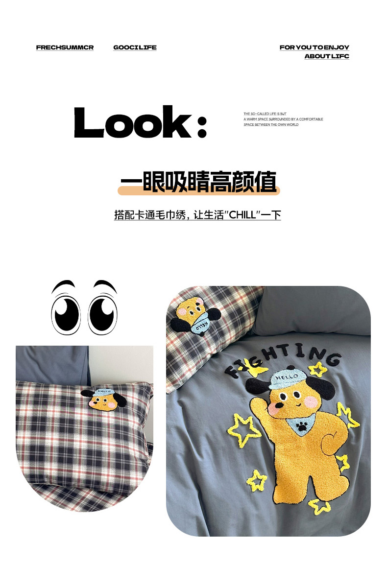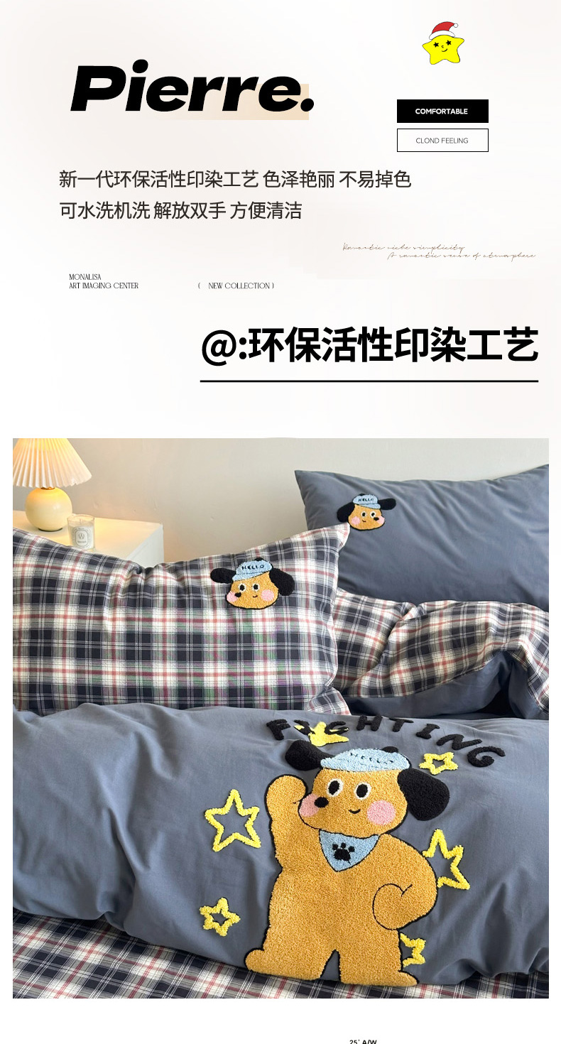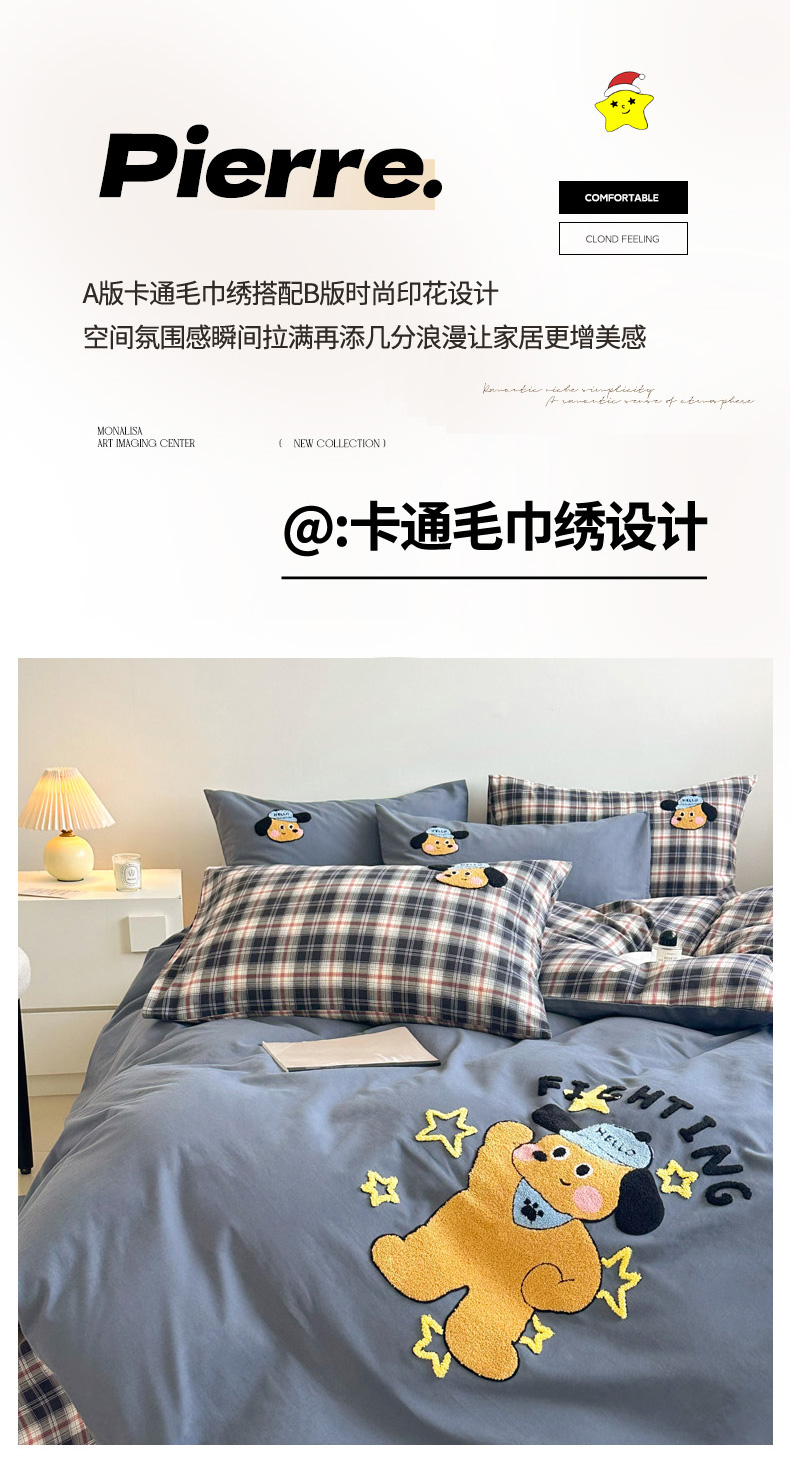 当前位置: 91家纺网 > 商品网购 > 床品套件 > 四件套 > 全棉普通四件套 > 如意朵 2025新款全棉纯棉磨毛绣花四件套-风格一 加油小狗