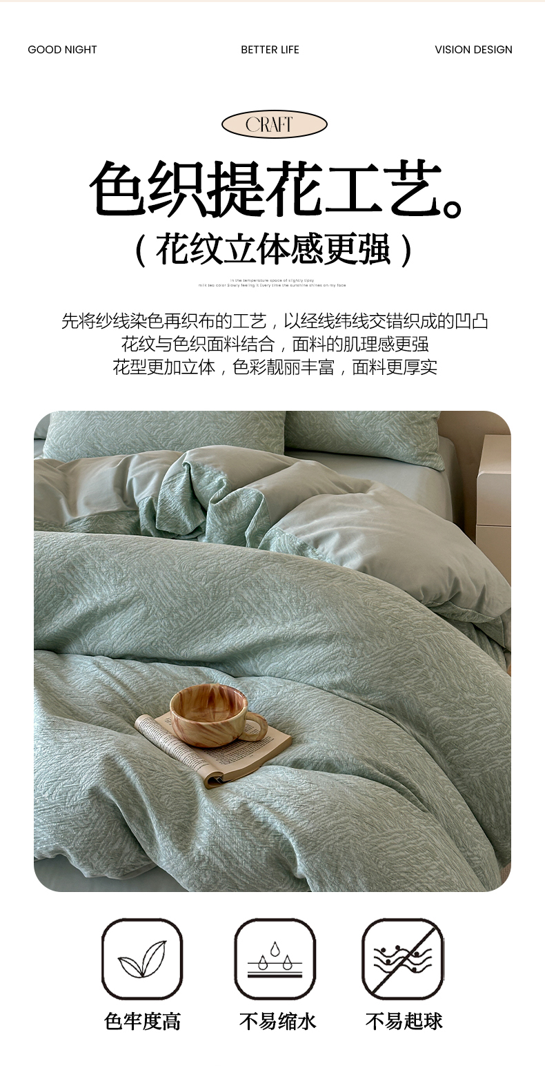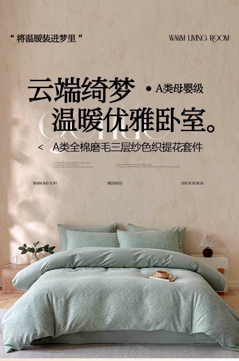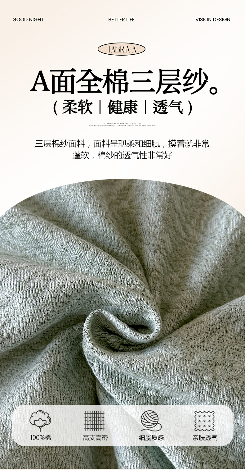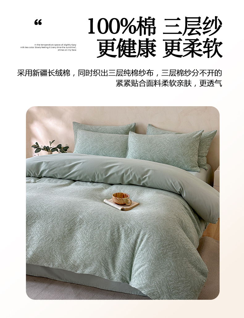当前位置: 91家纺网 > 商品网购 > 床品套件 > 四件套 > 全棉普通四件套 > 小叮当家纺仓储工厂店 2025新款(买家秀 不断货)亲肤A类母婴级全棉纯棉三层纱色织提花磨毛四件套素影 素影-本色-绿