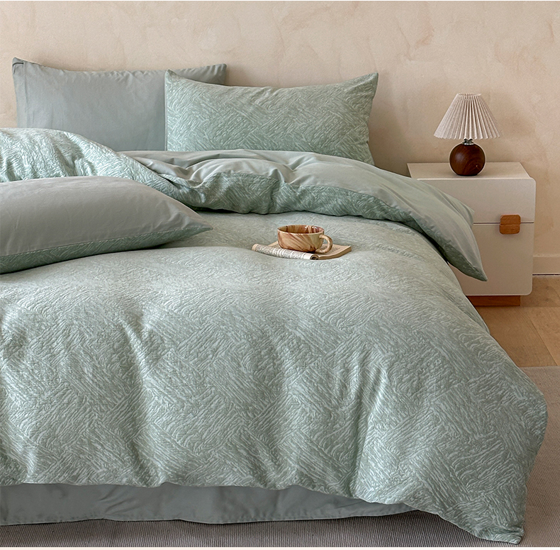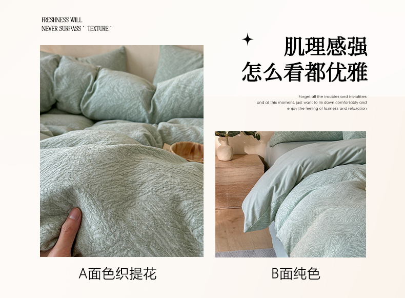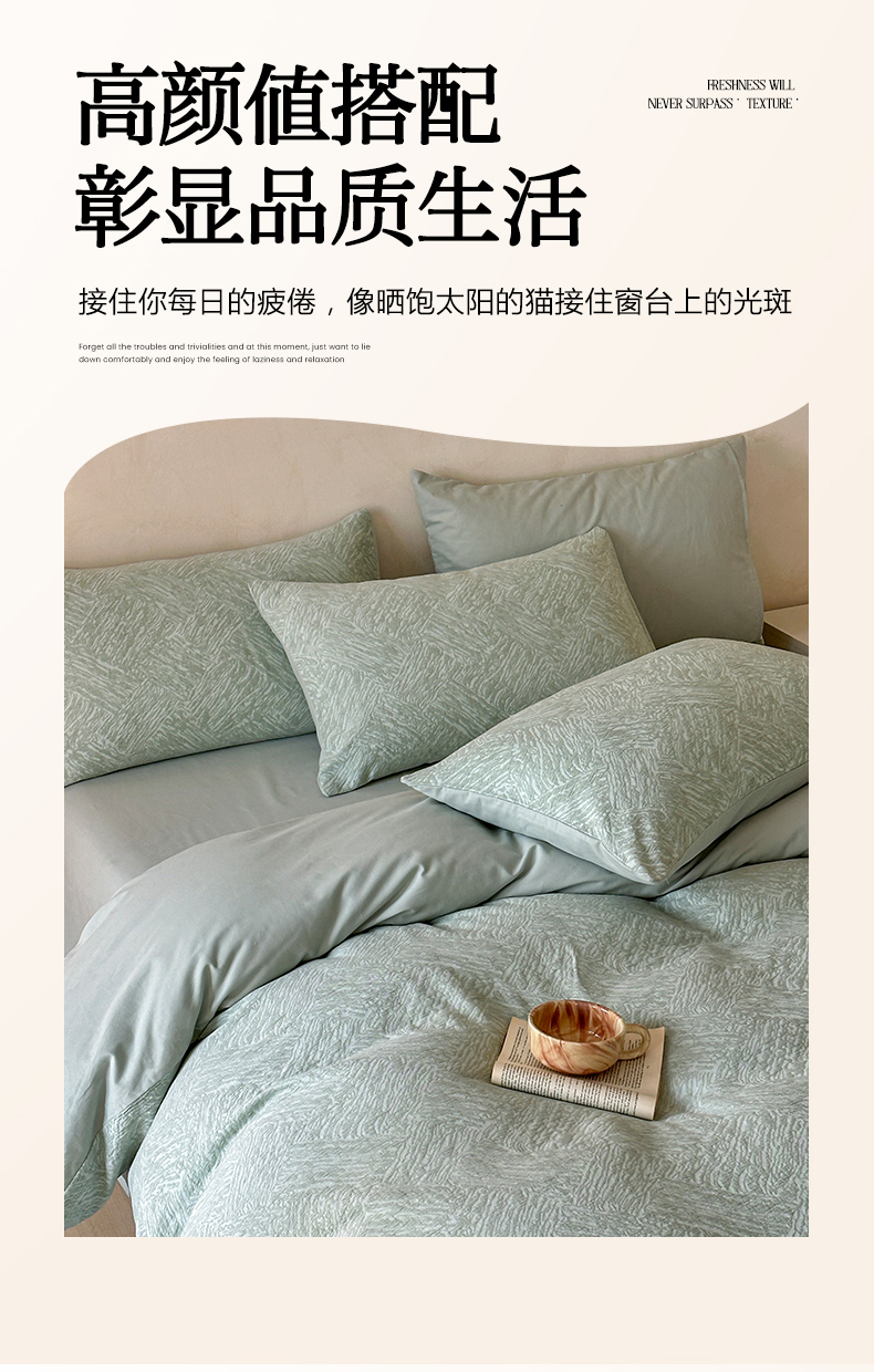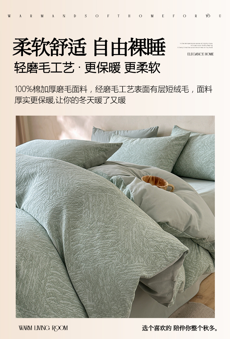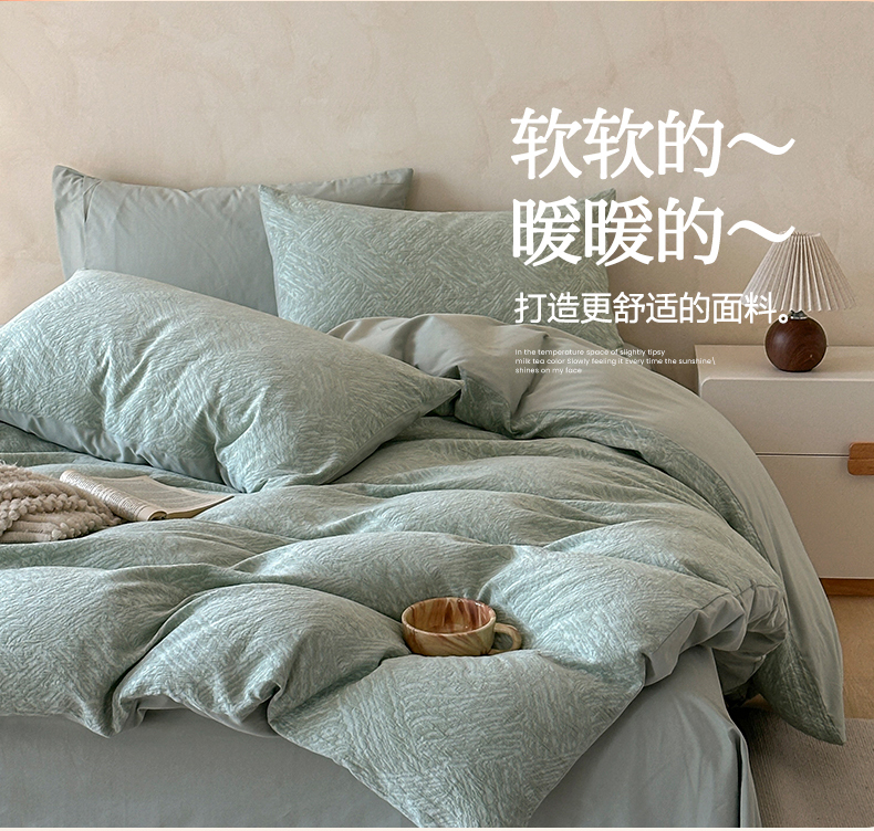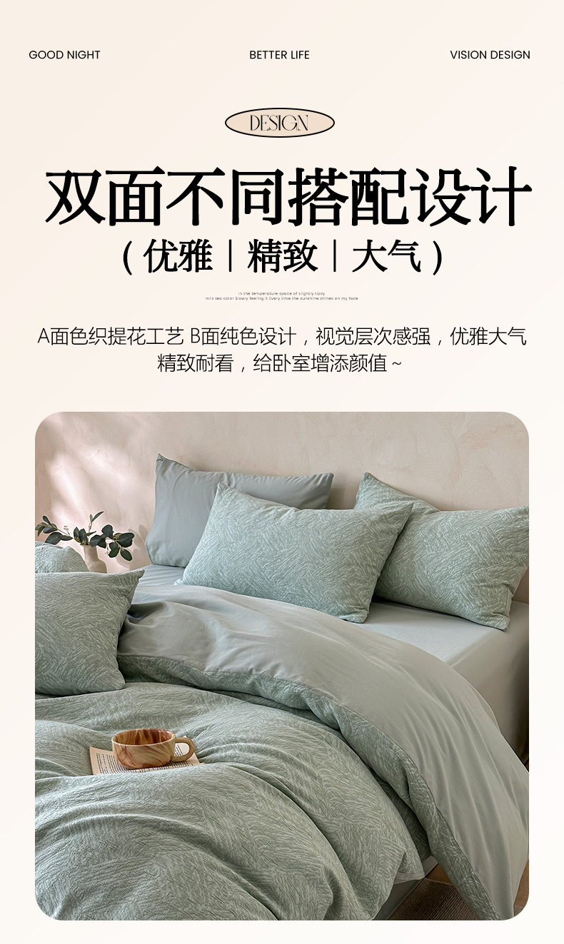 当前位置: 91家纺网 > 商品网购 > 床品套件 > 四件套 > 全棉普通四件套 > 小叮当家纺仓储工厂店 2025新款(买家秀 不断货)亲肤A类母婴级全棉纯棉三层纱色织提花磨毛四件套素影 素影-本色-绿