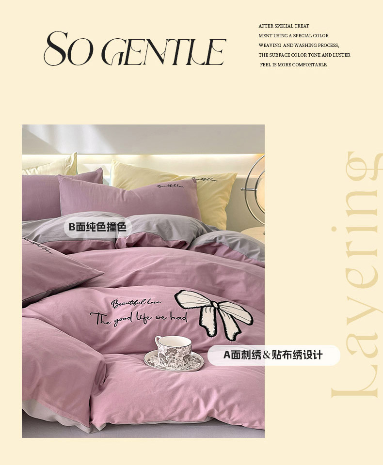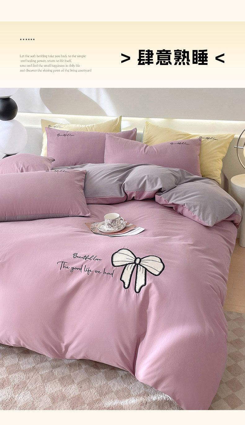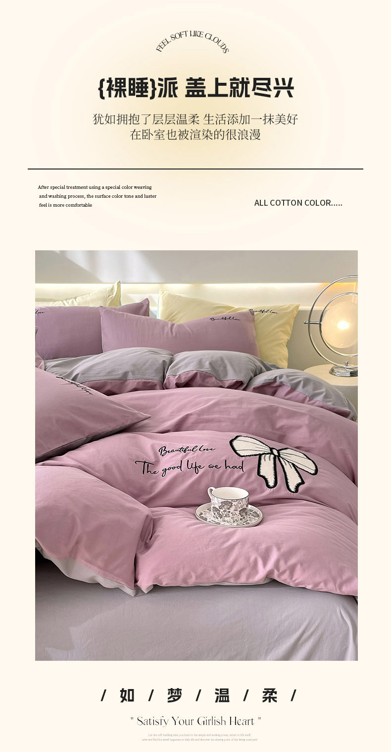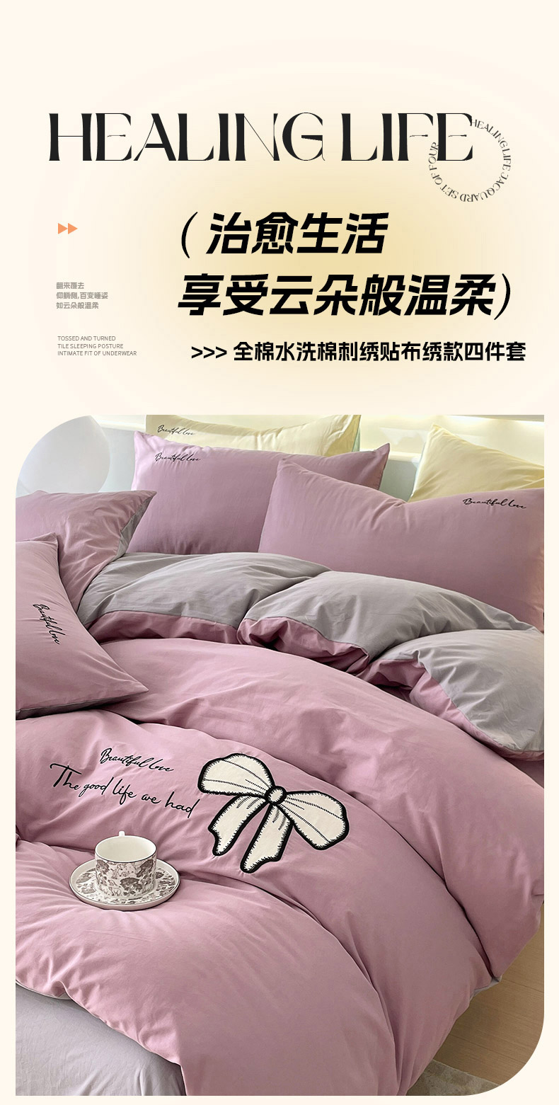 当前位置: 91家纺网 > 商品网购 > 床品套件 > 四件套 > 全棉普通四件套 > 小叮当家纺仓储工厂店 2025新款(买家秀不断货)A类母婴及全棉纯棉水洗棉刺绣贴布绣四件套--初恋系列 曼樾紫+迷雾灰