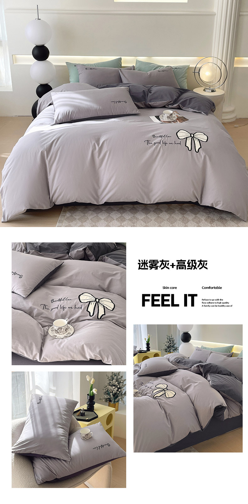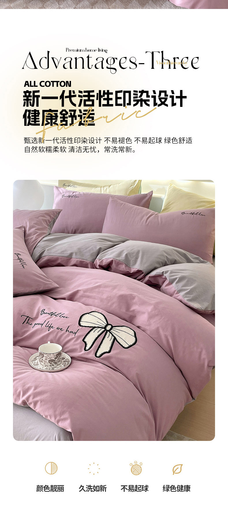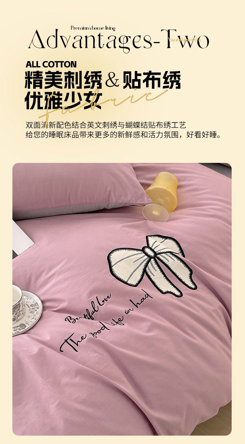 当前位置: 91家纺网 > 商品网购 > 床品套件 > 四件套 > 全棉普通四件套 > 小叮当家纺仓储工厂店 2025新款(买家秀不断货)A类母婴及全棉纯棉水洗棉刺绣贴布绣四件套--初恋系列 曼樾紫+迷雾灰