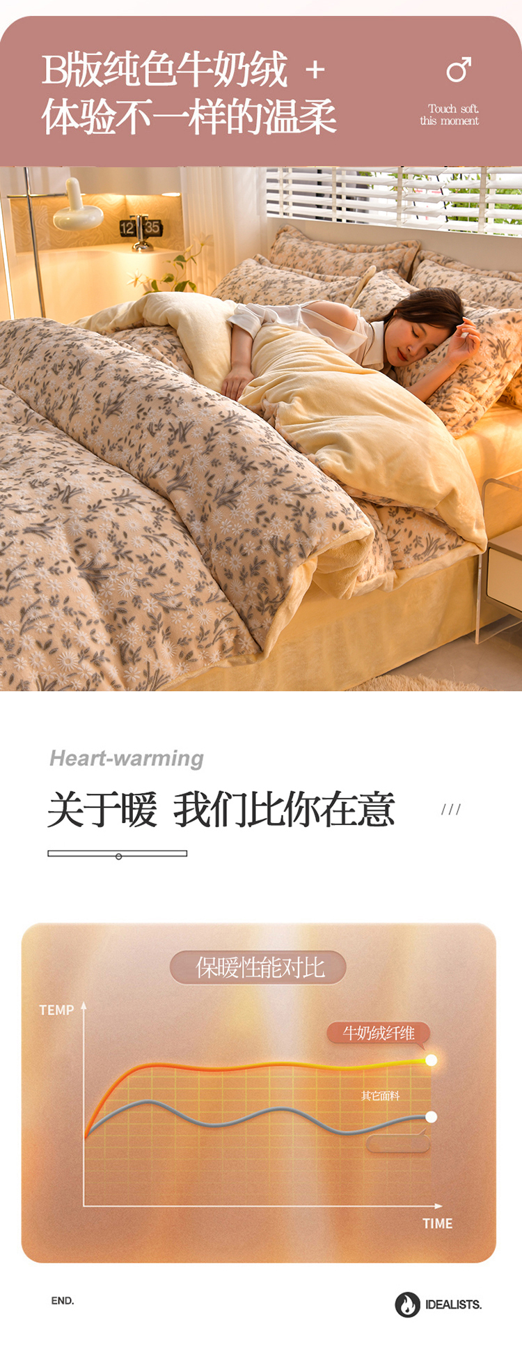 (总)畅畅家纺 2024新款高克重加厚保暖冬季牛奶绒纯色床盖款四件套,豆沙,灰色,天蓝,玉色,中国红