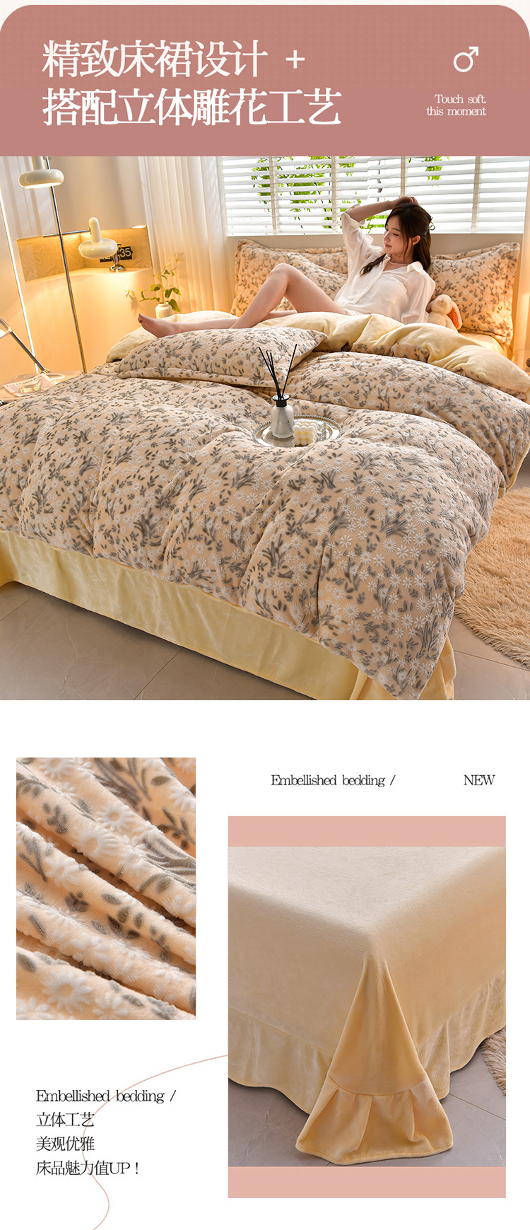 商品名称:畅畅家纺 2025新款亲肤舒适冬季保暖8斤重牛奶绒6D雕花绒床单四件套 小雏菊-黄