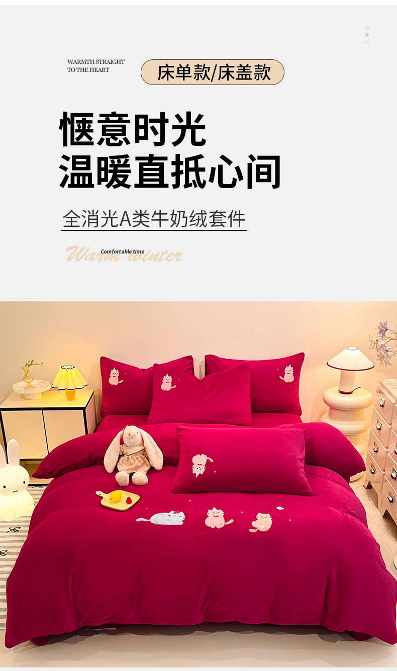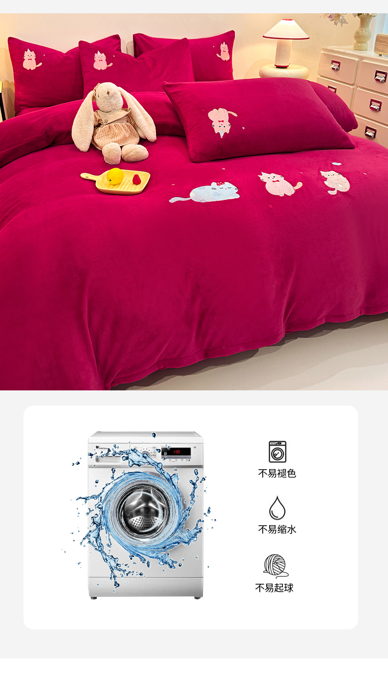 当前位置: 91家纺网 > 商品网购 > 床品套件 > 四件套 > 牛奶绒四件套 > 新方向 2025新款全消光A类刺绣牛奶绒四件套-可爱猫 可爱猫-洋酒红