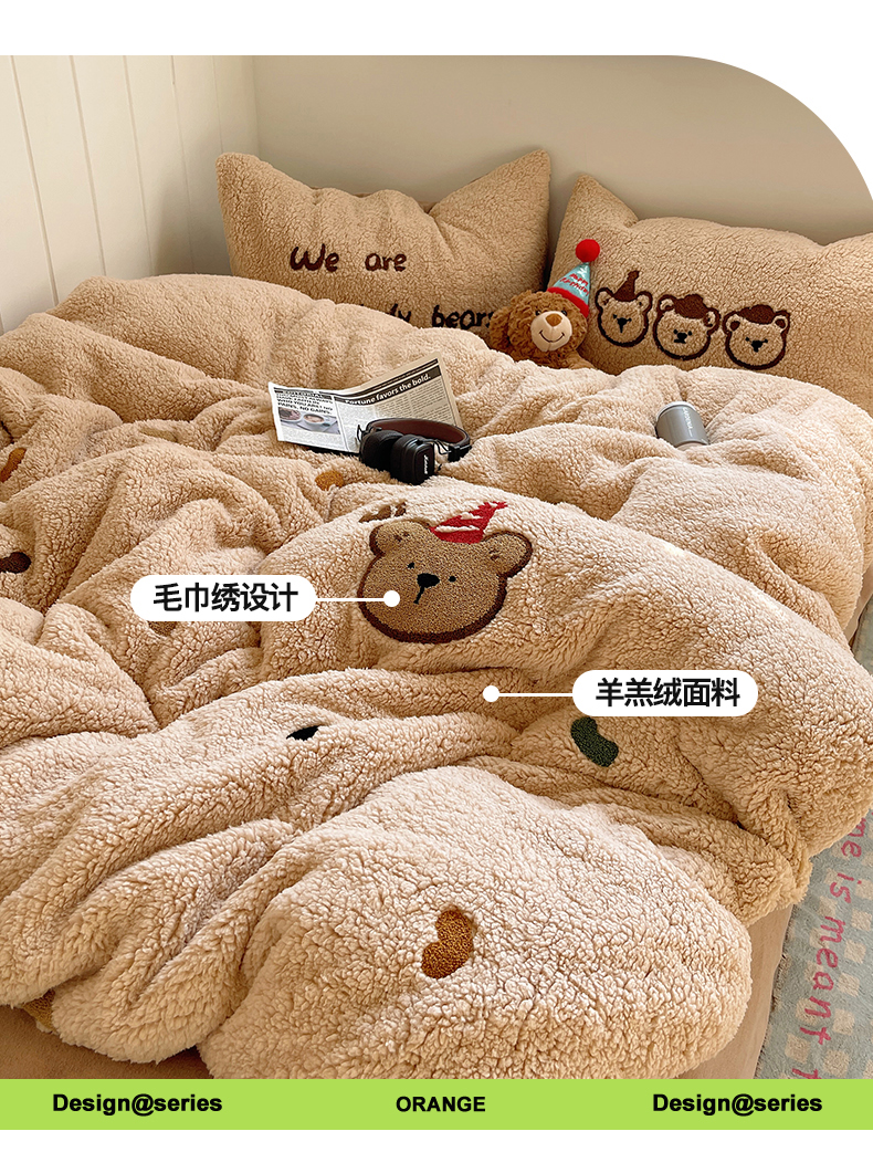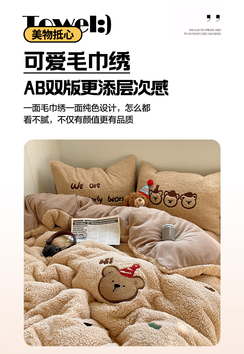 商品名称:(总)轻奢坊 2025新款软糯可爱ins韩风羊羔绒毛巾绣四件套