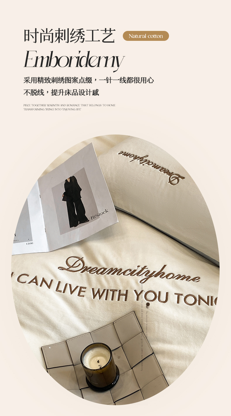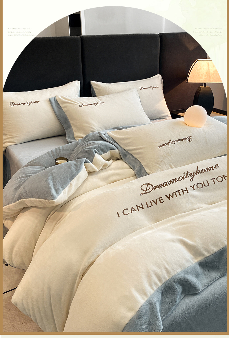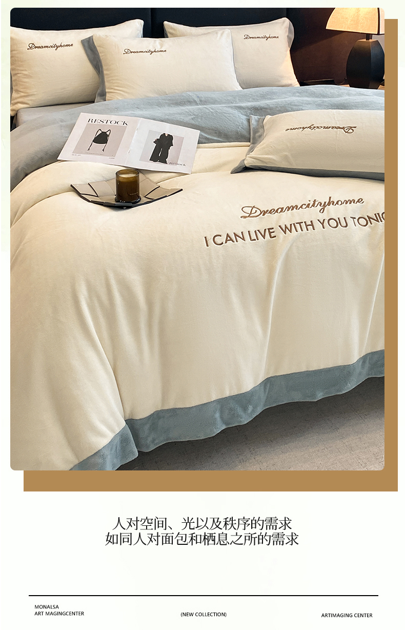 当前位置: 91家纺网 > 商品网购 > 床品套件 > 四件套 > 牛奶绒四件套 > 梦幻之城 2025新款牛奶绒刺绣四件套-安克斯绒B款 安克斯绒-奶芋色+星辰灰