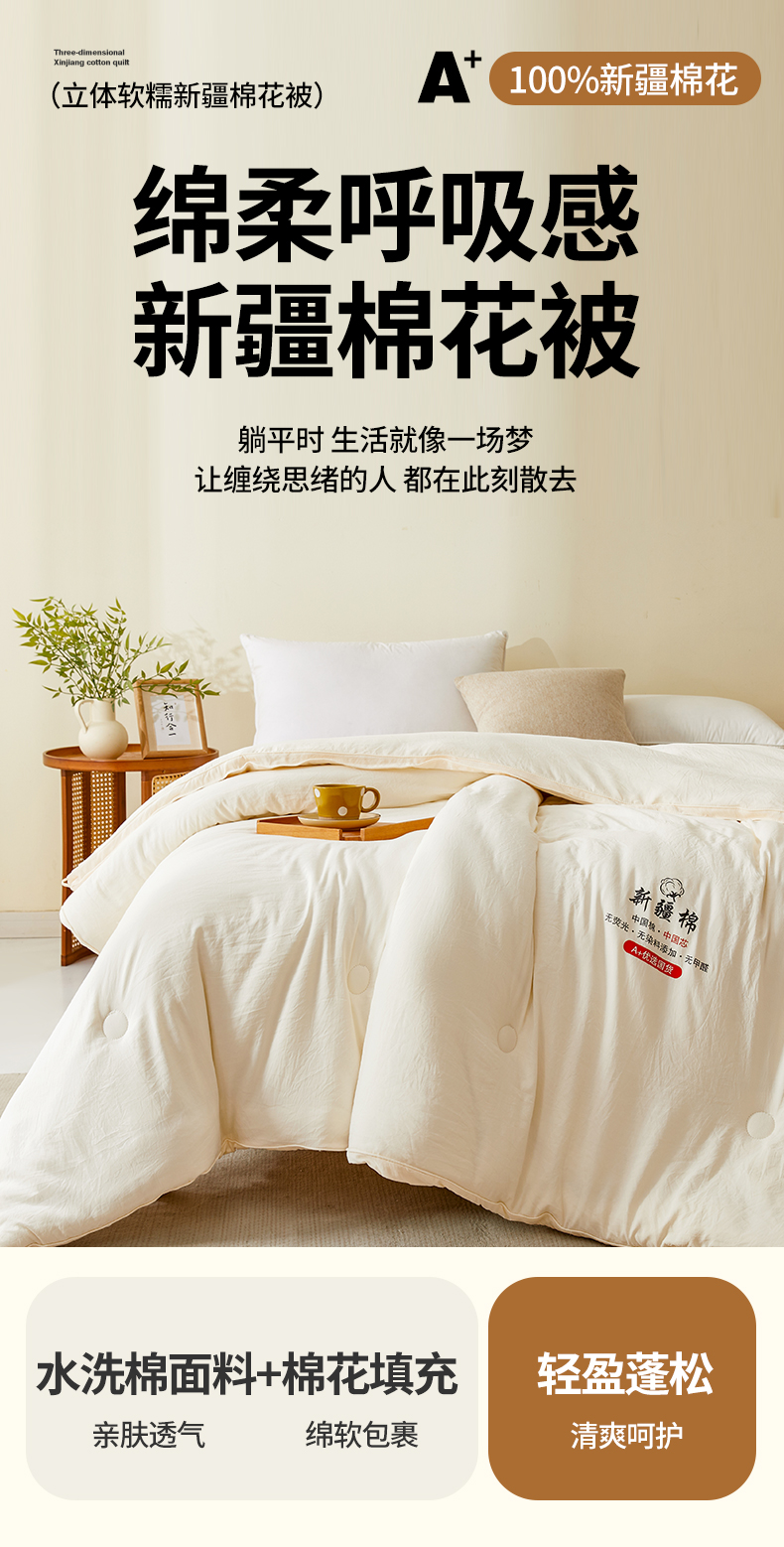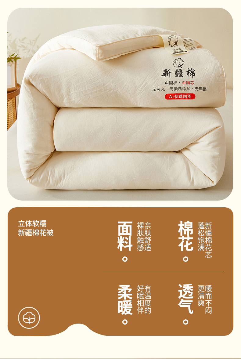 • 91家纺网 家纺一手货源 找家纺 逸居家纺 2025新款A类立体新疆棉花被子被芯 立体棉花被 奶昔白