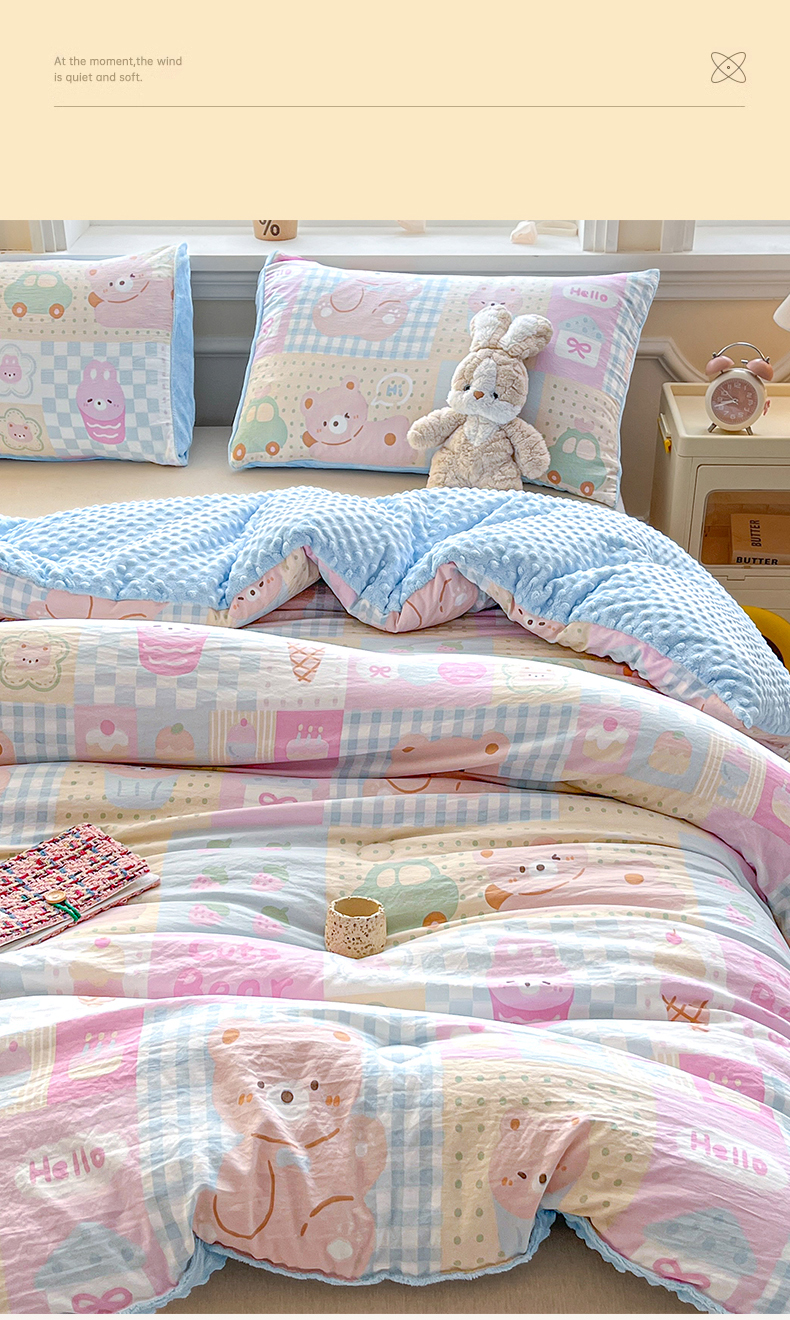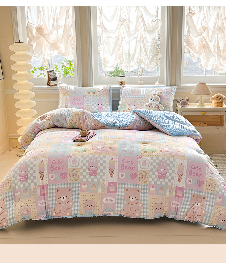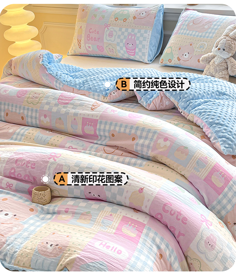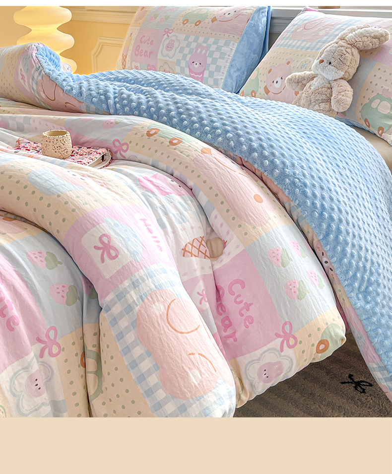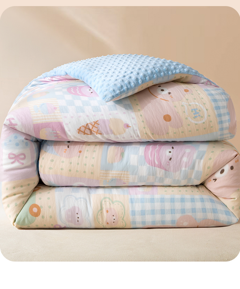 • 91家纺网 家纺一手货源 找家纺 盛秋家纺 2025新款A类水洗棉水晶绒豆豆被被子被芯 萌宠乐园+水蓝