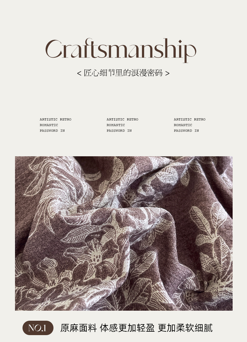商品名称:丝芙妮家居(原乐视家纺) 2025新款A类原麻复合印花花边四件套 浅影摇