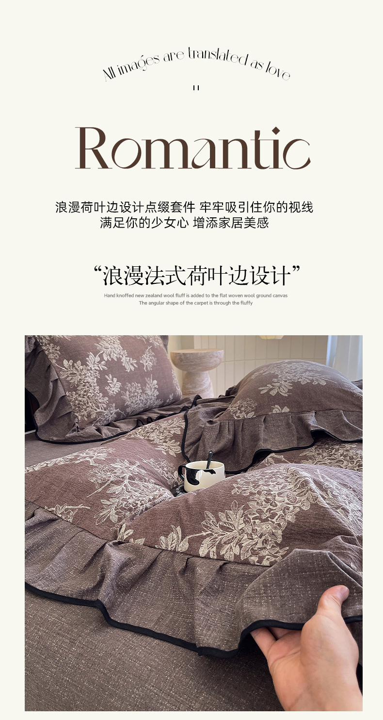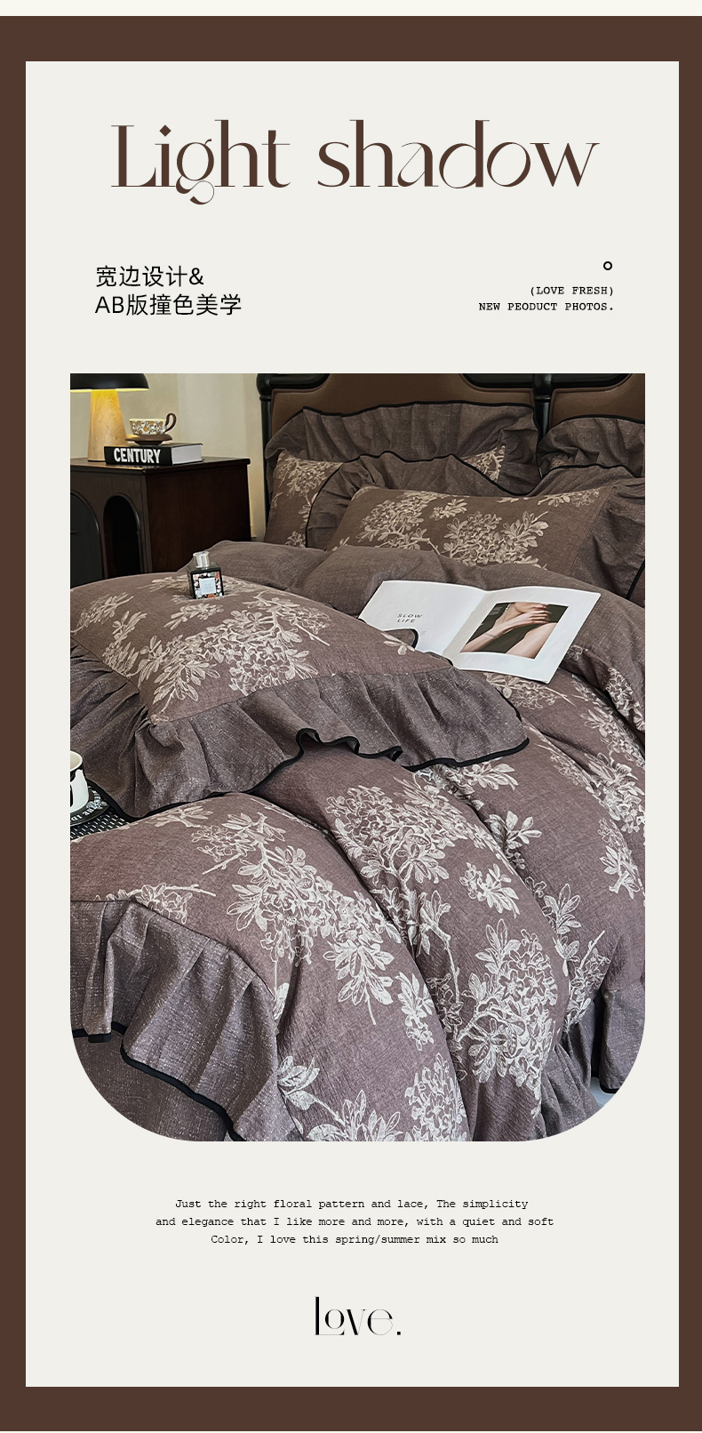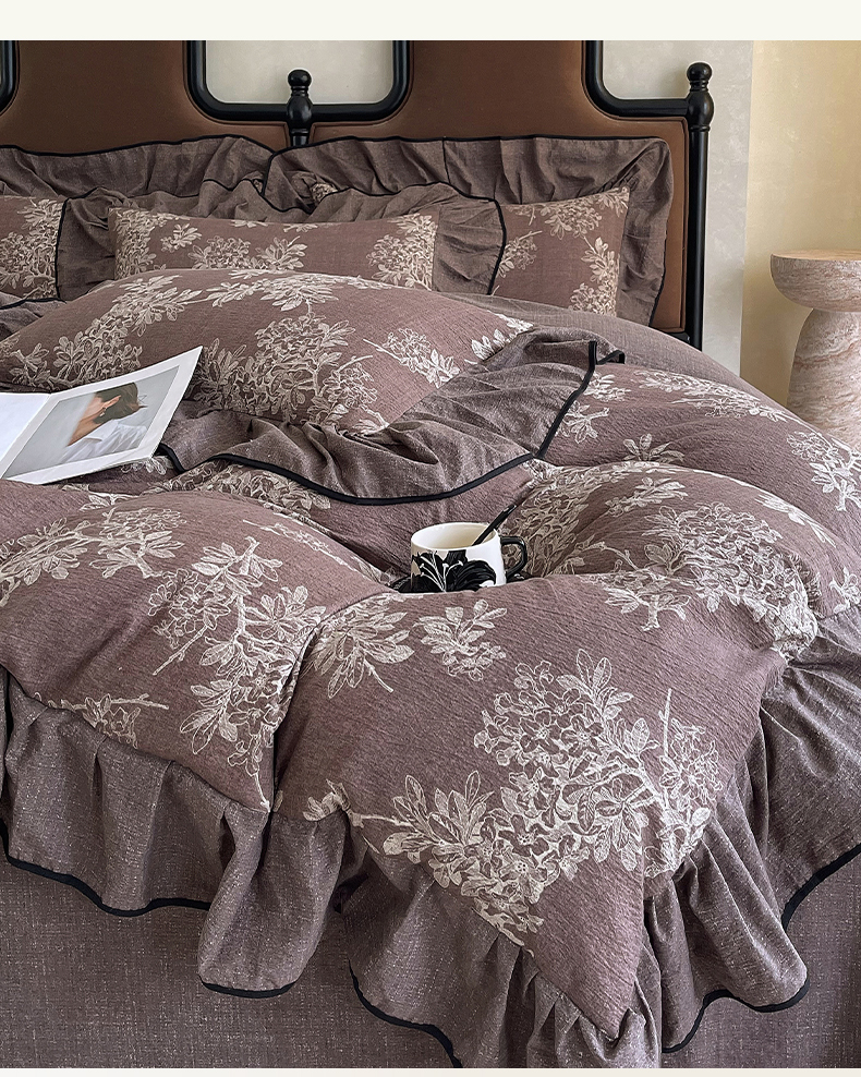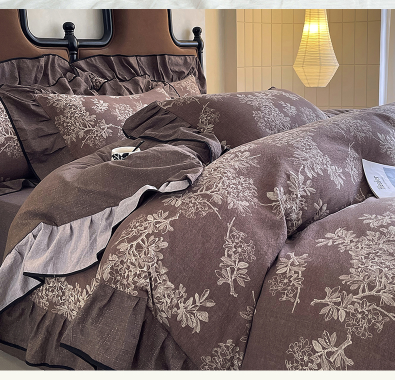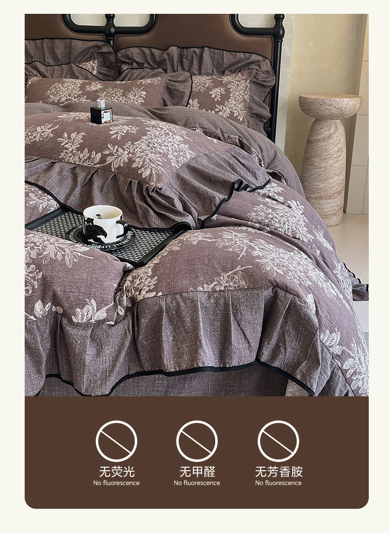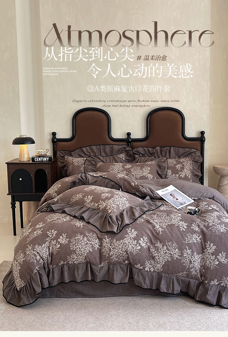 丝芙妮家居(原乐视家纺) 2025新款A类原麻复合印花花边四件套 浅影摇