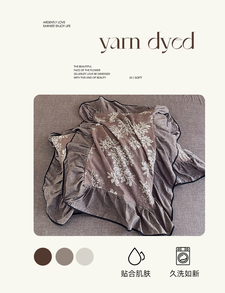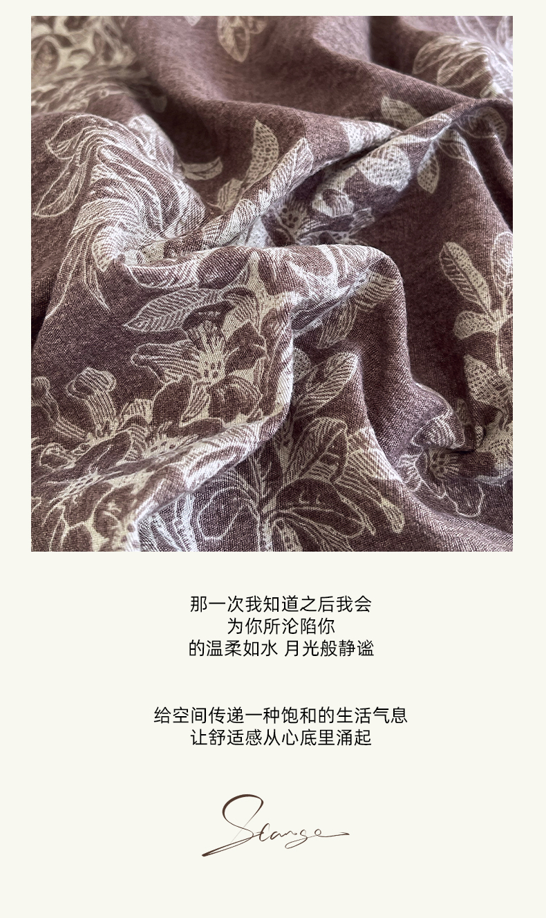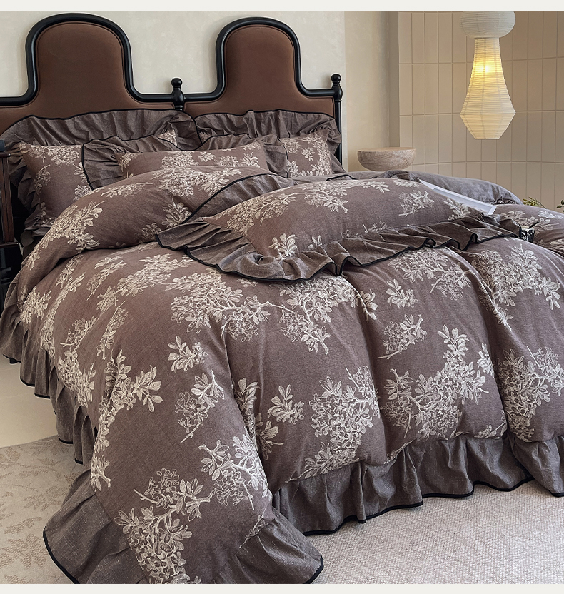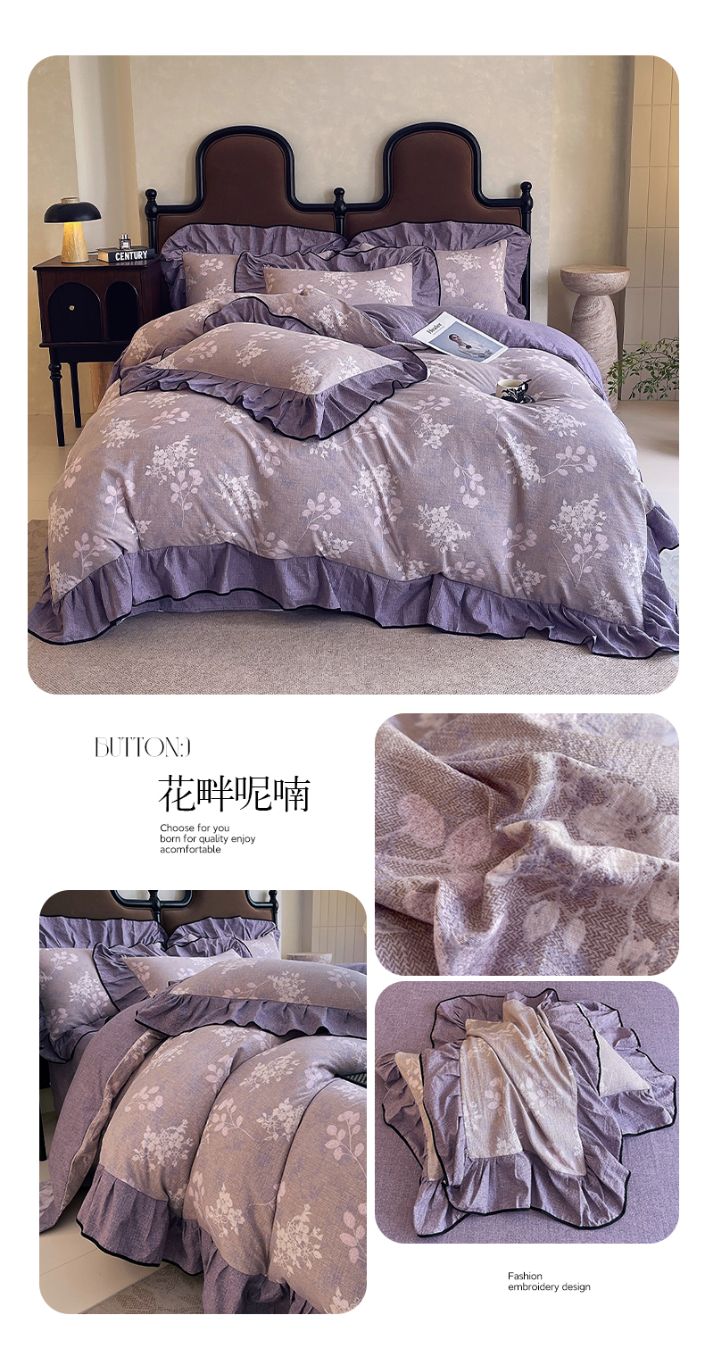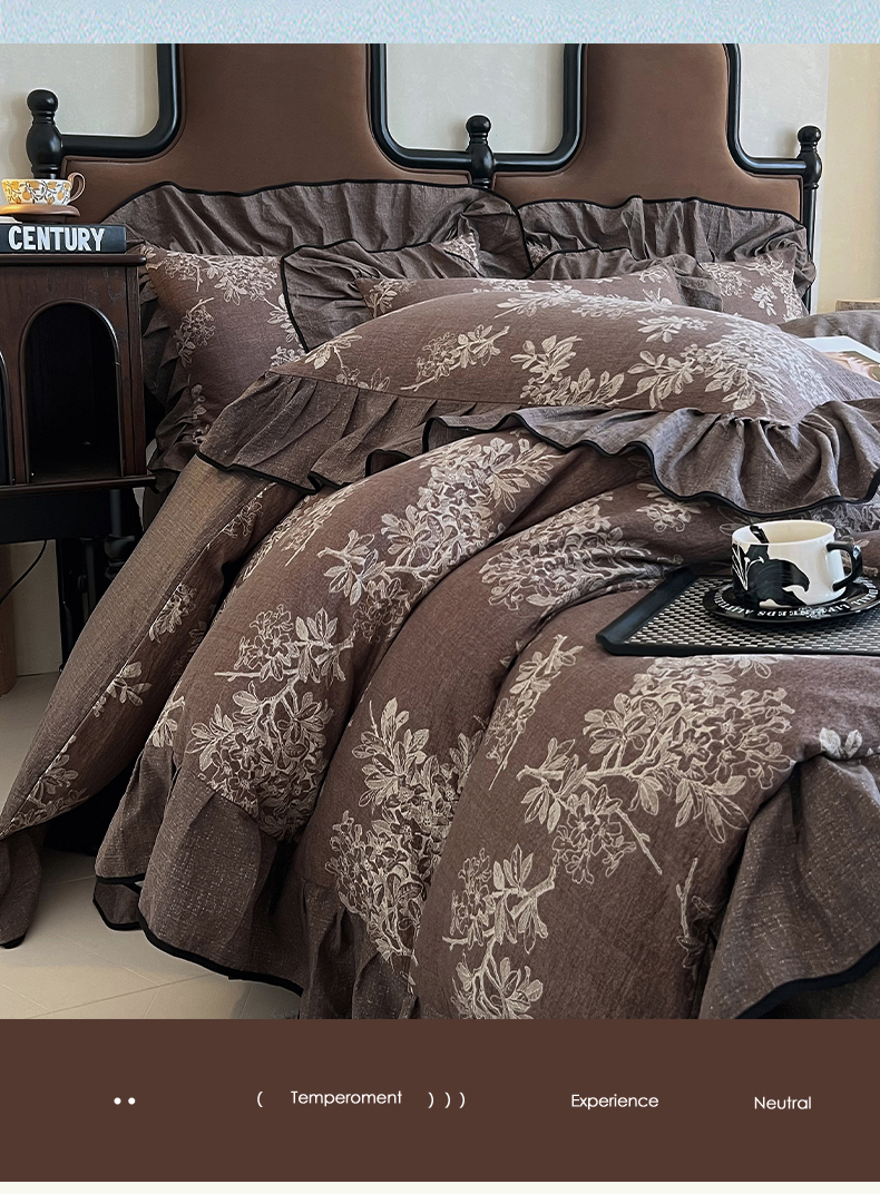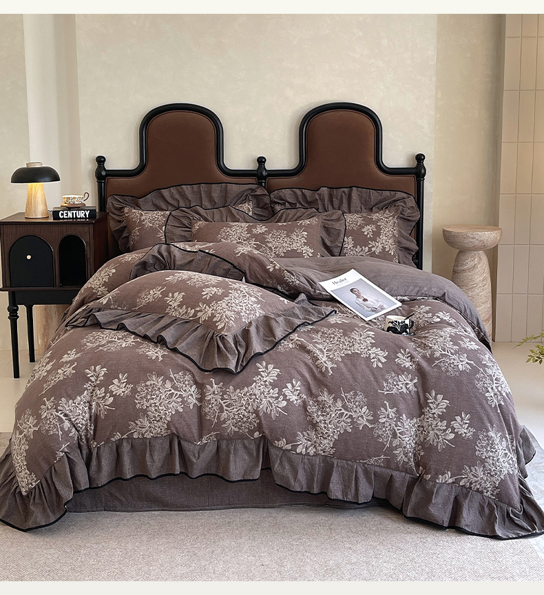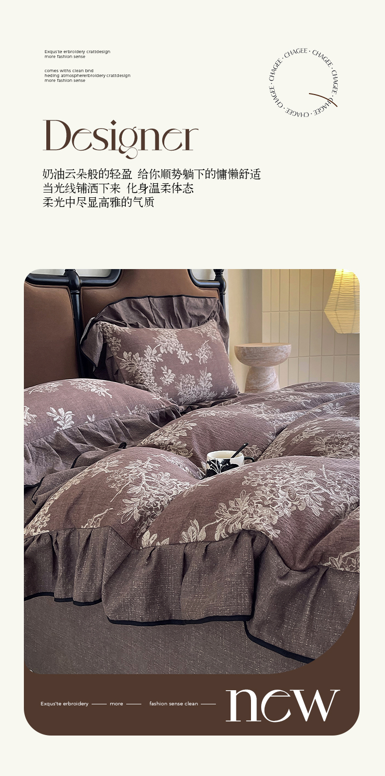 丝芙妮家居(原乐视家纺) 2025新款A类原麻复合印花花边四件套 浅影摇