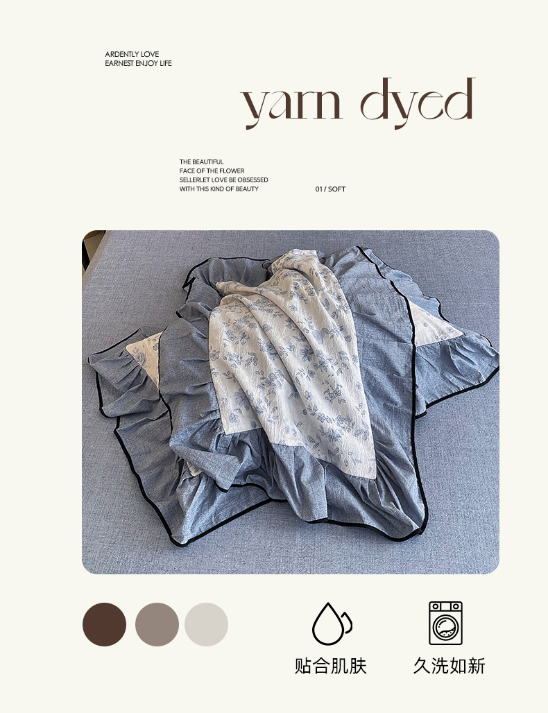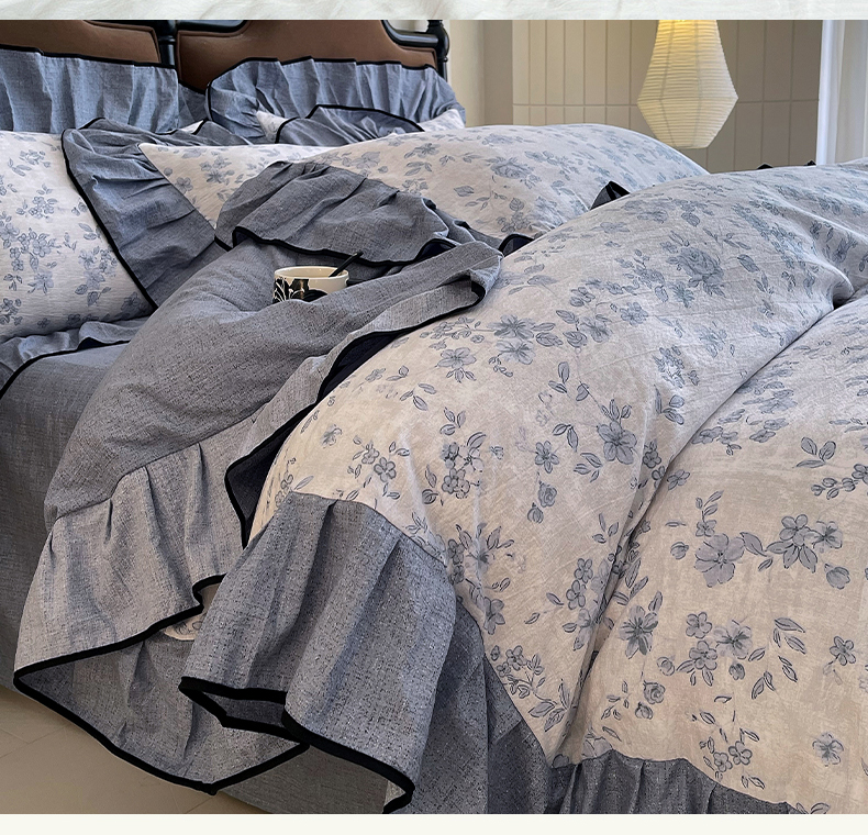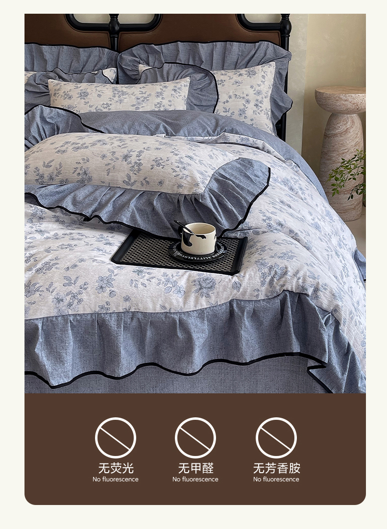丝芙妮家居(原乐视家纺) 2025新款A类原麻复合印花花边四件套 庄生晓梦