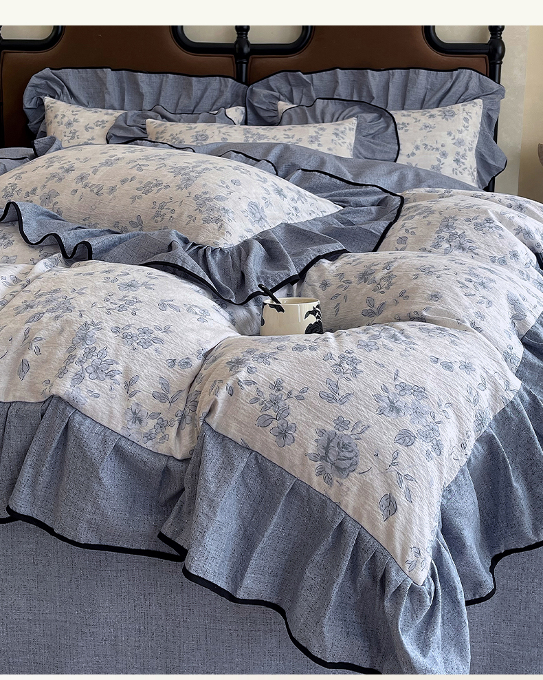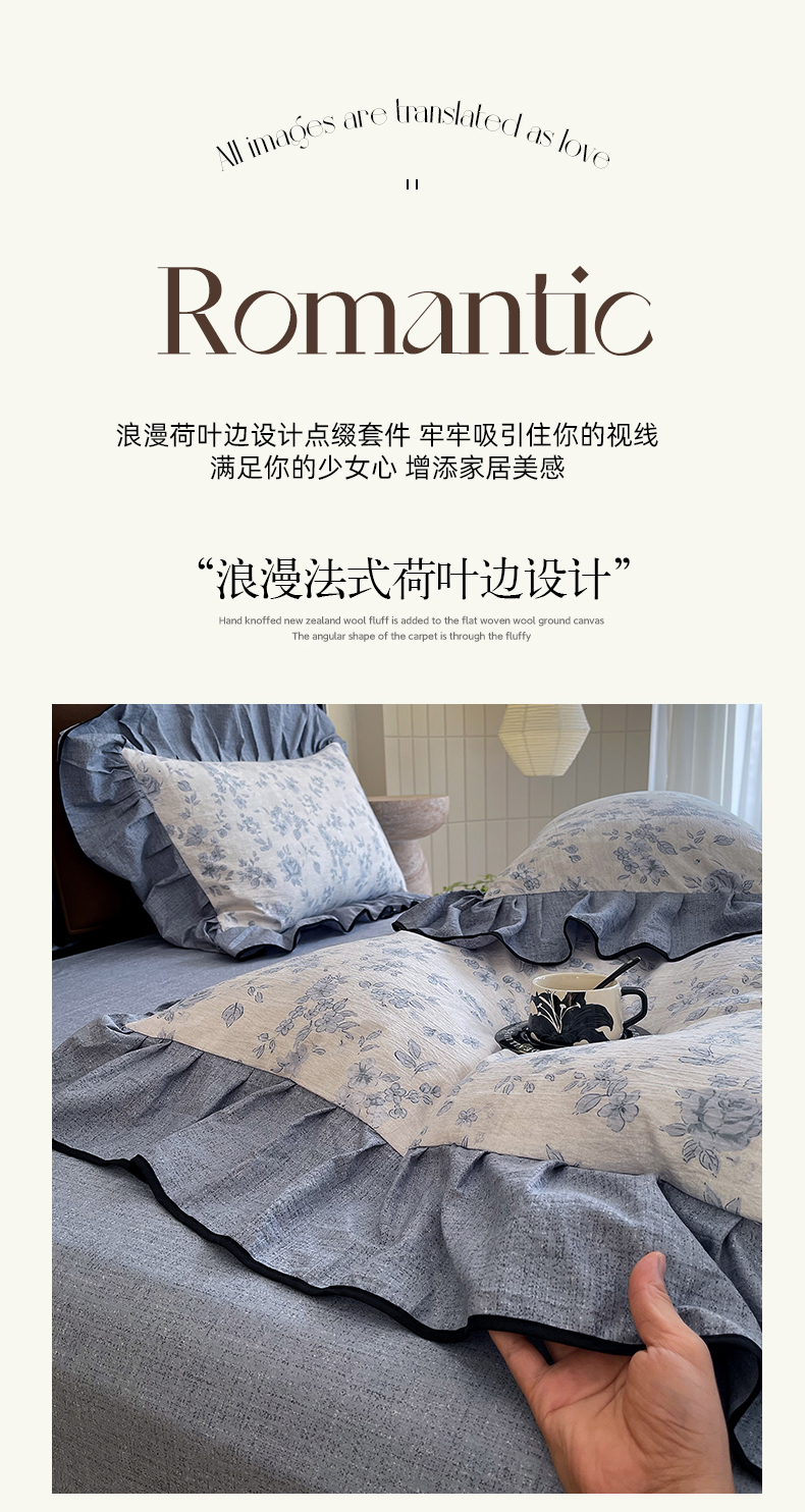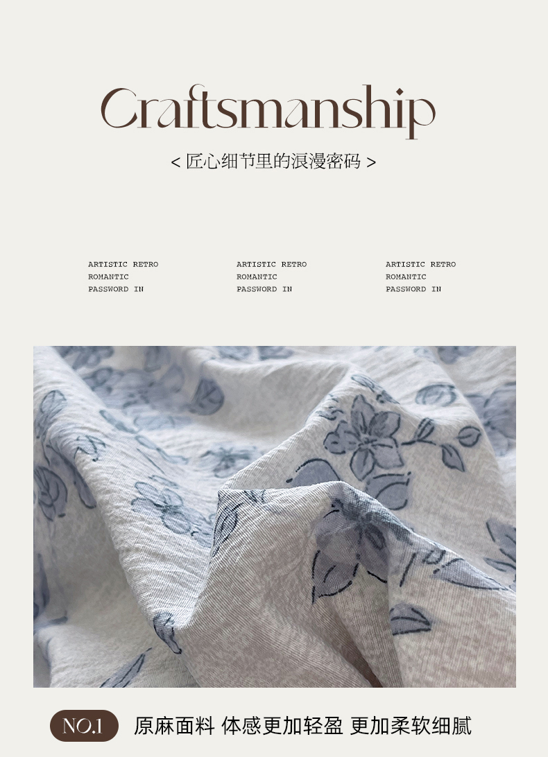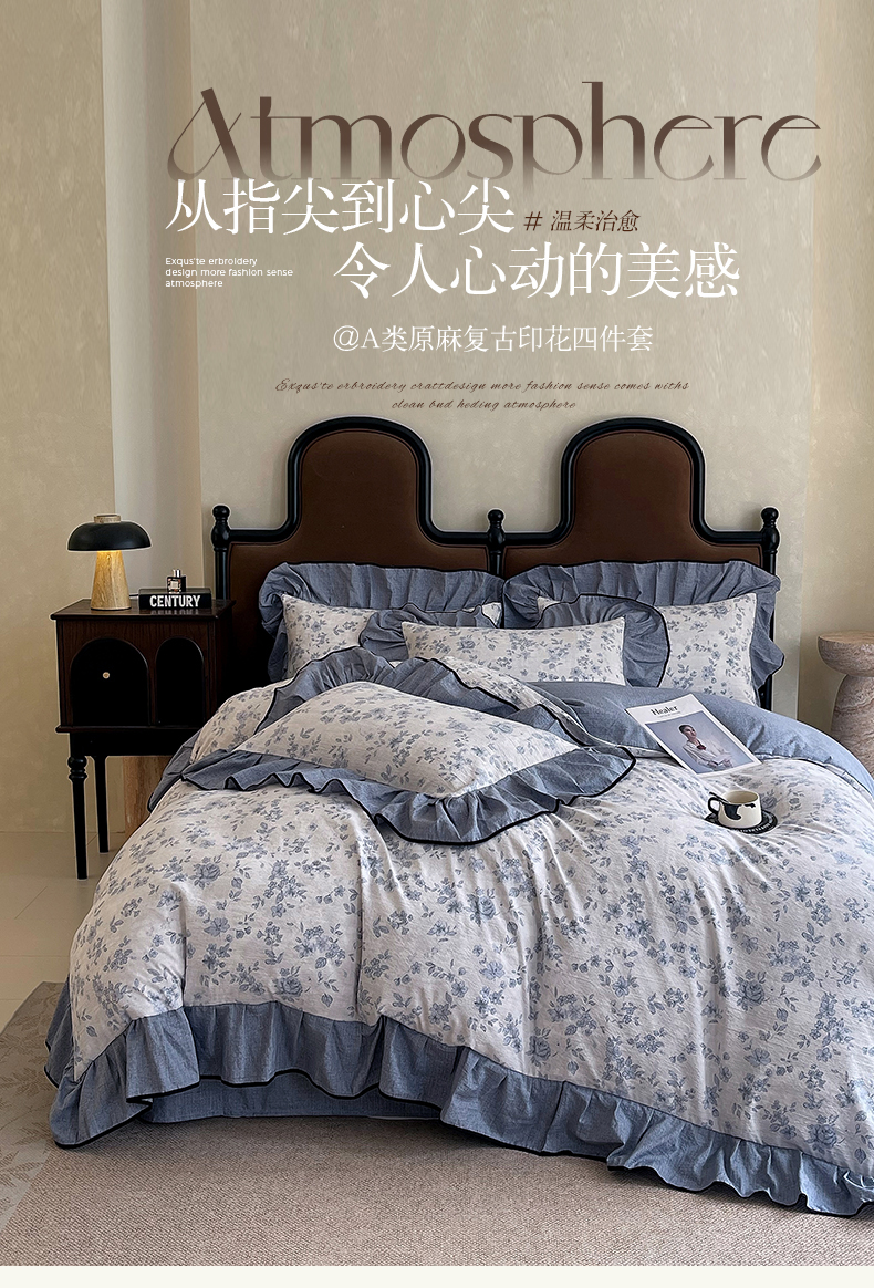 商品名称:丝芙妮家居(原乐视家纺) 2025新款A类原麻复合印花花边四件套 庄生晓梦