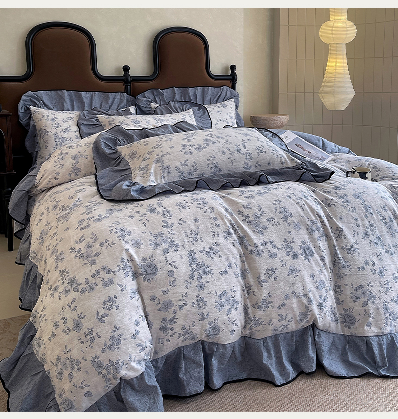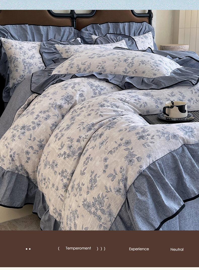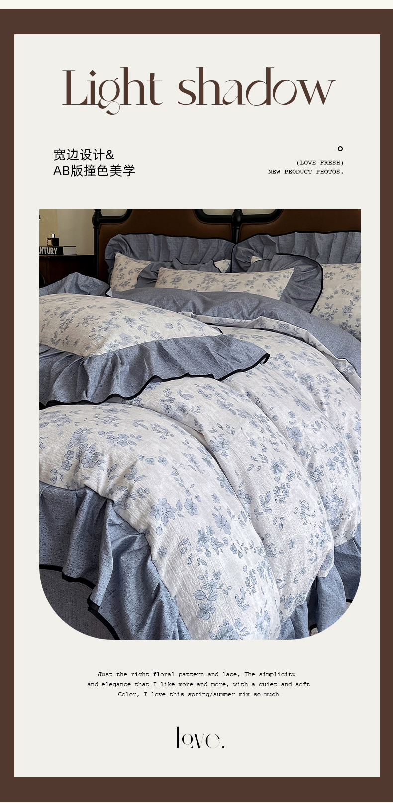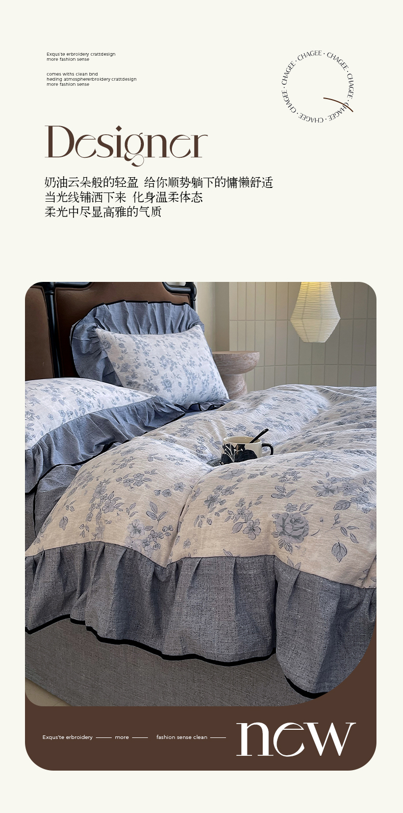 商品名称:丝芙妮家居(原乐视家纺) 2025新款A类原麻复合印花花边四件套 庄生晓梦