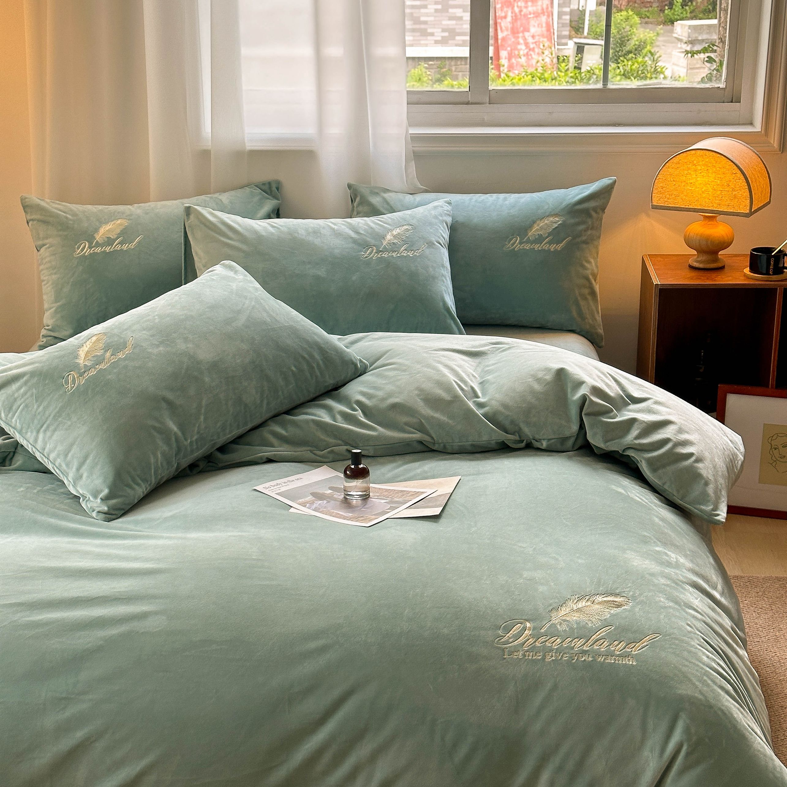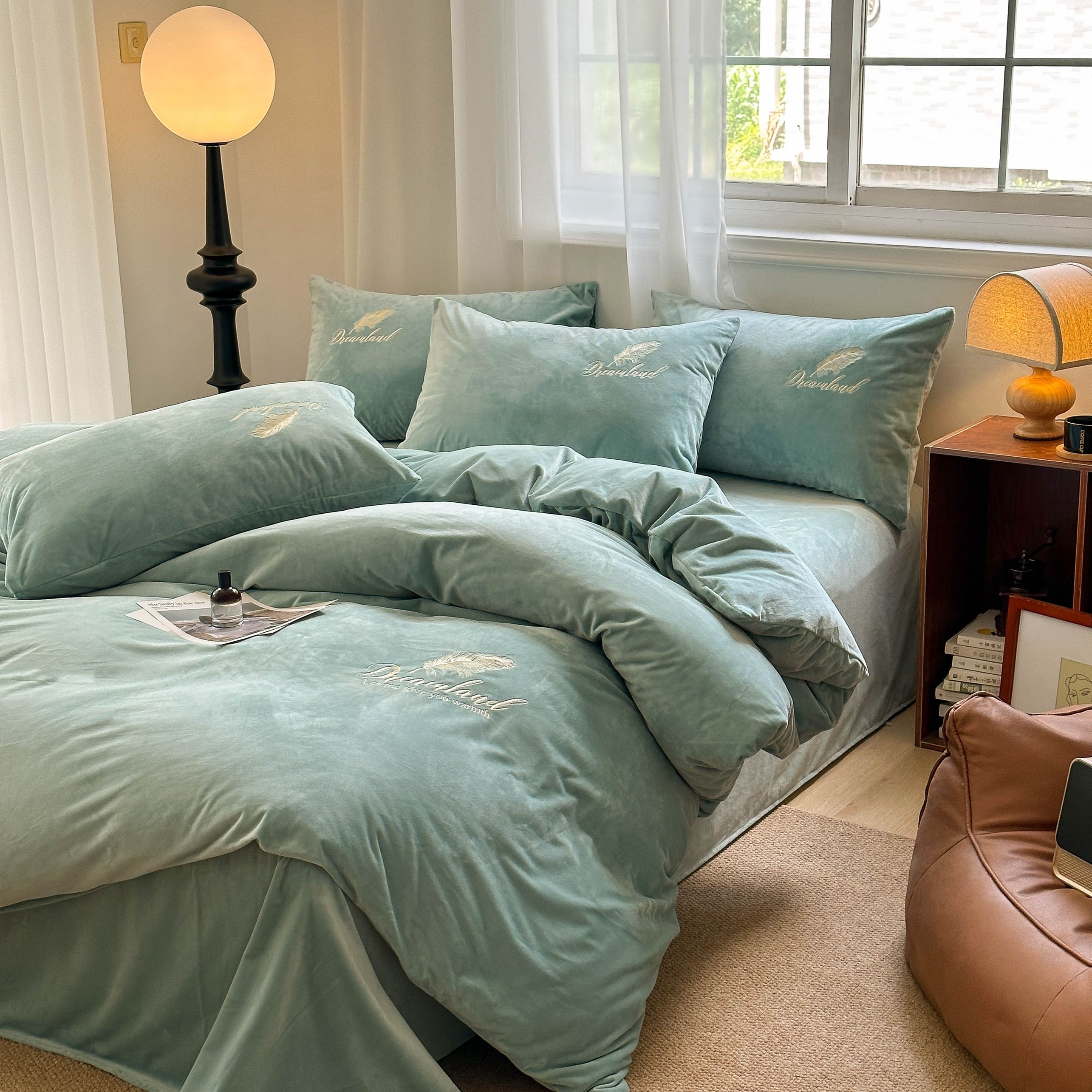 当前位置: 91家纺网 > 商品网购 > 床品套件 > 四件套 > 牛奶绒四件套 > 爱彼家纺 2025新款牛奶绒刺绣四件套--羽毛系列-风格一 羽毛-浅水绿