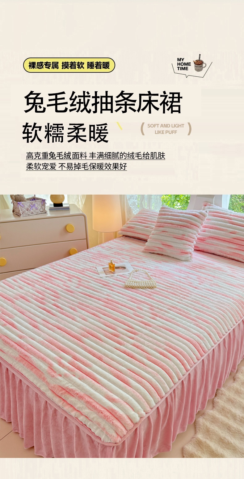 • 91家纺网 家纺一手货源 找家纺 圣比熊 2025新款兔毛绒床裙法兰绒床垫保护罩牛奶绒床垫法莱绒床单罩-抽条 兔毛绒抽条-梦幻樱粉