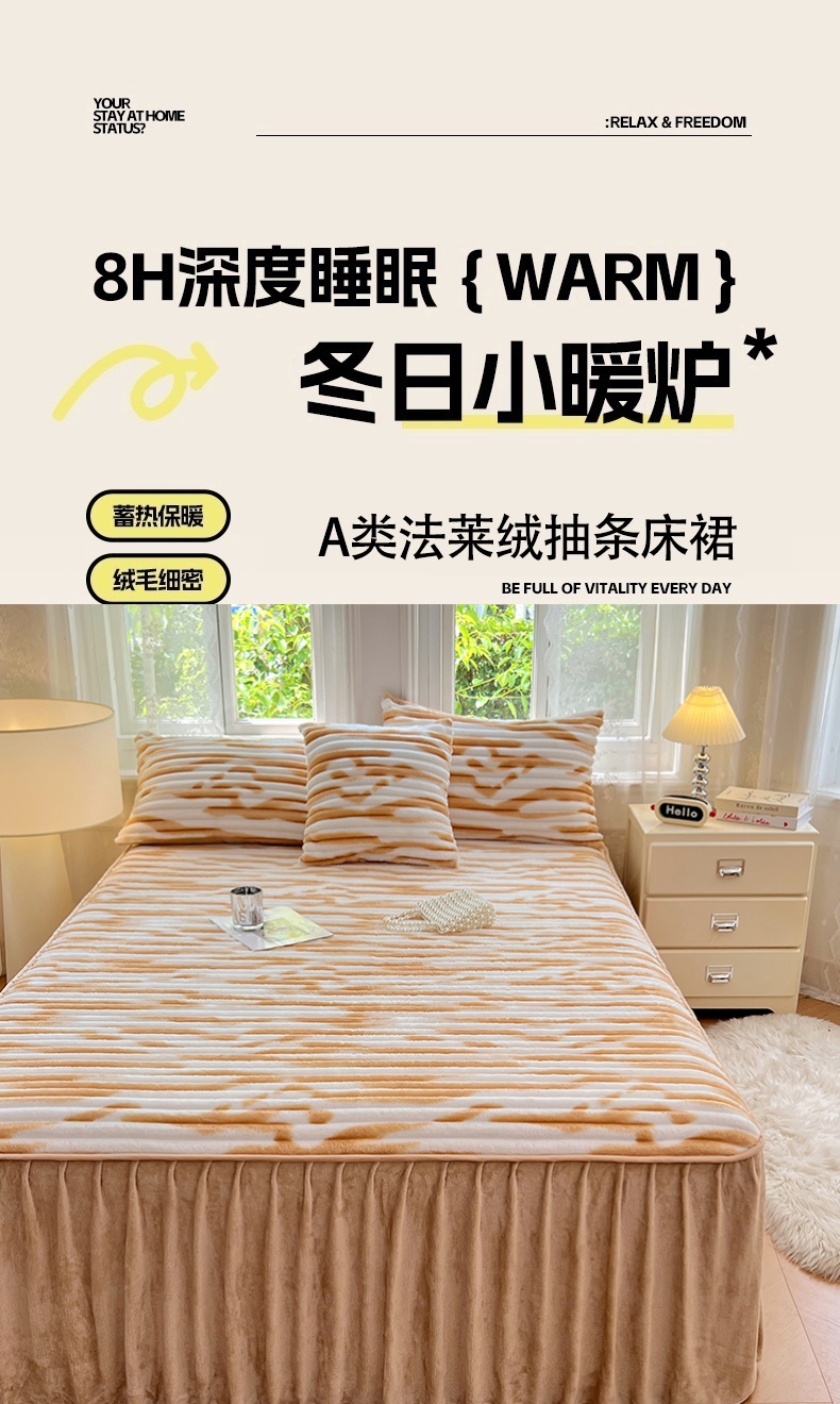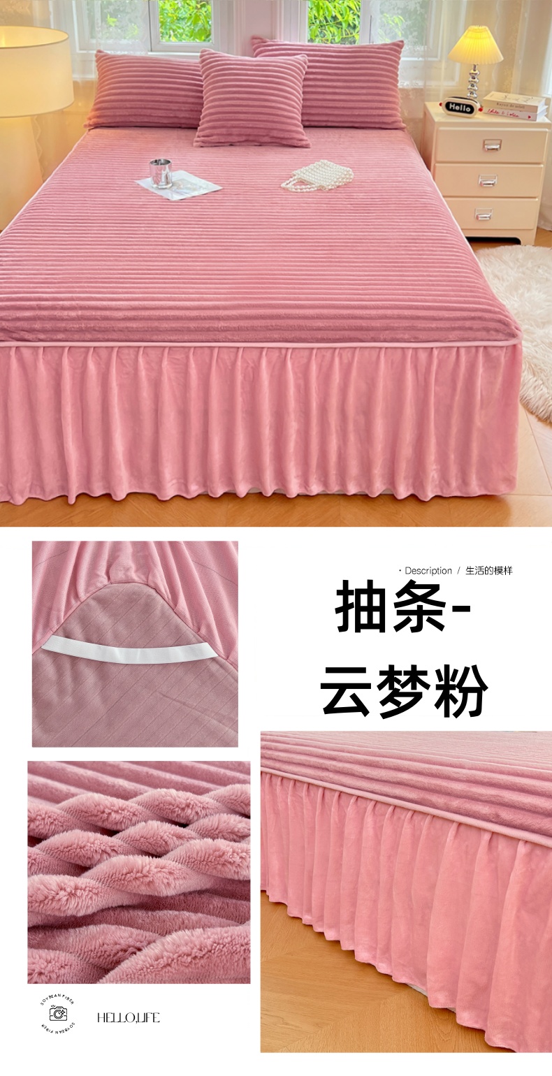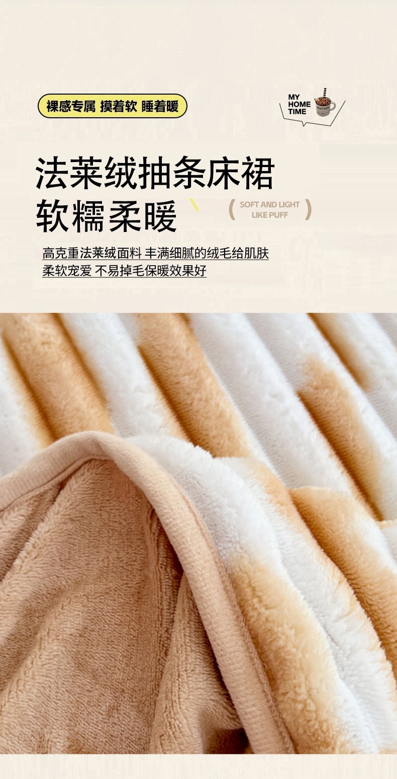 • 91家纺网 家纺一手货源 找家纺 梦舒羽 2025新款法莱绒床裙法兰绒床垫保护罩牛奶绒兔毛绒床垫床单罩-抽条 法莱绒抽条-梦幻奶咖