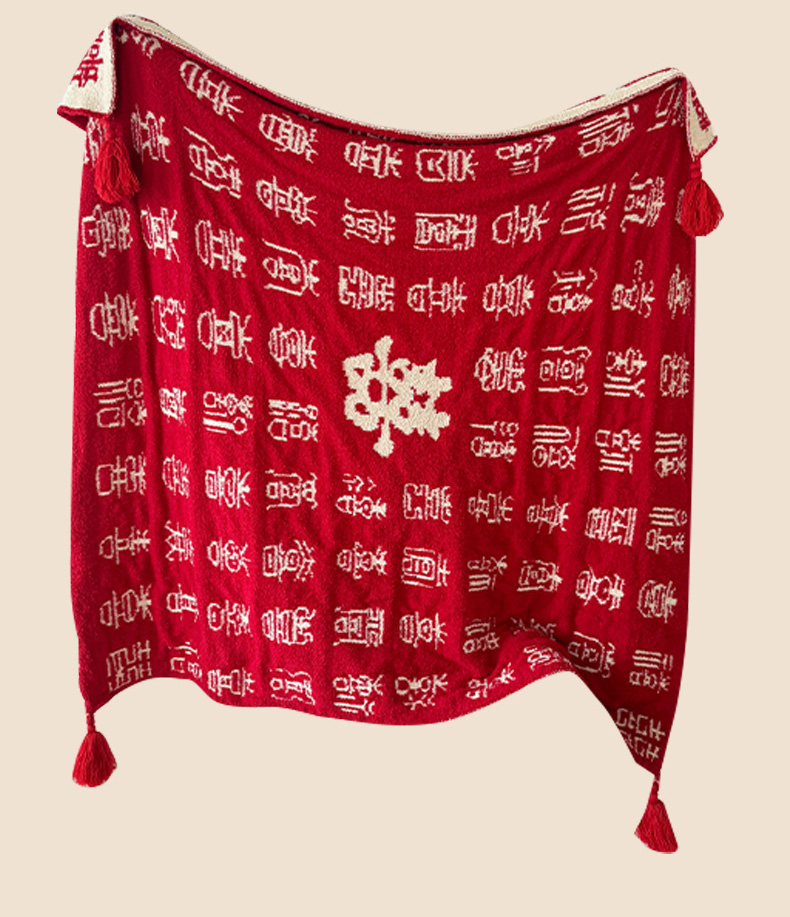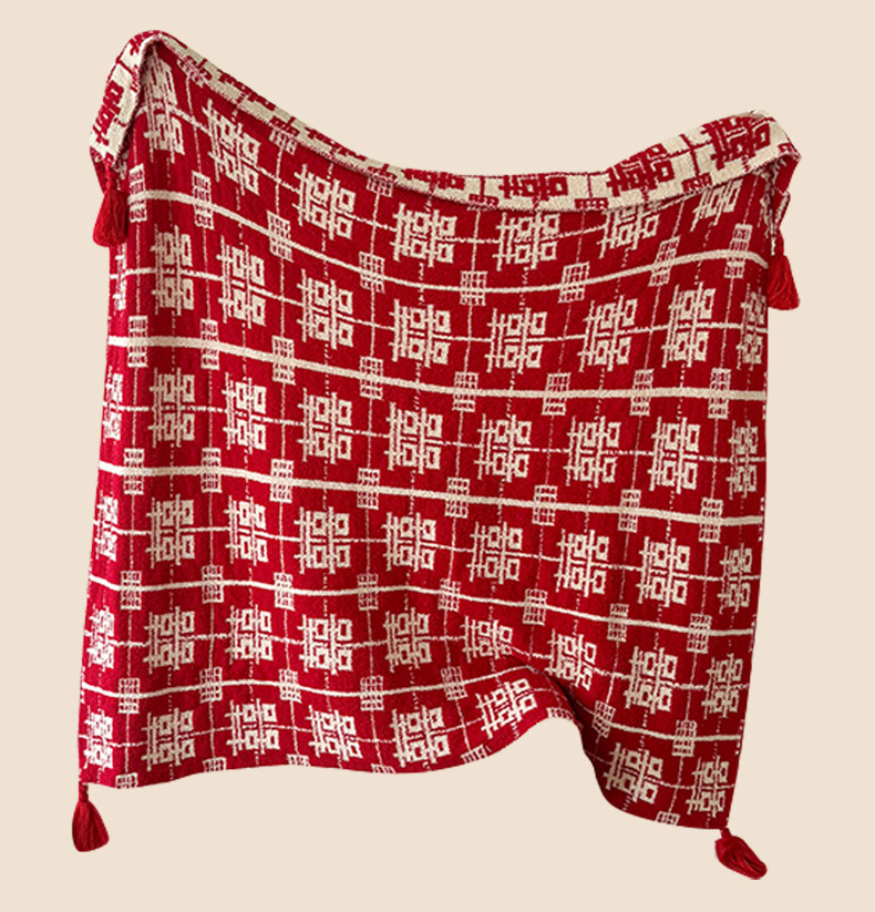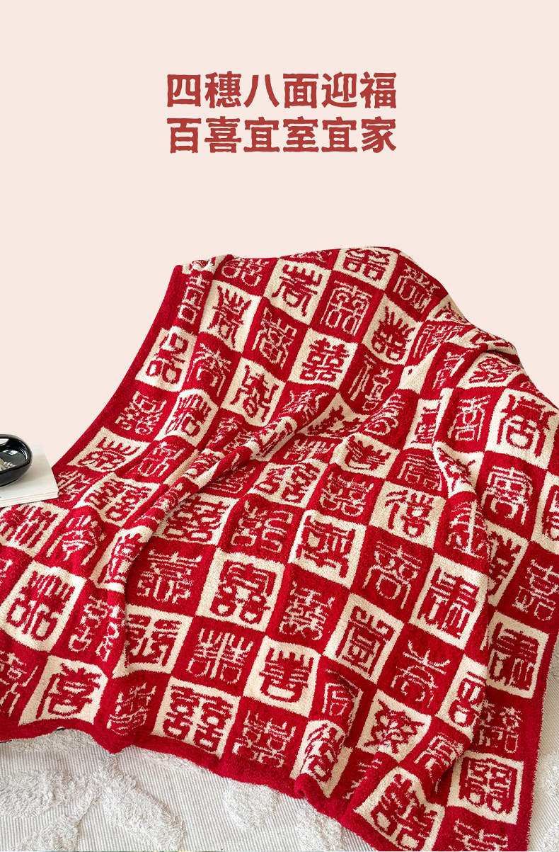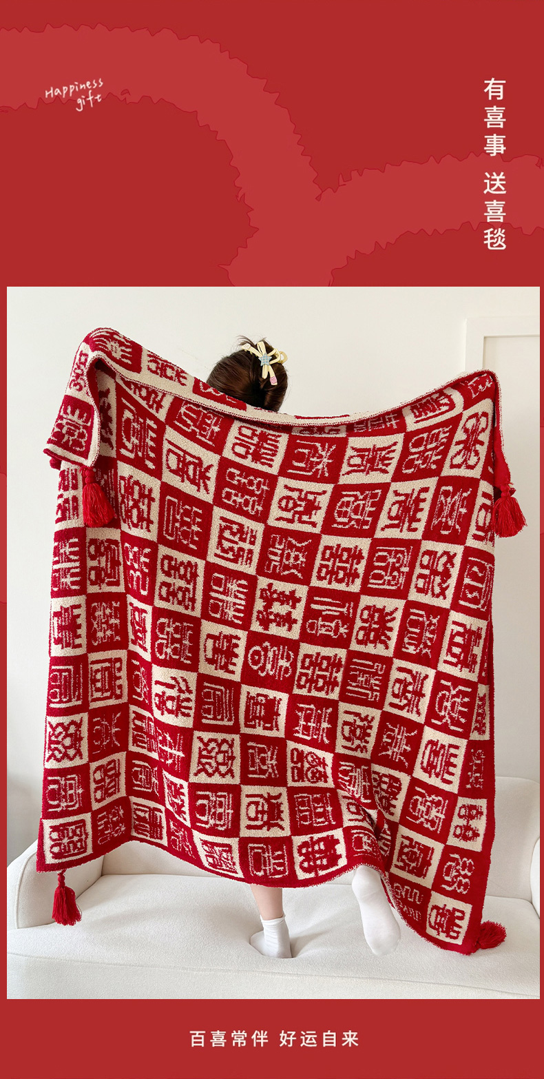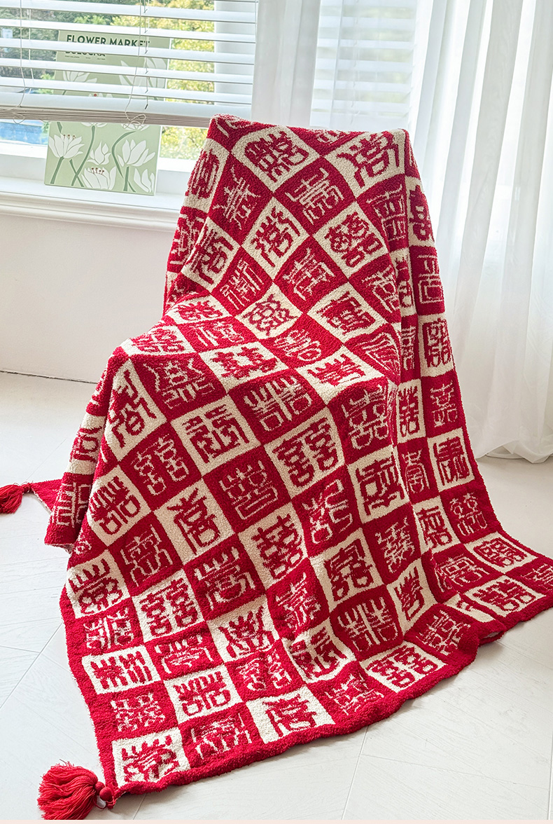 商品名称:(总)丹本家纺 2025新款A类结婚订婚红双喜半边绒流苏吊坠毛毯绒毯盖毯手工针织毯