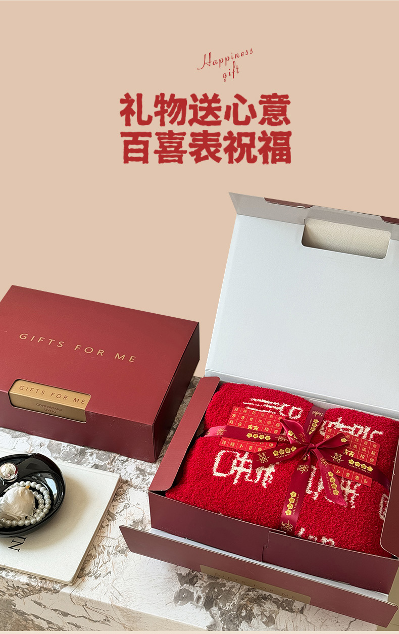 (总)丹本家纺 2025新款红双囍玫瑰花花束毯子结婚订婚毛毯披肩盖毯,花朵毯红双喜字
