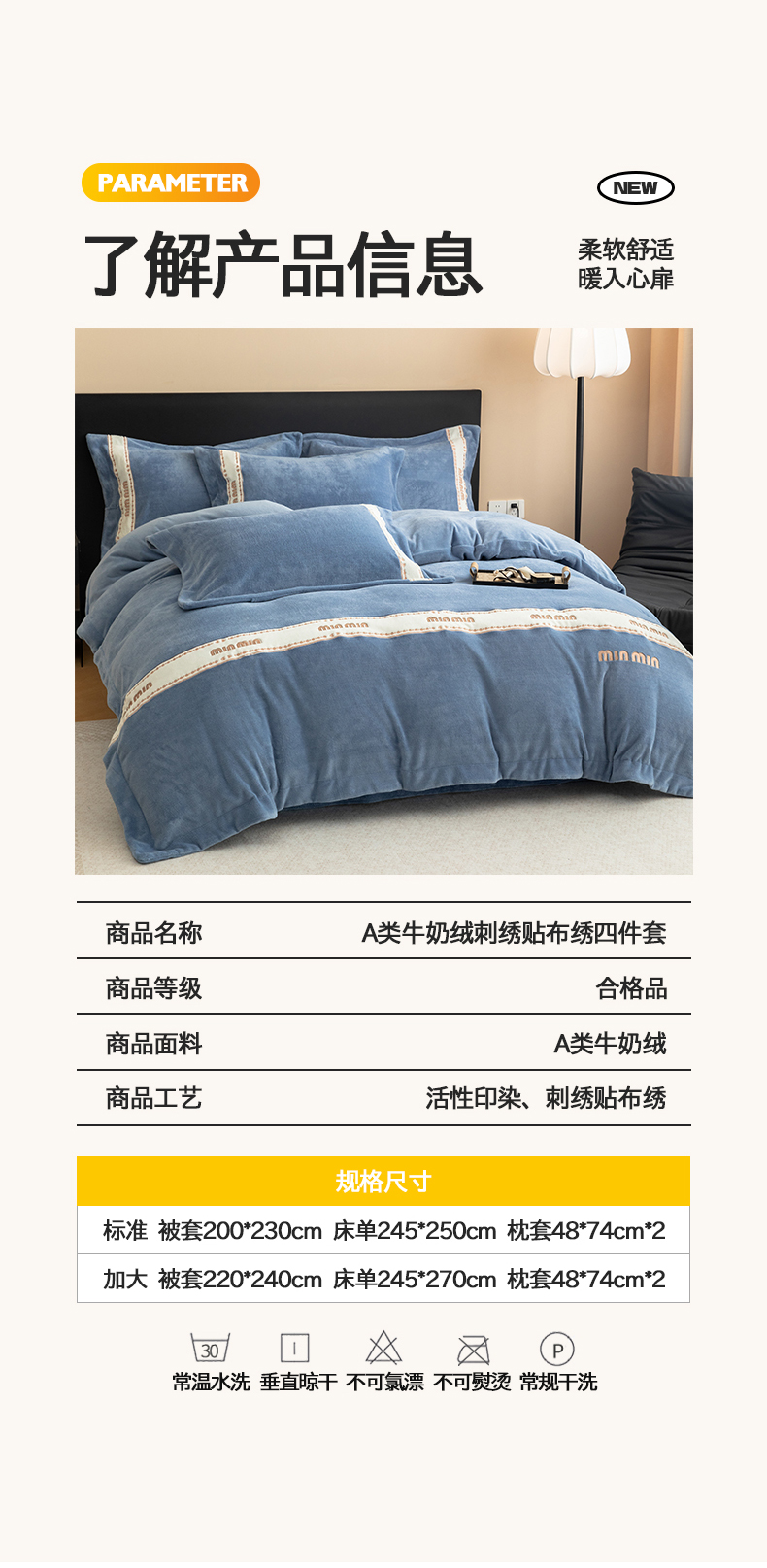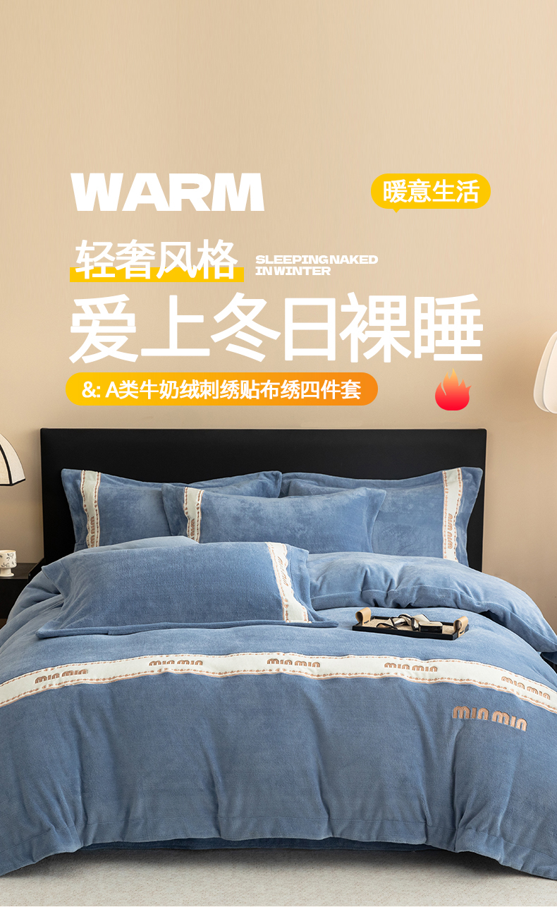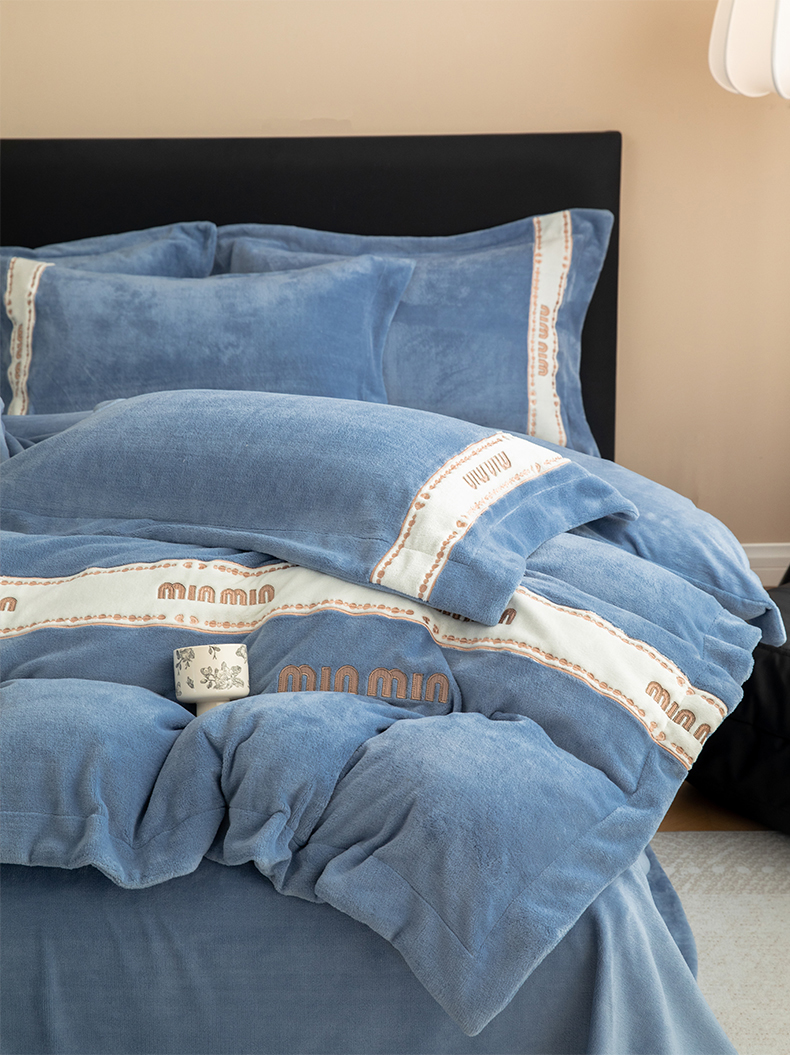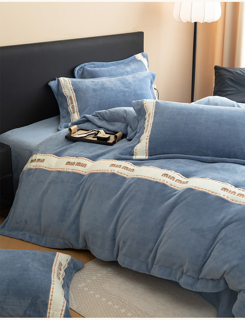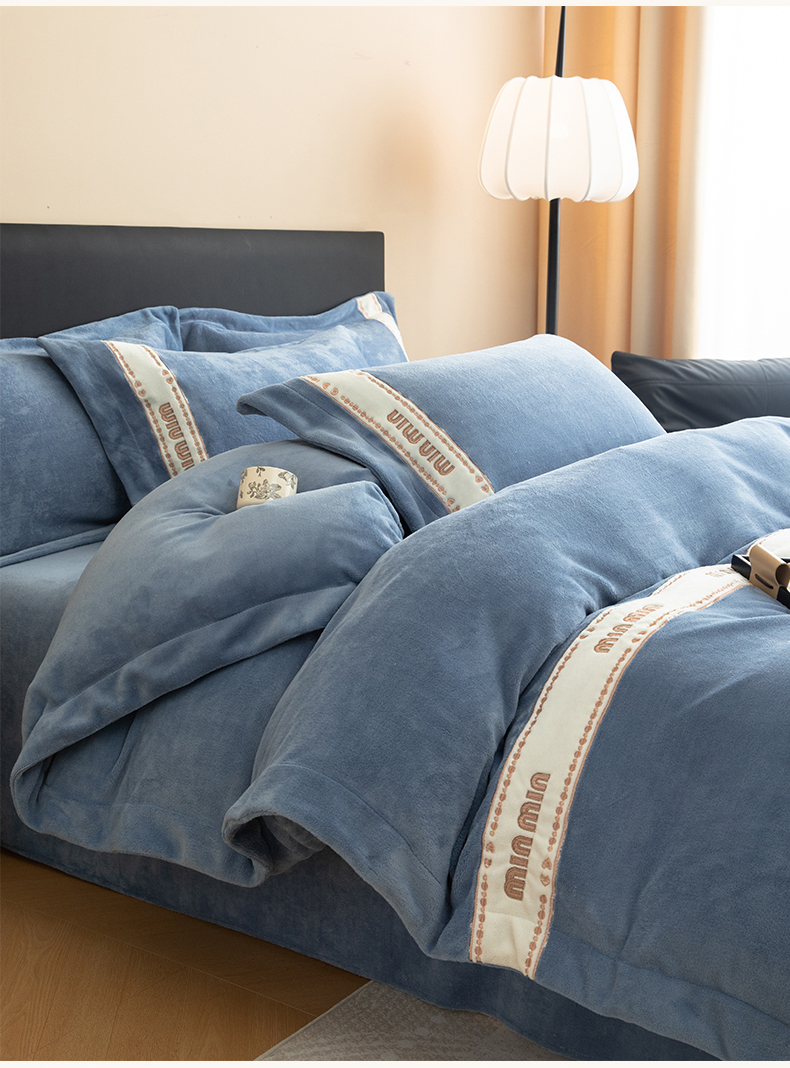 商品名称:懒猫家纺 2025新款刺绣贴布绣牛奶绒四件套-珍妮 珍妮-莫奈蓝