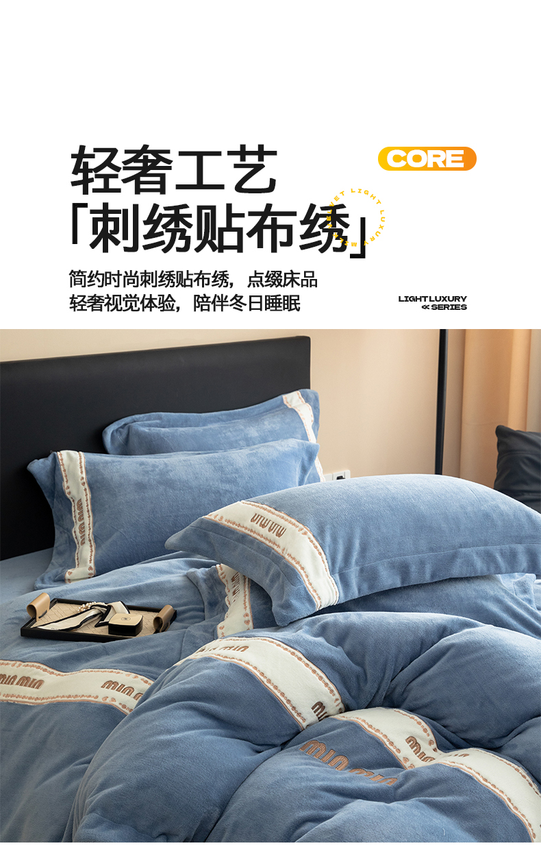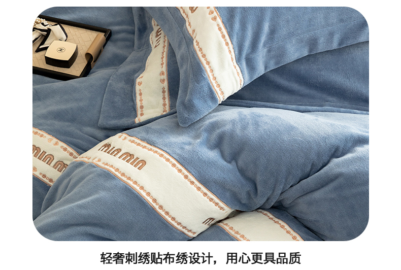 懒猫家纺 2025新款刺绣贴布绣牛奶绒四件套-珍妮 珍妮-莫奈蓝
