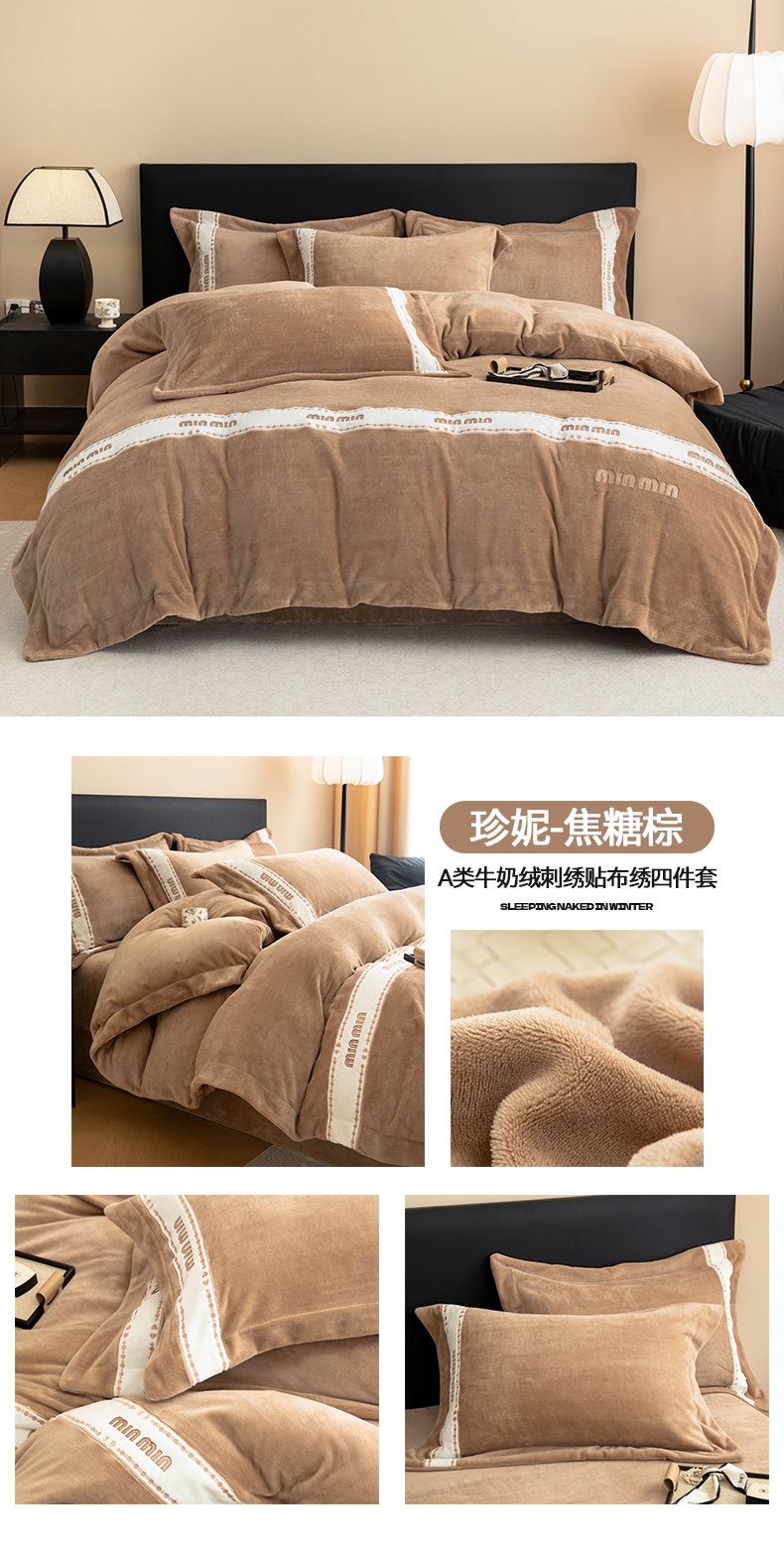 (总)懒猫家纺 2025新款亲肤舒适牛奶绒四件套-可可小姐系列,可可小姐-瓷白,可可小姐-水粉