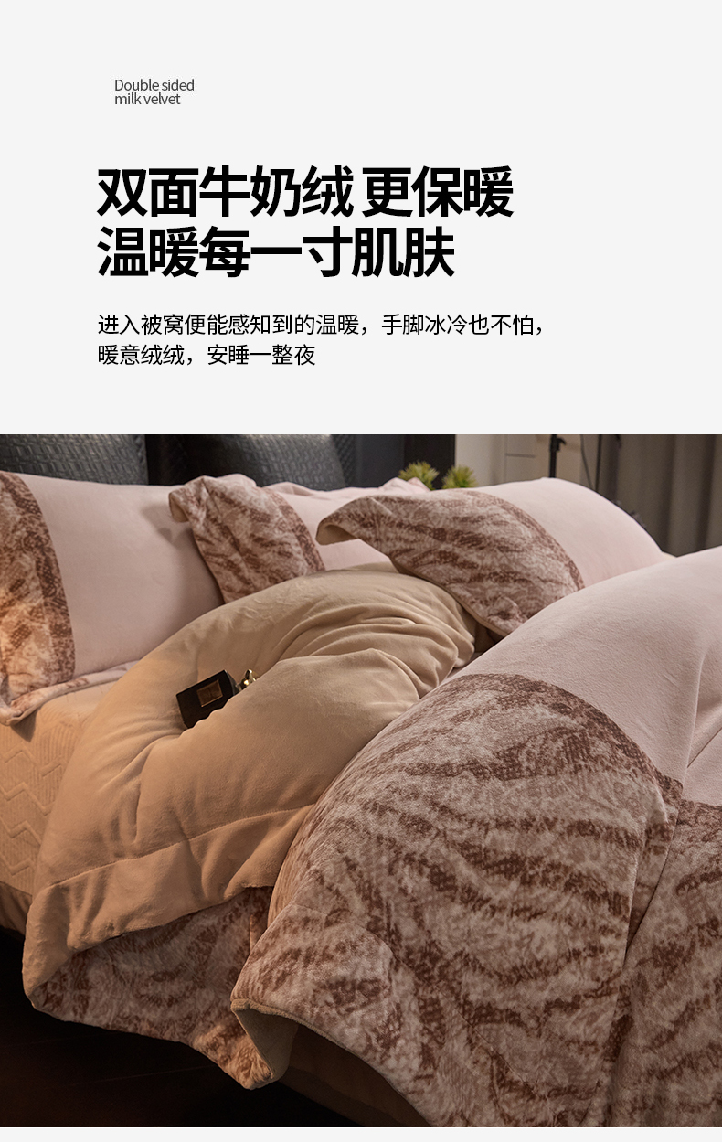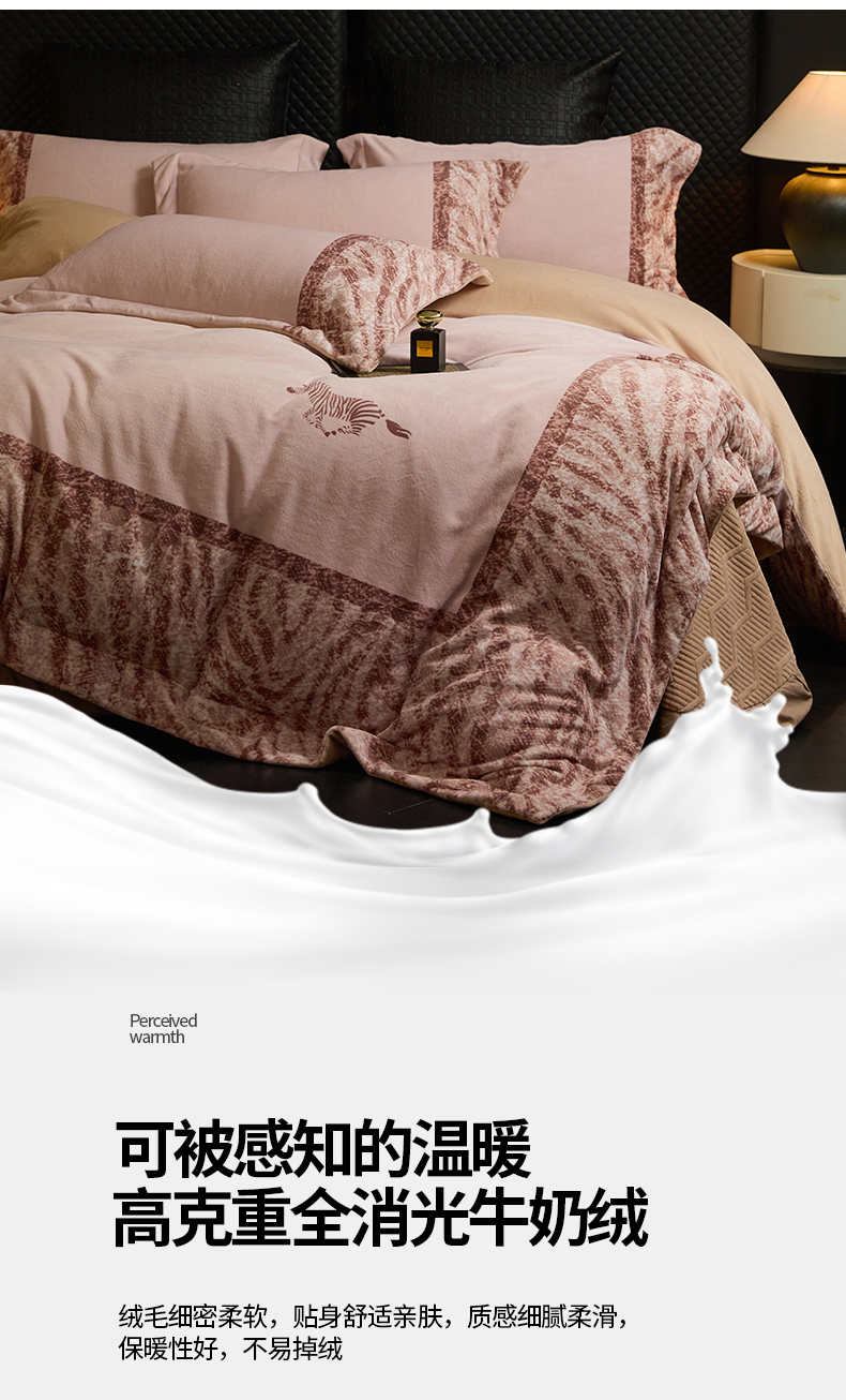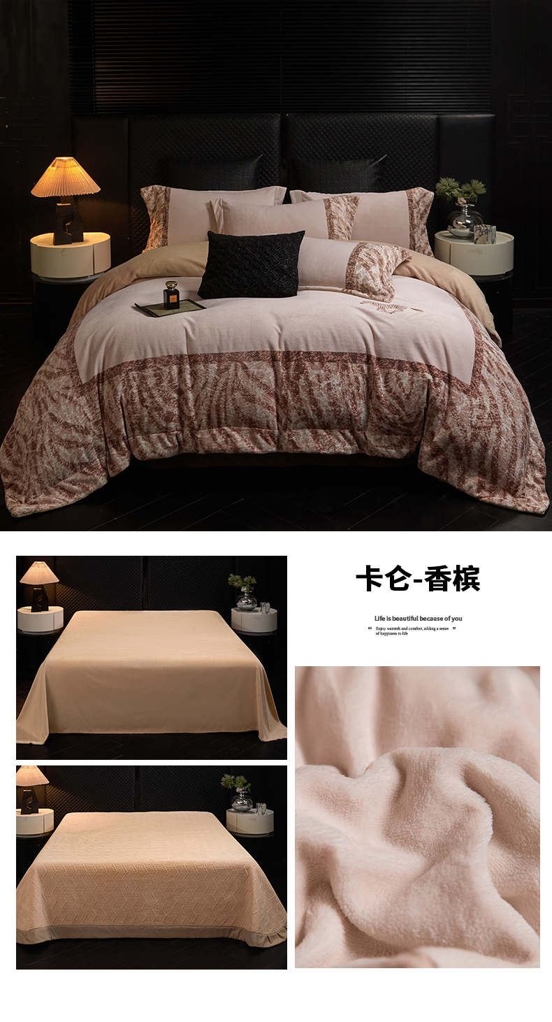 新方向 2025新款240克全消光A类数码印花牛奶绒四件套床盖款-卡仑 卡仑-香槟