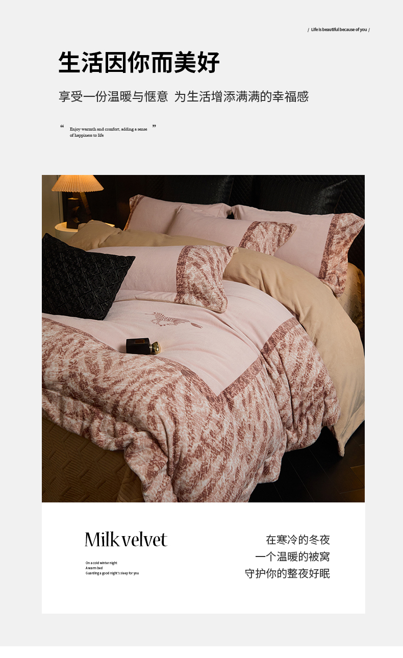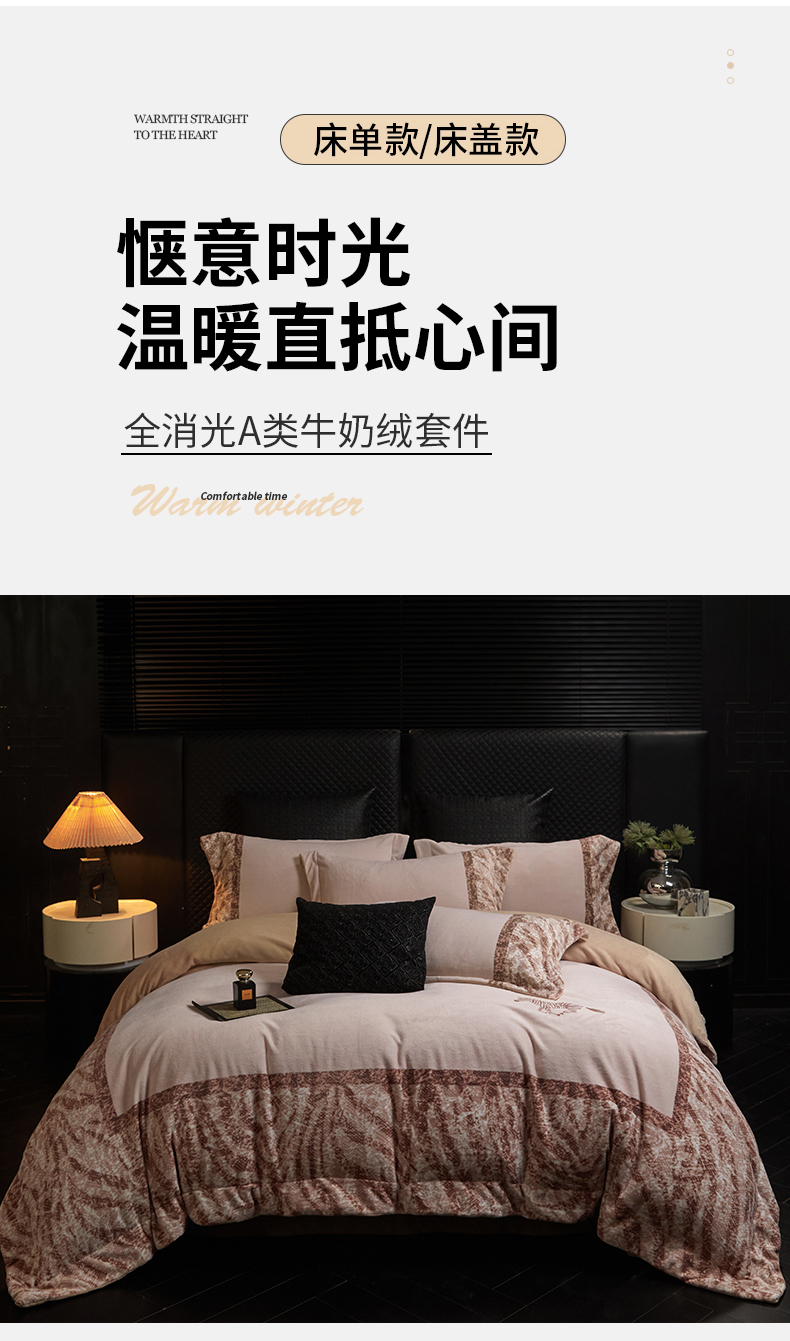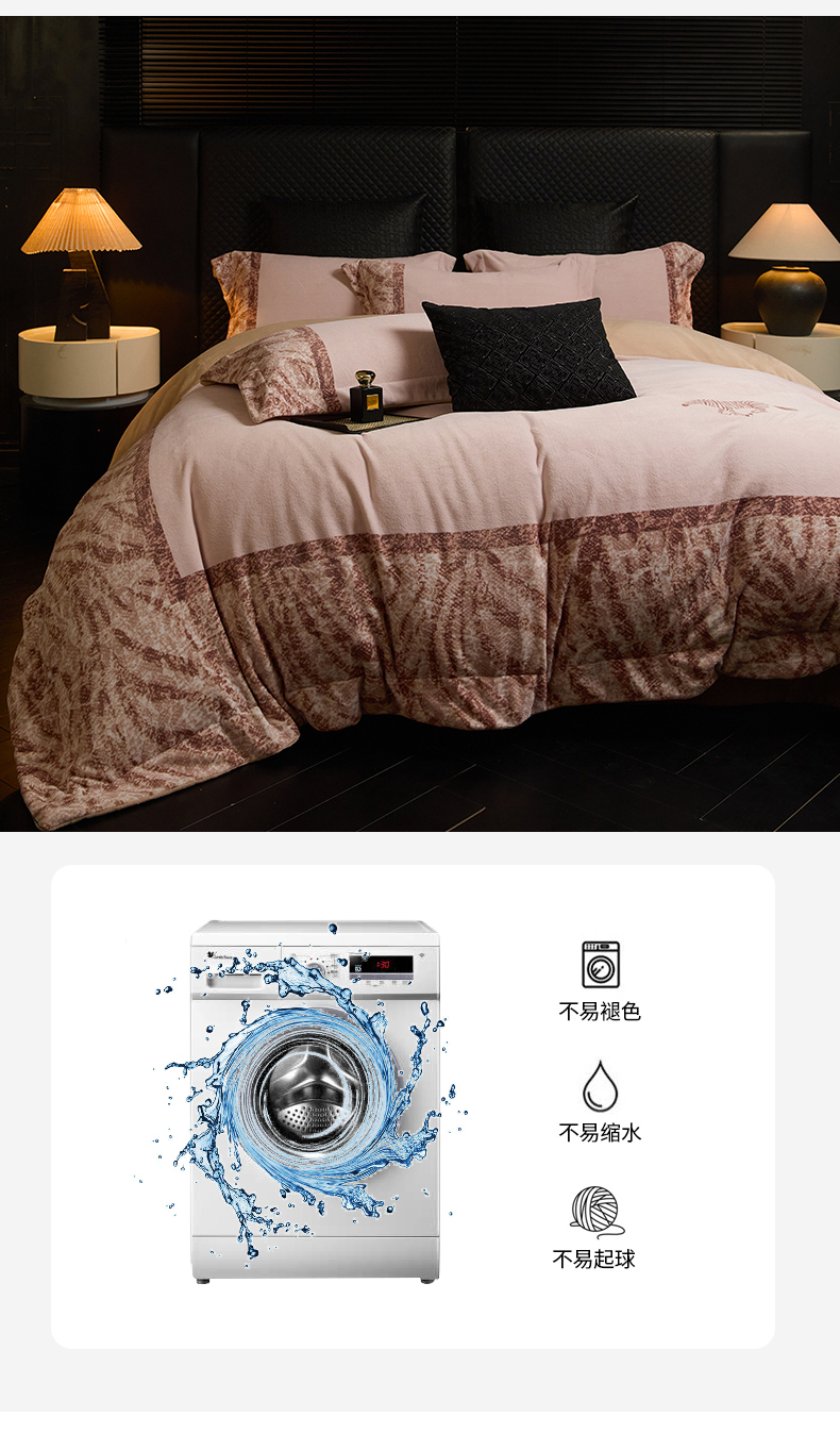 新方向 2025新款240克全消光A类数码印花牛奶绒四件套床盖款-卡仑 卡仑-香槟
