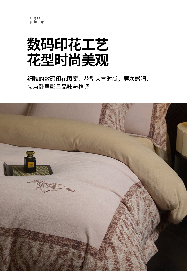 商品名称:新方向 2025新款240克全消光A类数码印花牛奶绒四件套床盖款-卡仑 卡仑-香槟