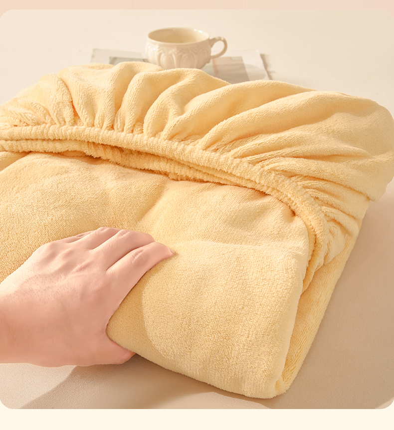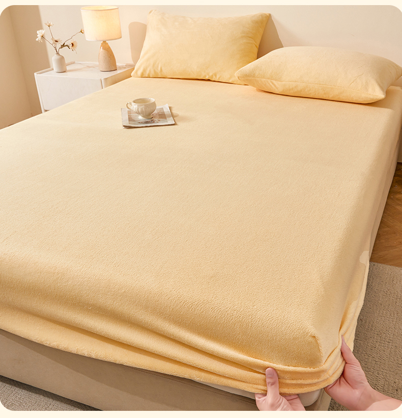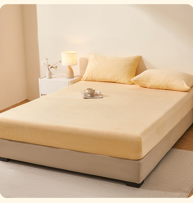 优眠坊 2025新款单层高克重牛奶绒纯色床笠 虎皮黄