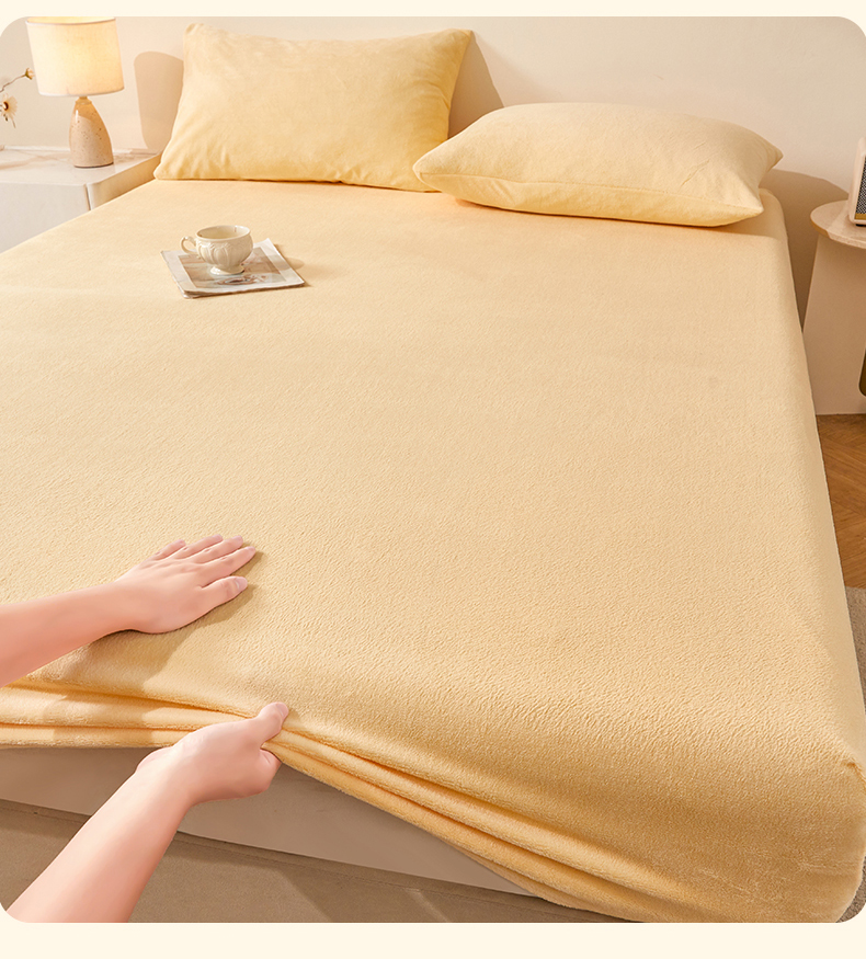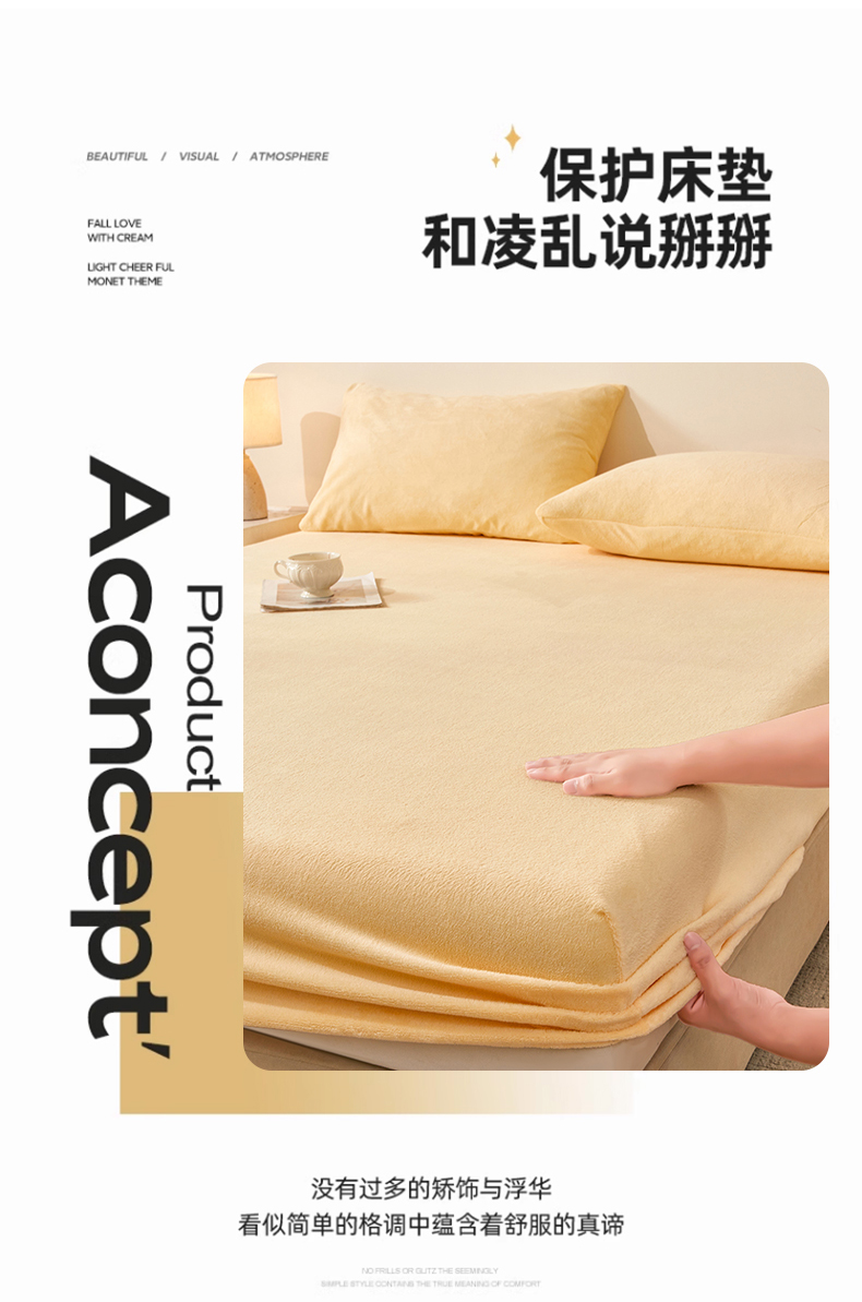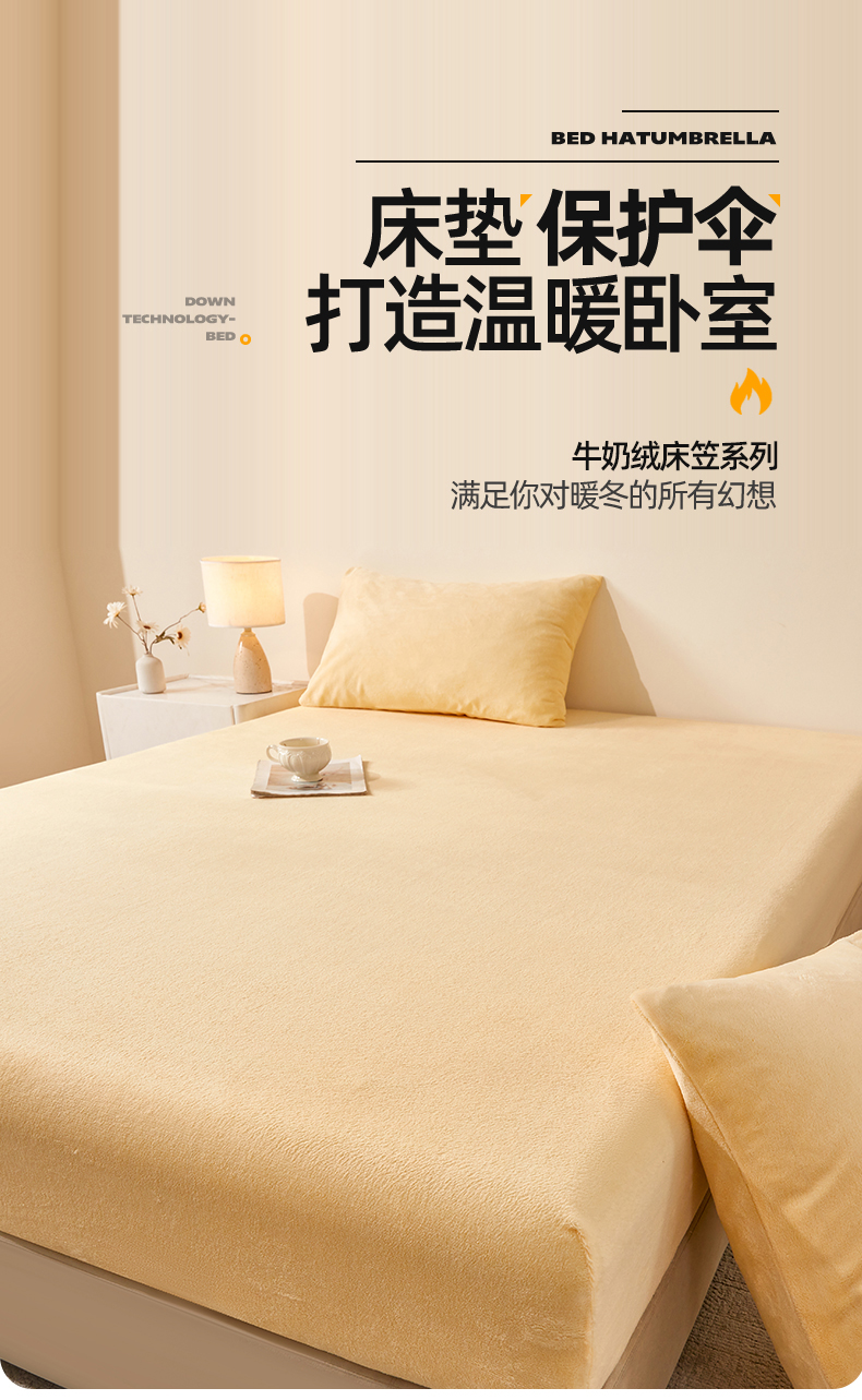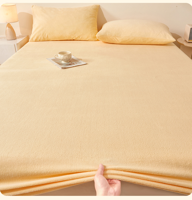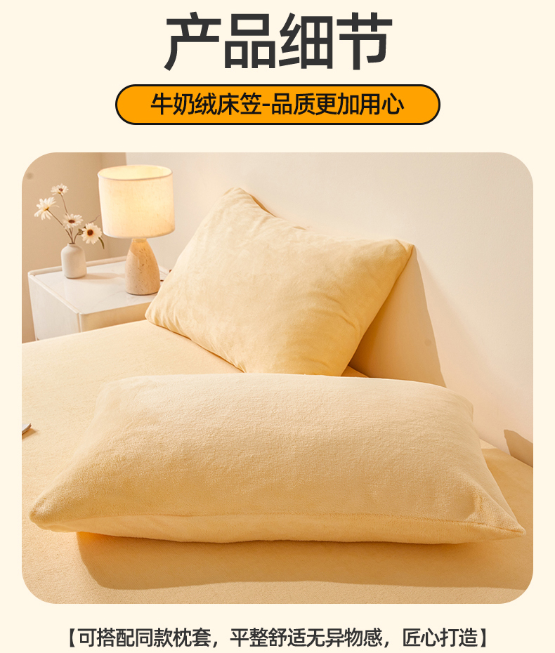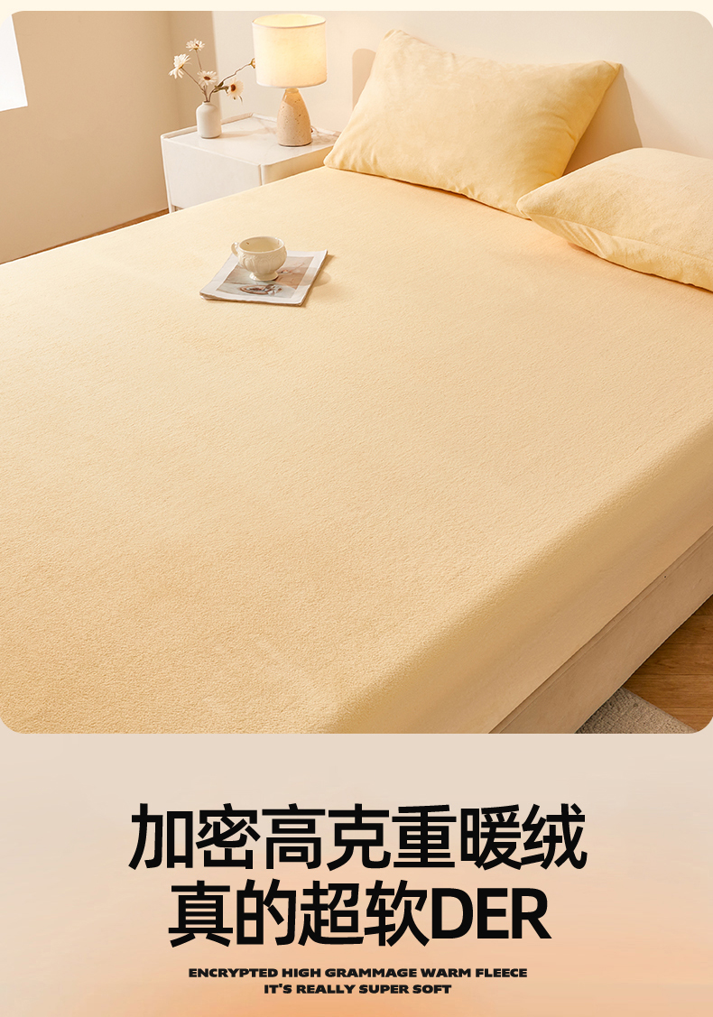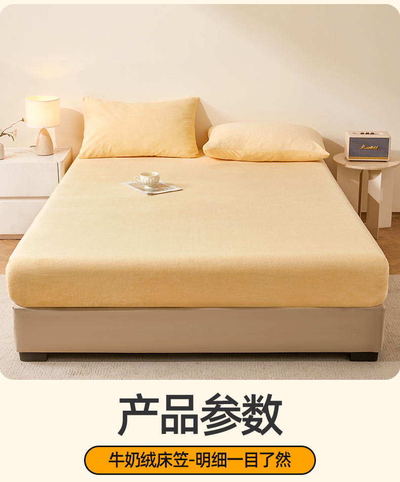 商品名称:优眠坊 2025新款单层高克重牛奶绒纯色床笠 虎皮黄